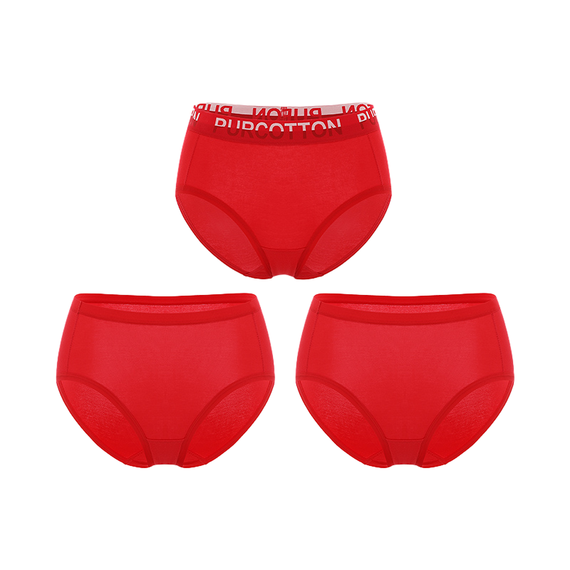 全棉时代女士中腰三角内裤3条装-幸福红系列 165/95 万事胜意+好运连连+幸福红 红色