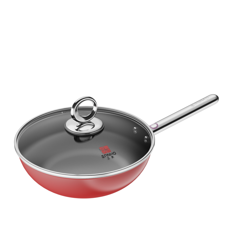 三禾锅具(SANHO)0涂层微纳不粘炒锅 LC32S4(红) 32cm(单位:个)