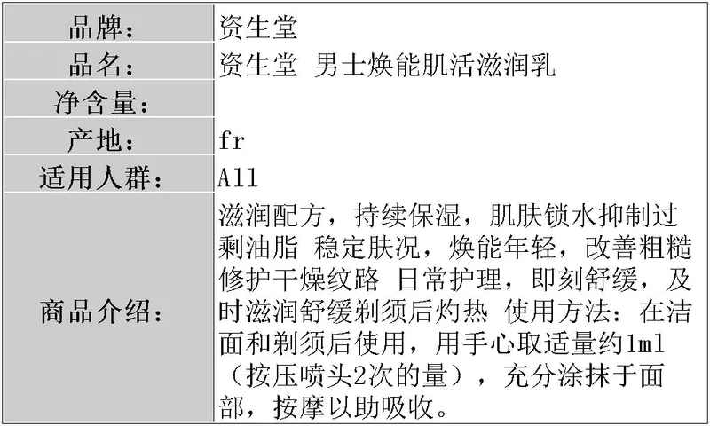 Shiseido/资生堂男士焕能肌活滋润乳100ml国内专柜版100ml/1件装