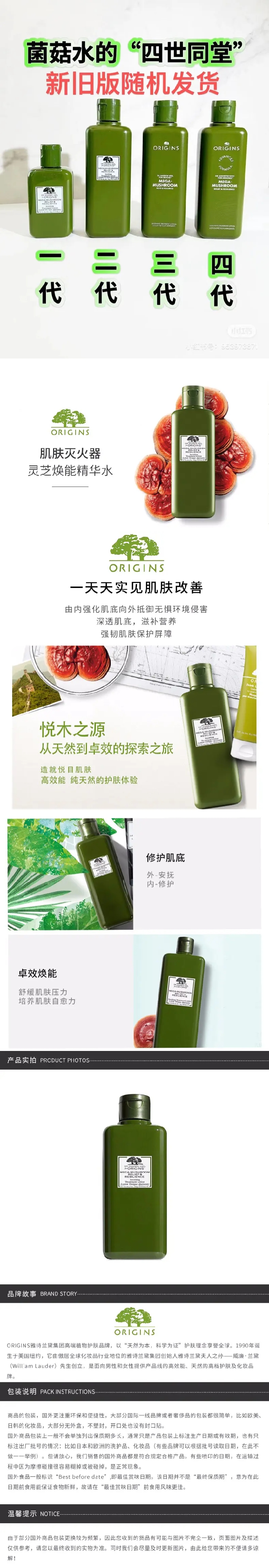 Origins/悦木之源灵芝焕能精华水菌菇水200ml(新旧版随机发)国内专柜版200ml/1件装