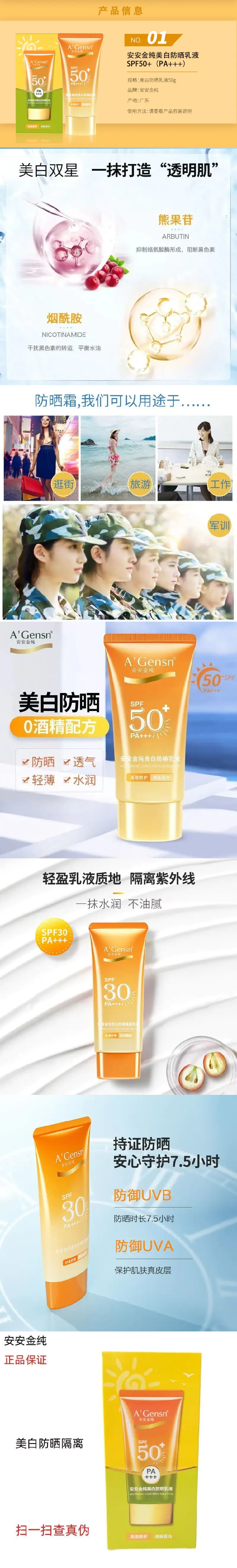 A'Gensn/安安金纯美白防晒乳液50g默认/1件装
