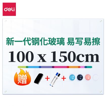 得力50046超白磁性玻璃白板1000*1500mm(白色)(块)一块每箱