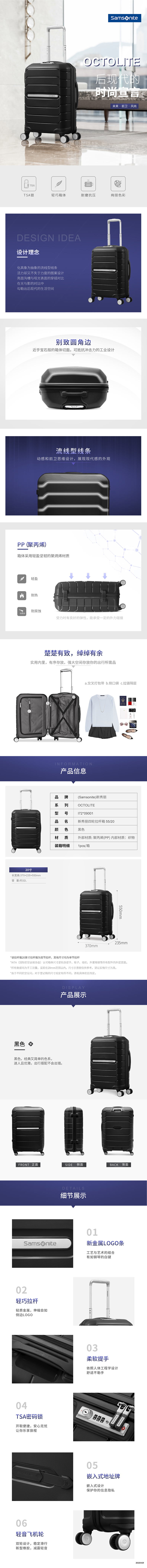 新秀丽四轮拉杆箱黑色55/20