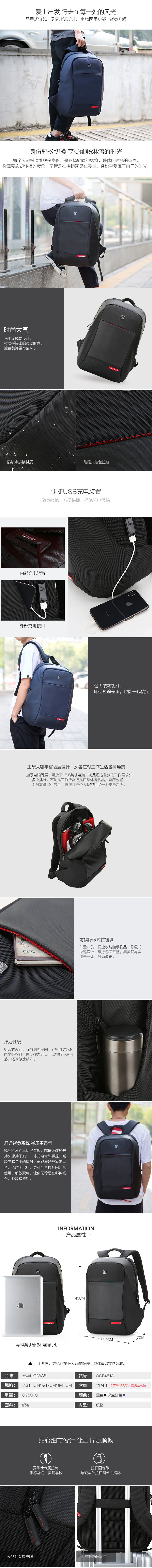 爱华仕双肩包OCB4618