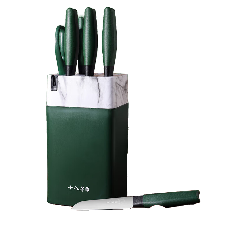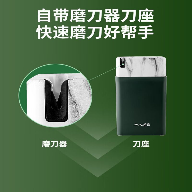 刀座融入岩板风格,简约大方,刀具锋利度好,刀座磨刀一体,精选钨钢磨刀,随时磨刀,厨房生活更惬意