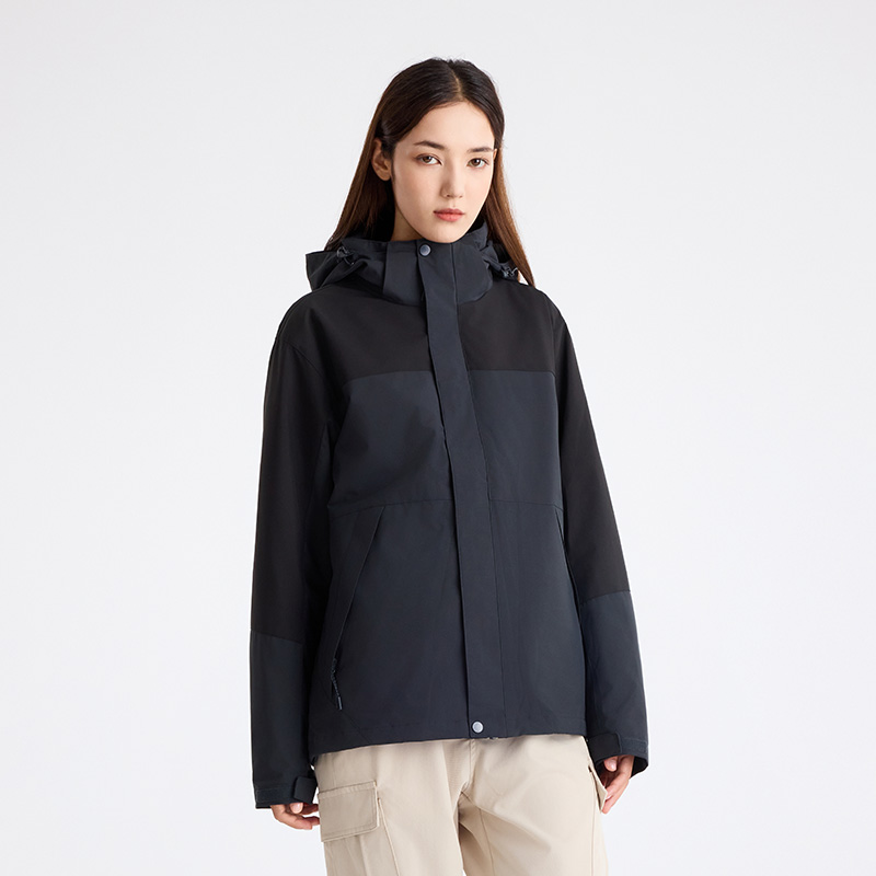 丰讯秋冬情侣款三合一两件套摇粒绒内胆可脱卸外套 FXTF220805(单位:件) 男女同款黑灰 XL