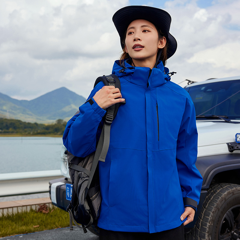 丰讯三合一冲锋衣男女同款户外防风防水保暖连帽外套登山服FXXY1101(单位:件) 宝蓝男女同款 S