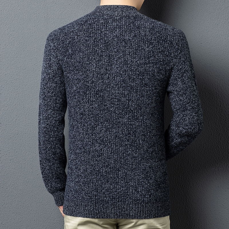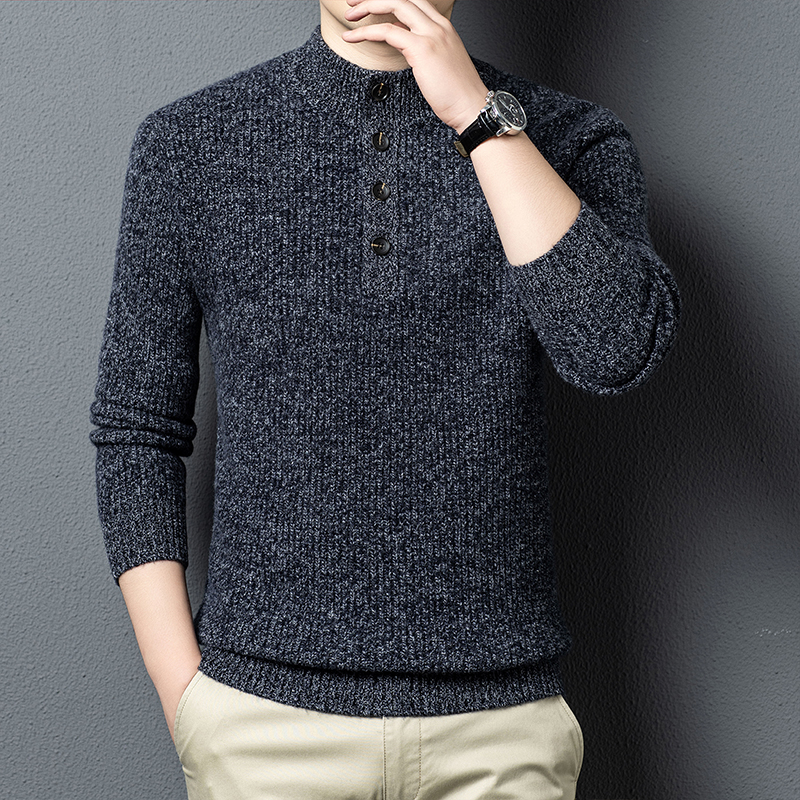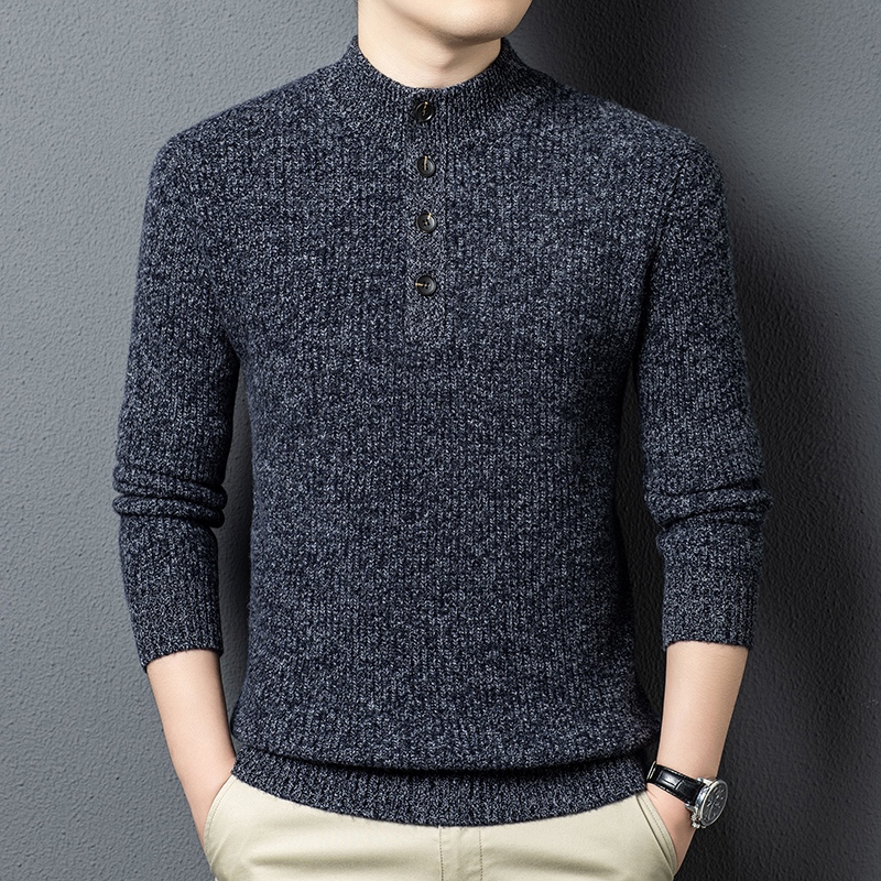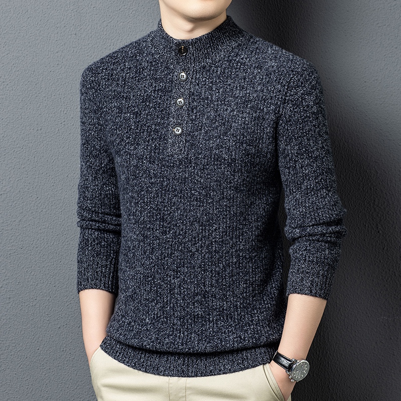 秋冬100%纯羊毛加厚保暖毛衣男士半高领纽扣针织衫衫