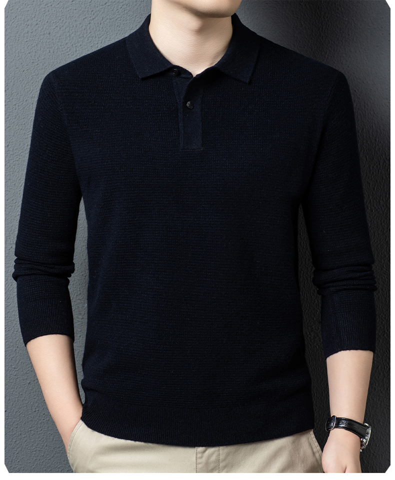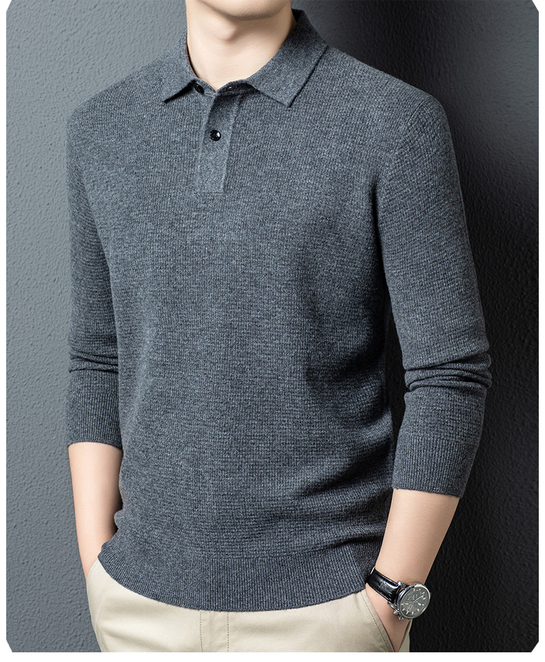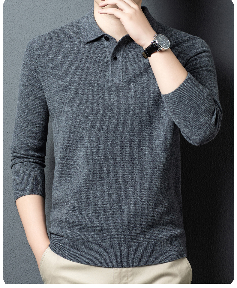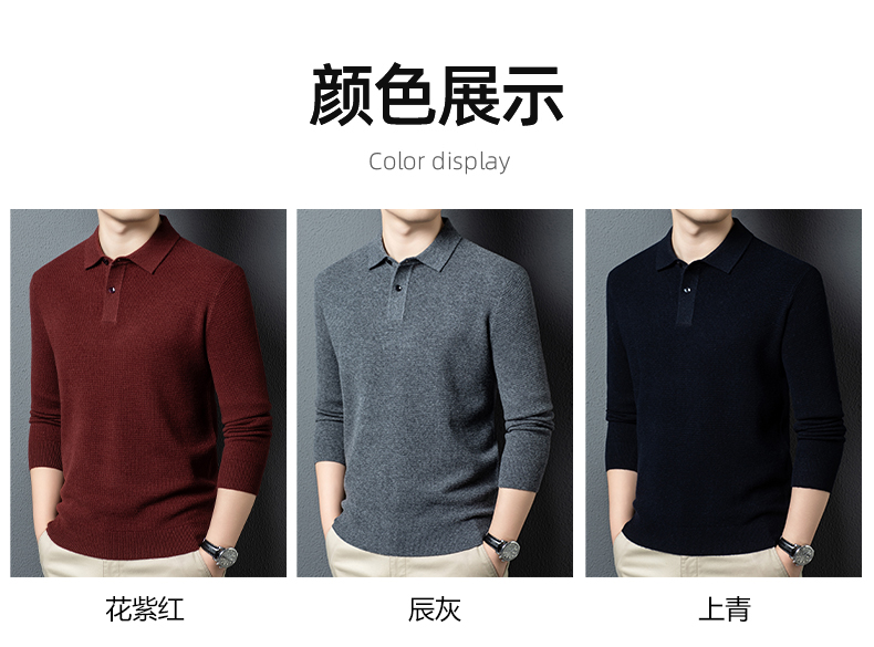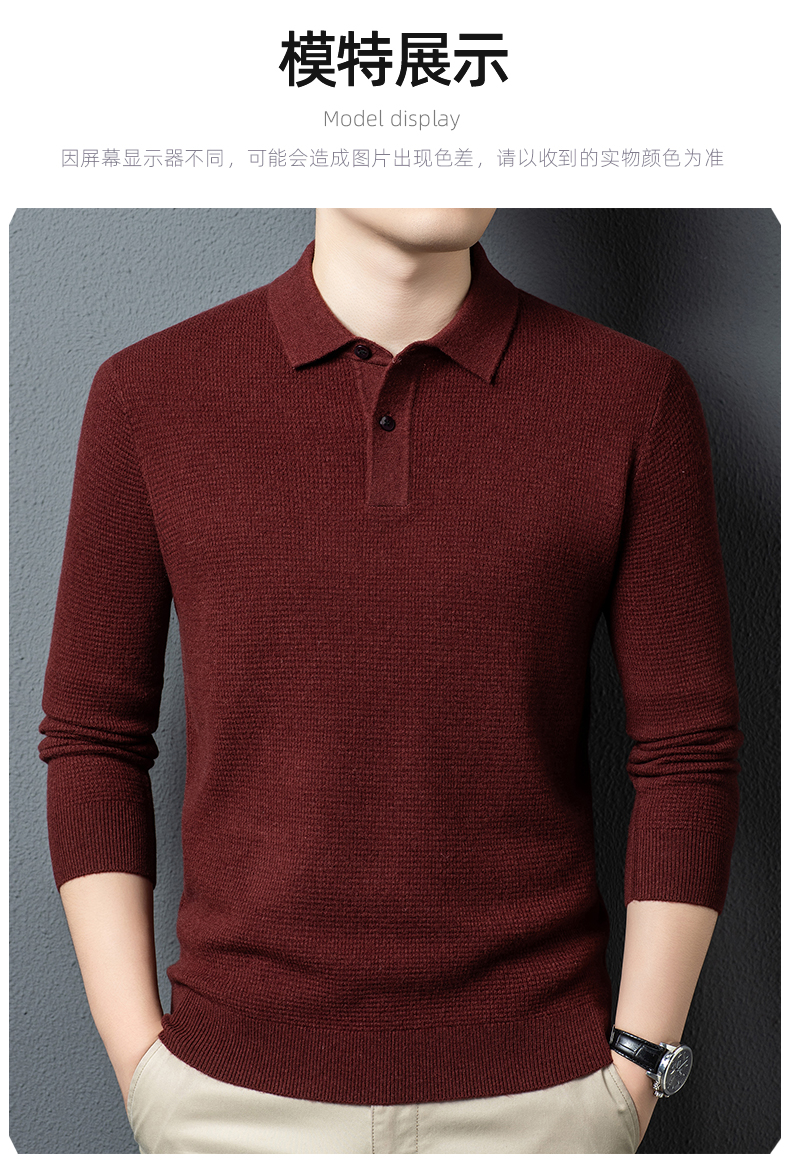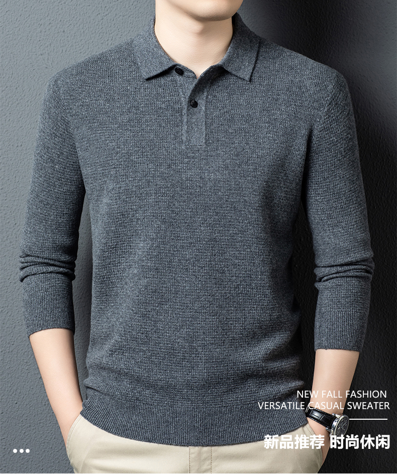 男士秋冬季翻领长袖毛衣商务休闲百搭纯色针织衫