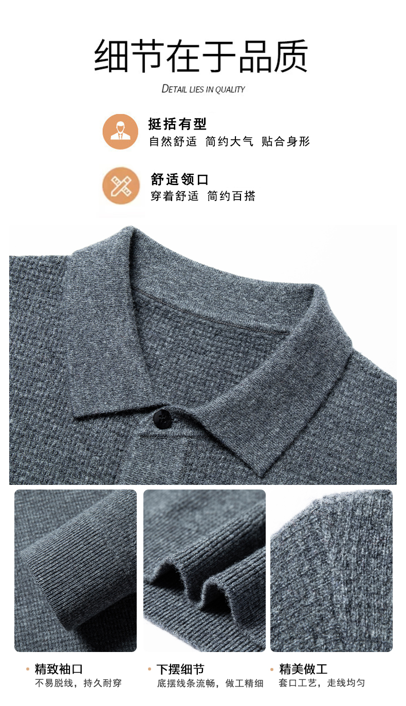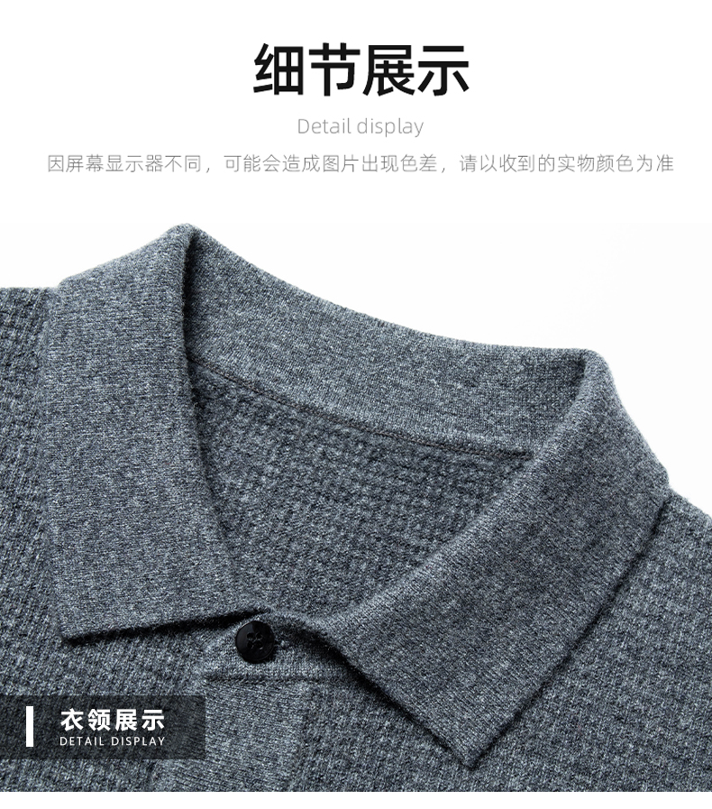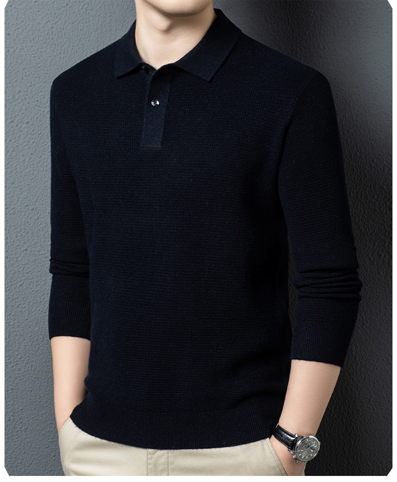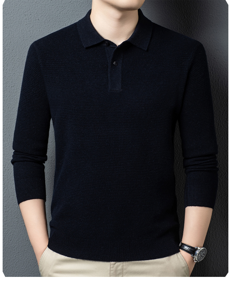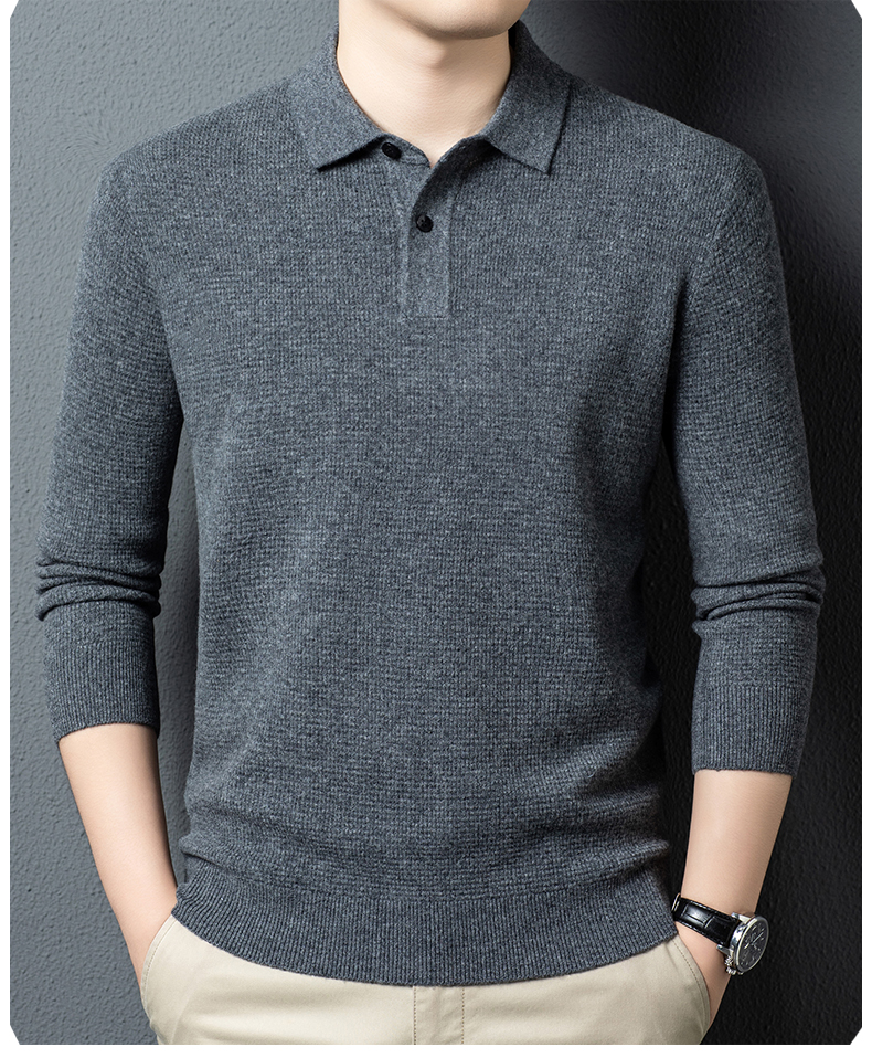 男士秋冬季翻领长袖毛衣商务休闲百搭纯色针织衫