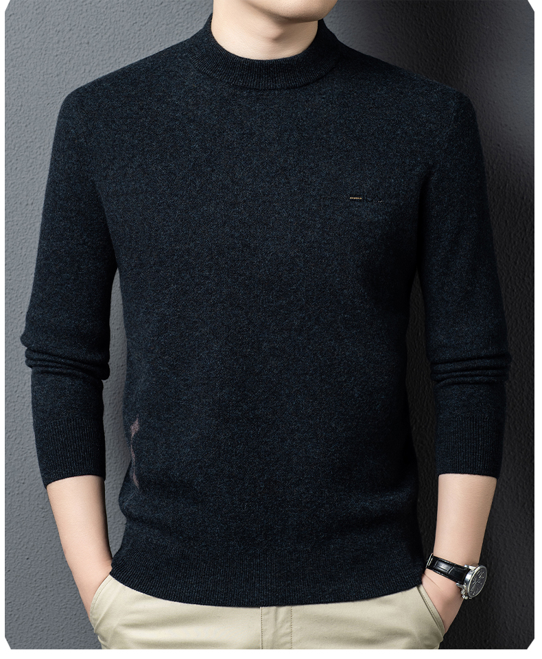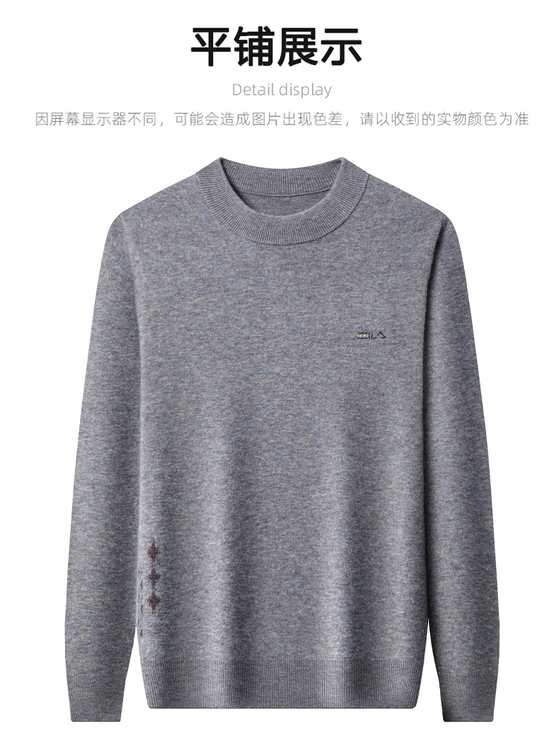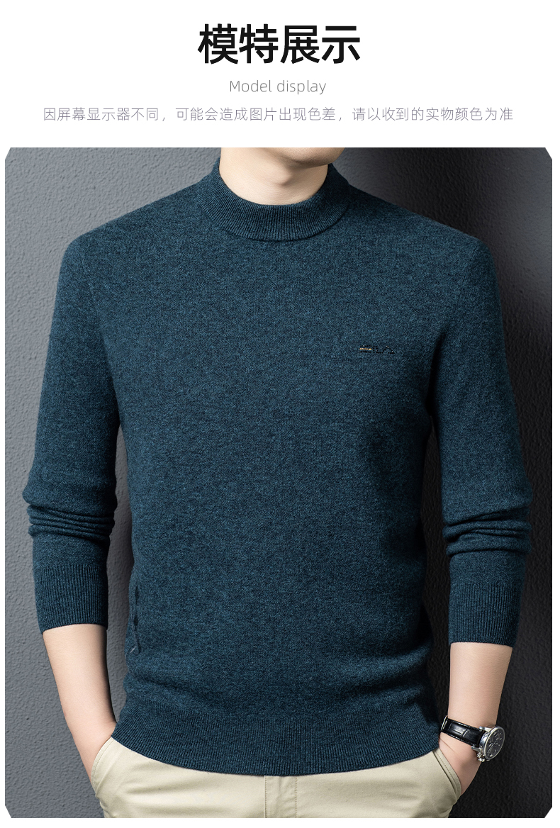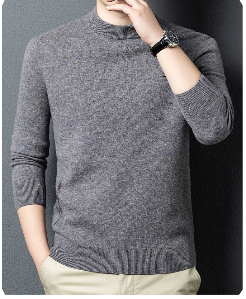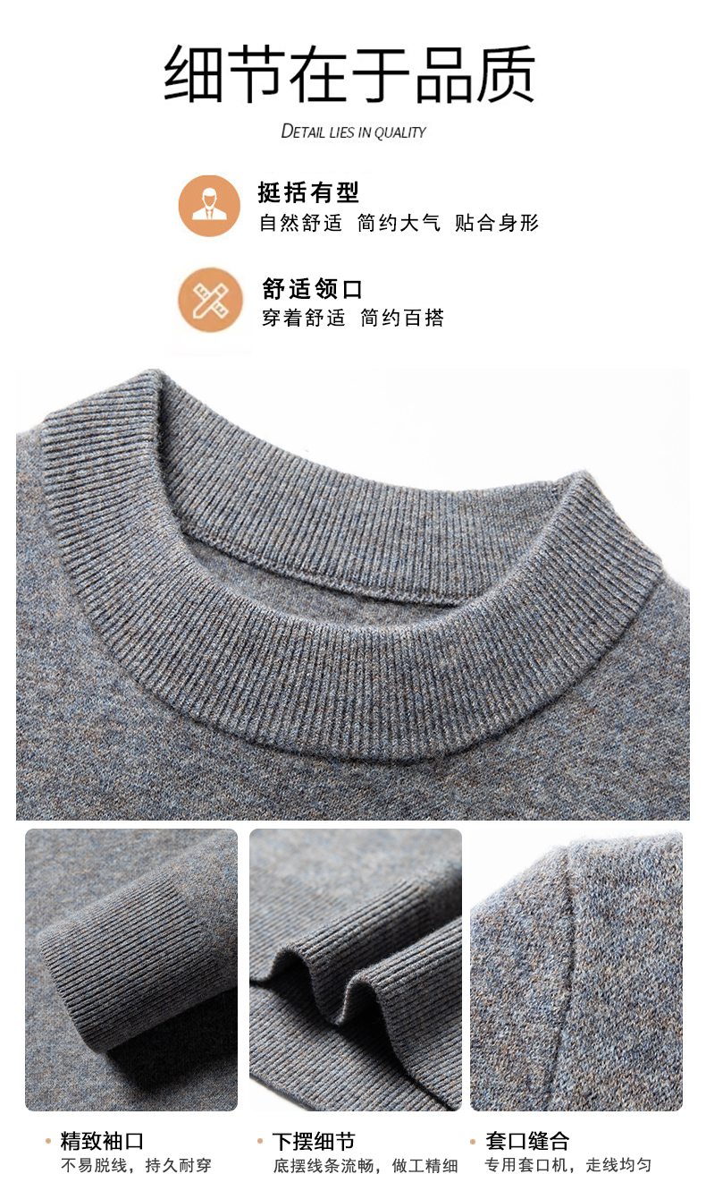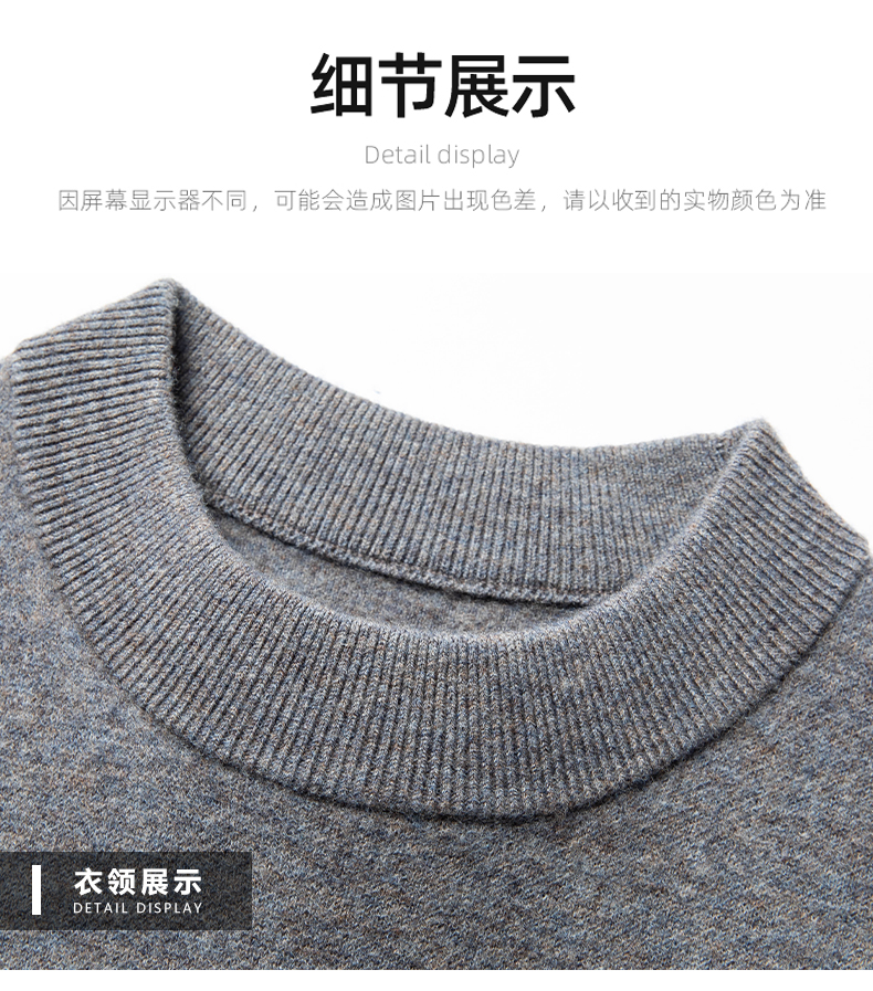 高端100%纯羊毛男士秋冬季加厚圆领简约休闲针织