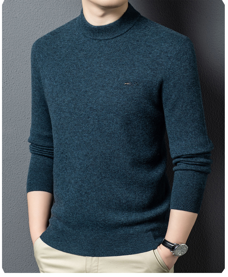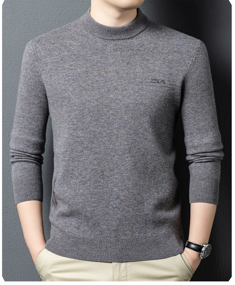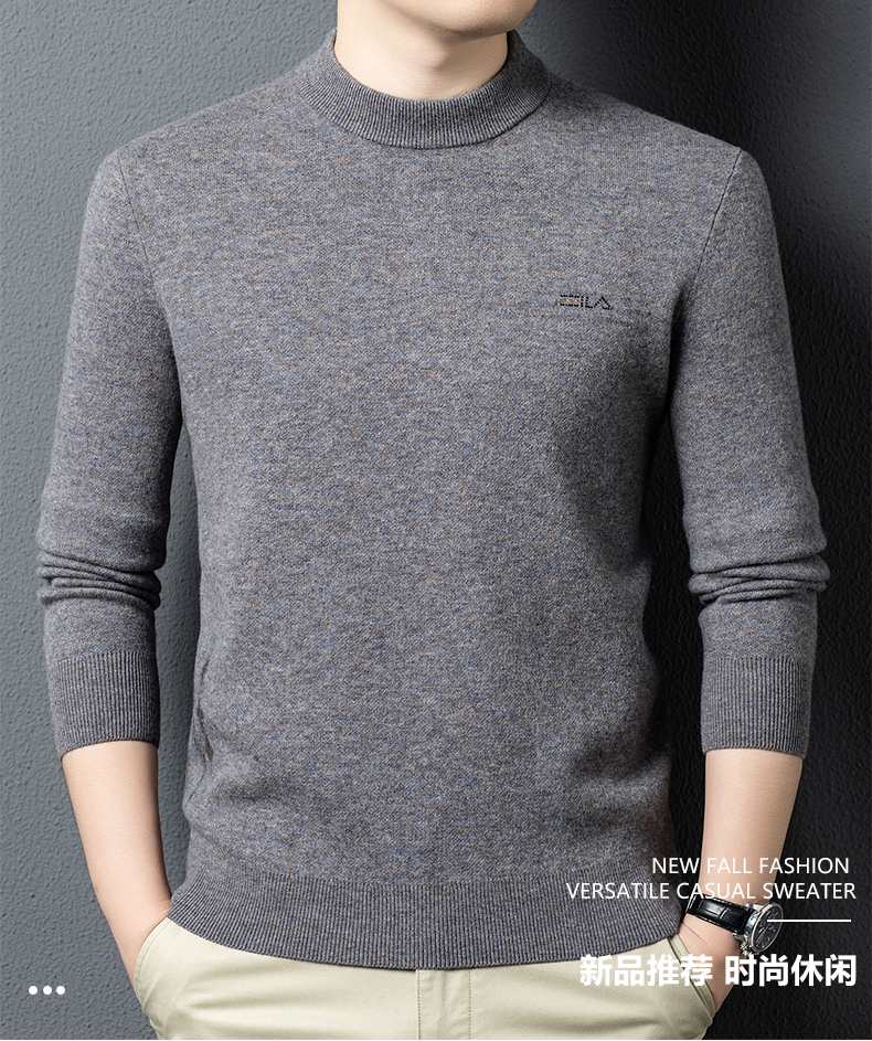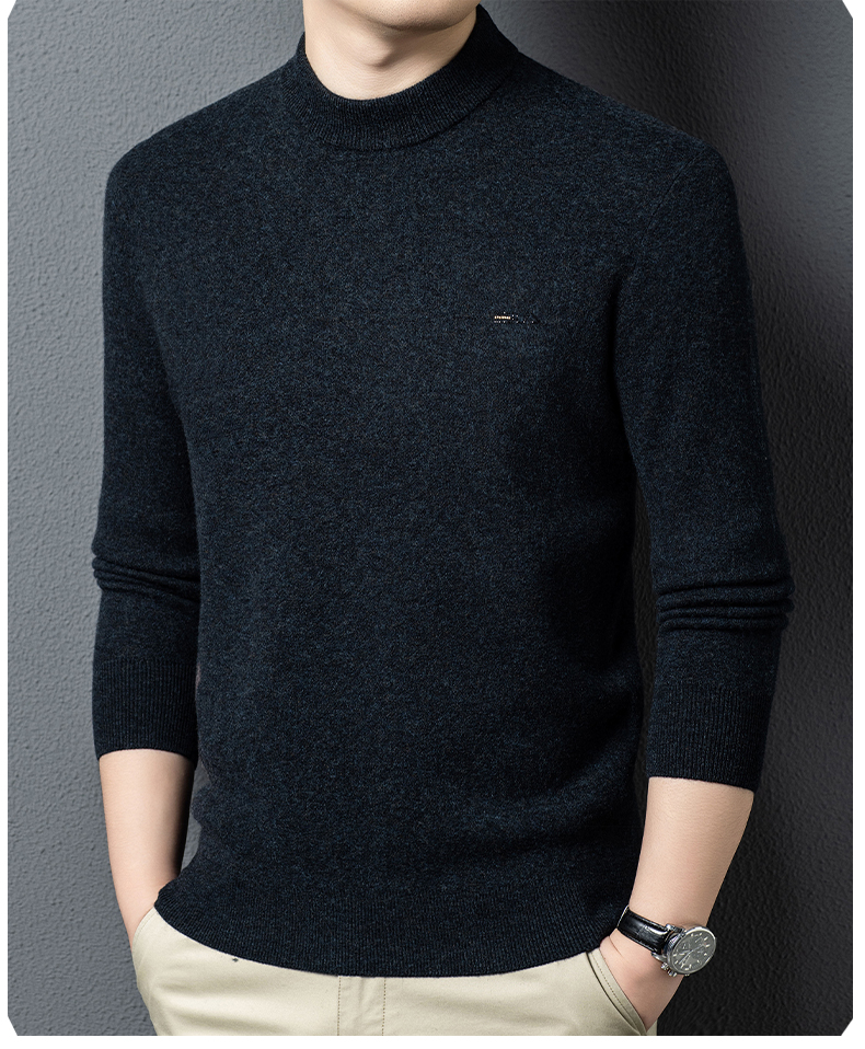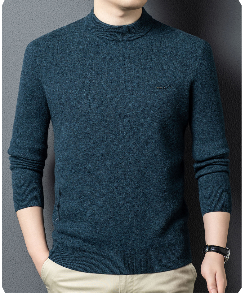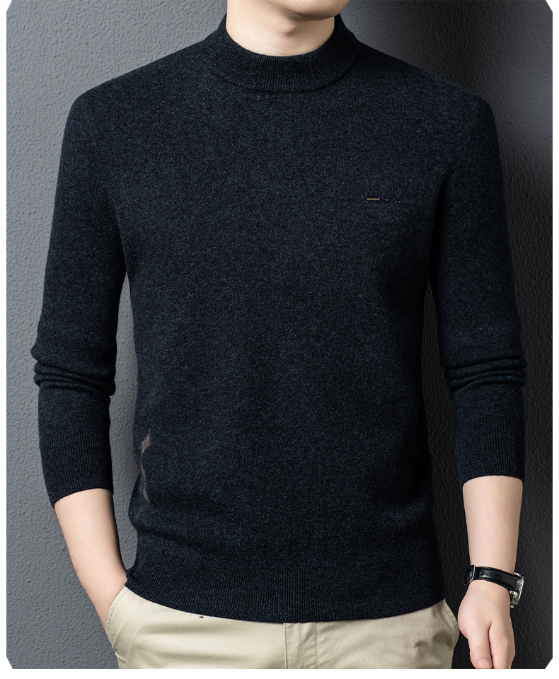 高端100%纯羊毛男士秋冬季加厚圆领简约休闲针织
