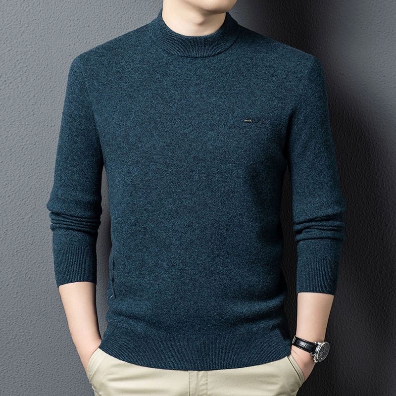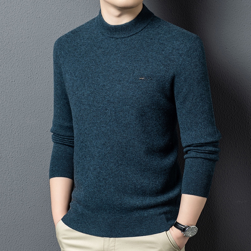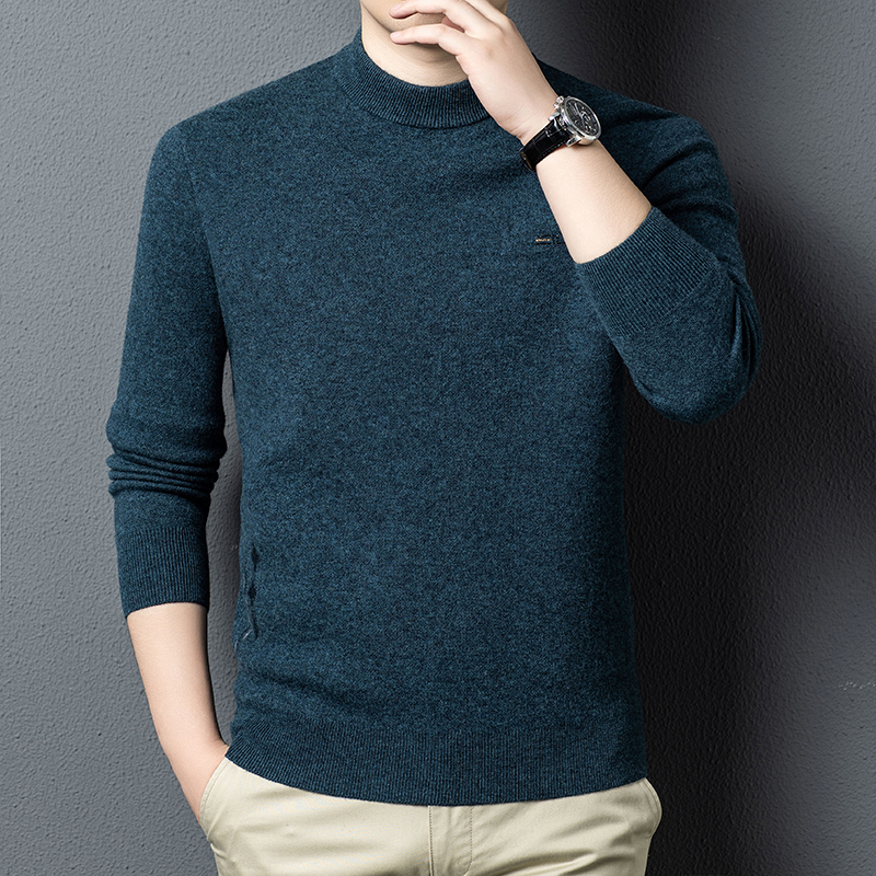 丰讯 高端100%纯羊毛男士秋冬季加厚圆领简约休闲针织(单位:件 ) 黛蓝 M