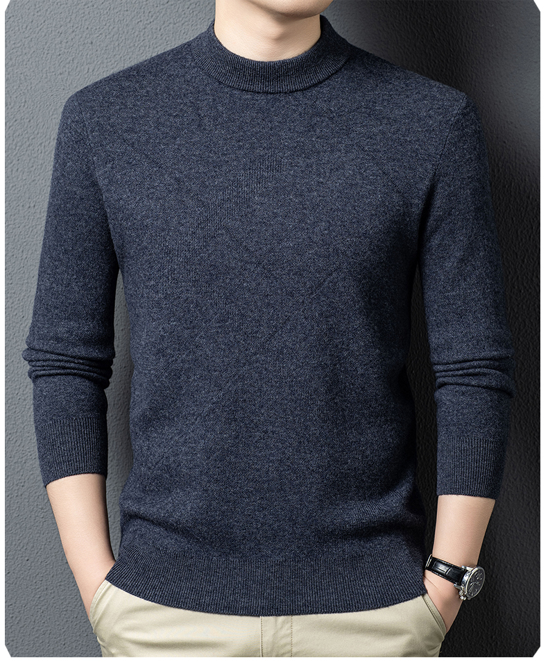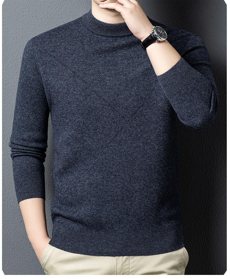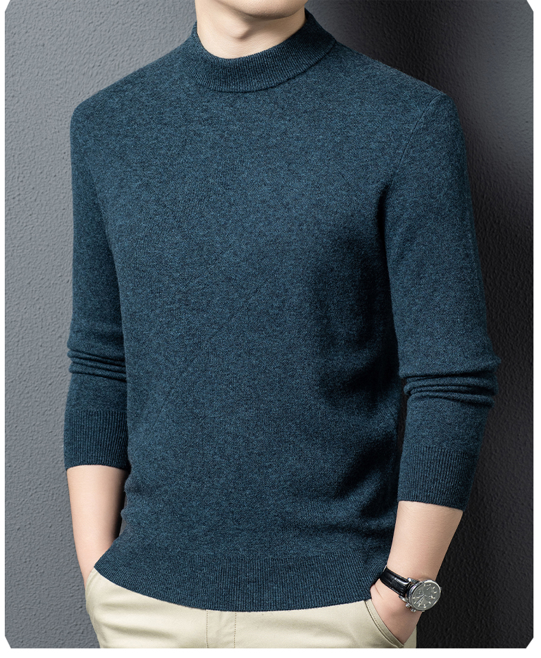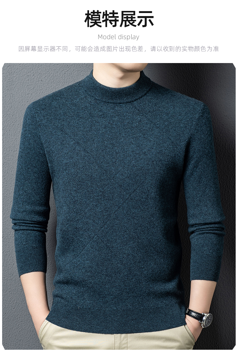 半高领秋冬100%纯羊毛男士中年加厚保暖套头针织衫
