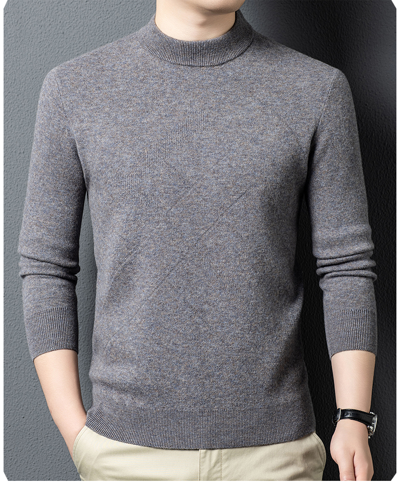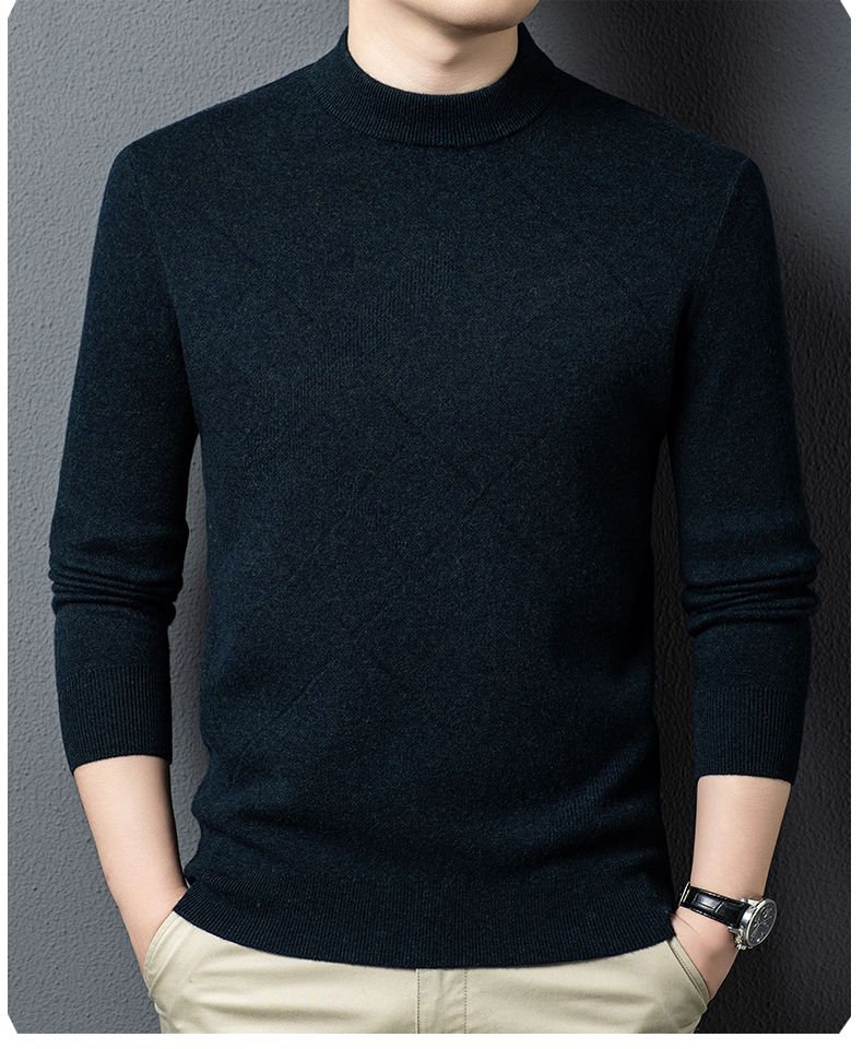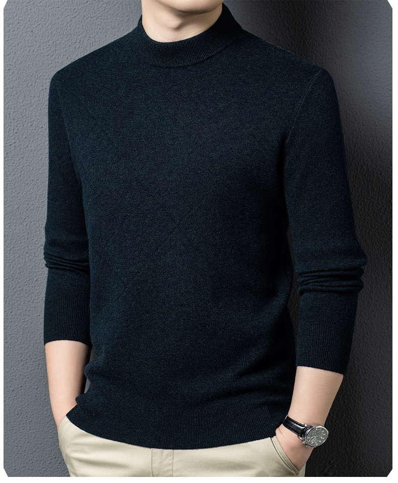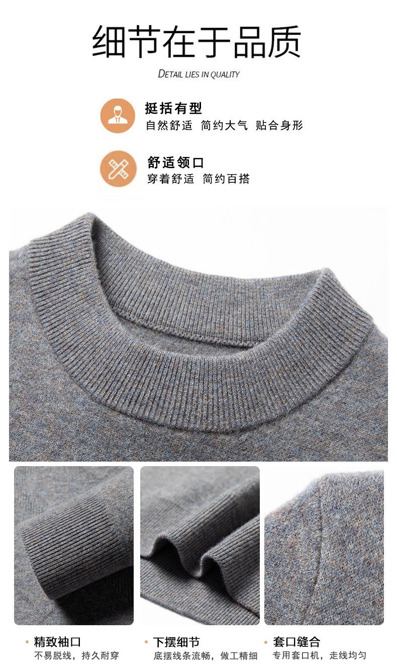 半高领秋冬100%纯羊毛男士中年加厚保暖套头针织衫