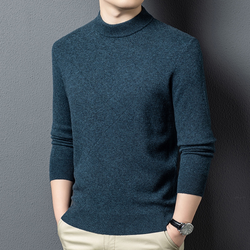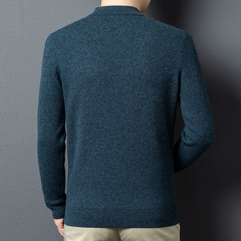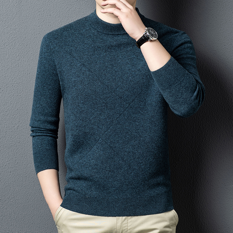 半高领秋冬100%纯羊毛男士中年加厚保暖套头针织衫