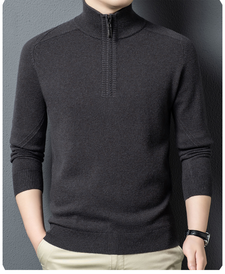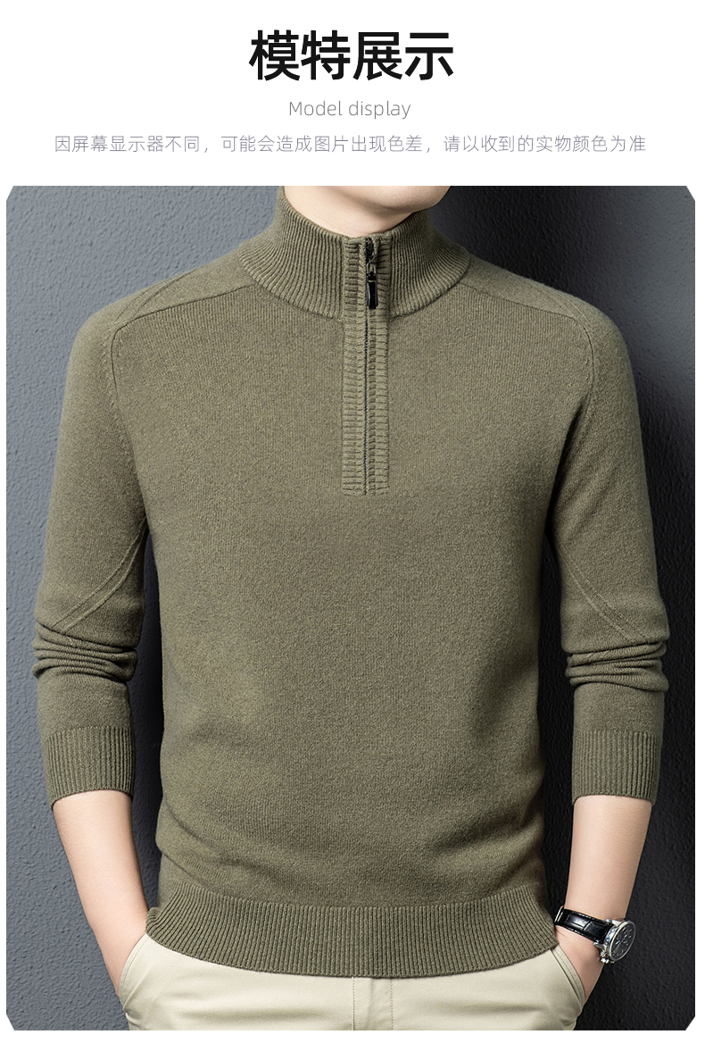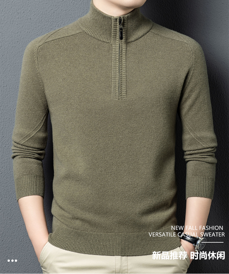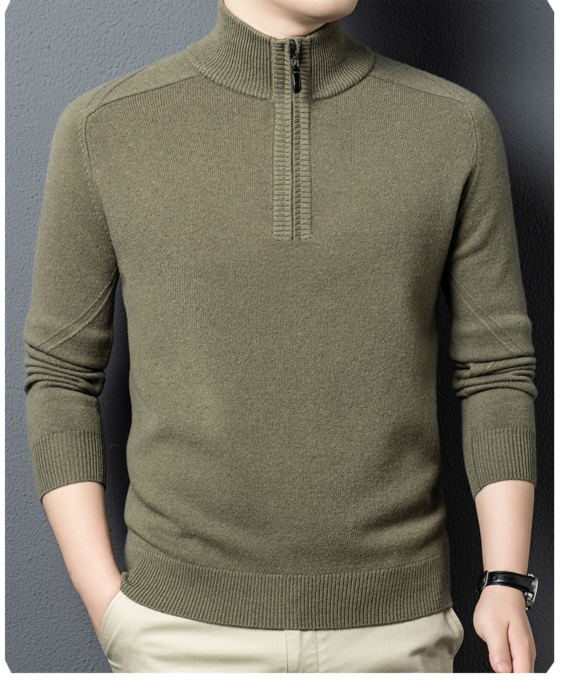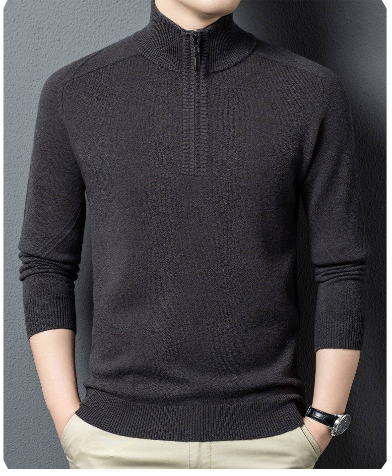 100%纯羊毛男士半高拉链领秋冬季新款纯色商务休闲套头针织衫