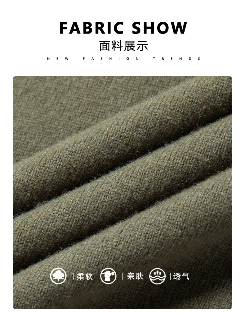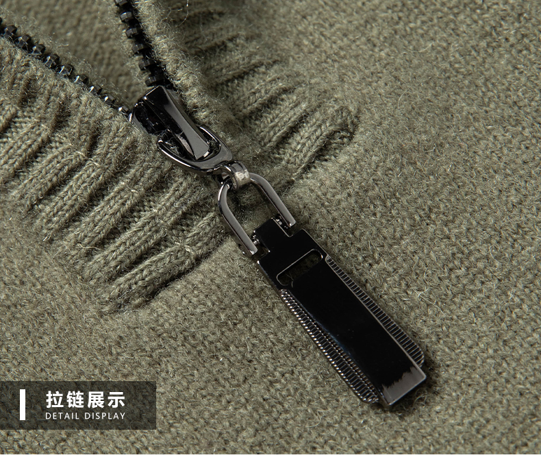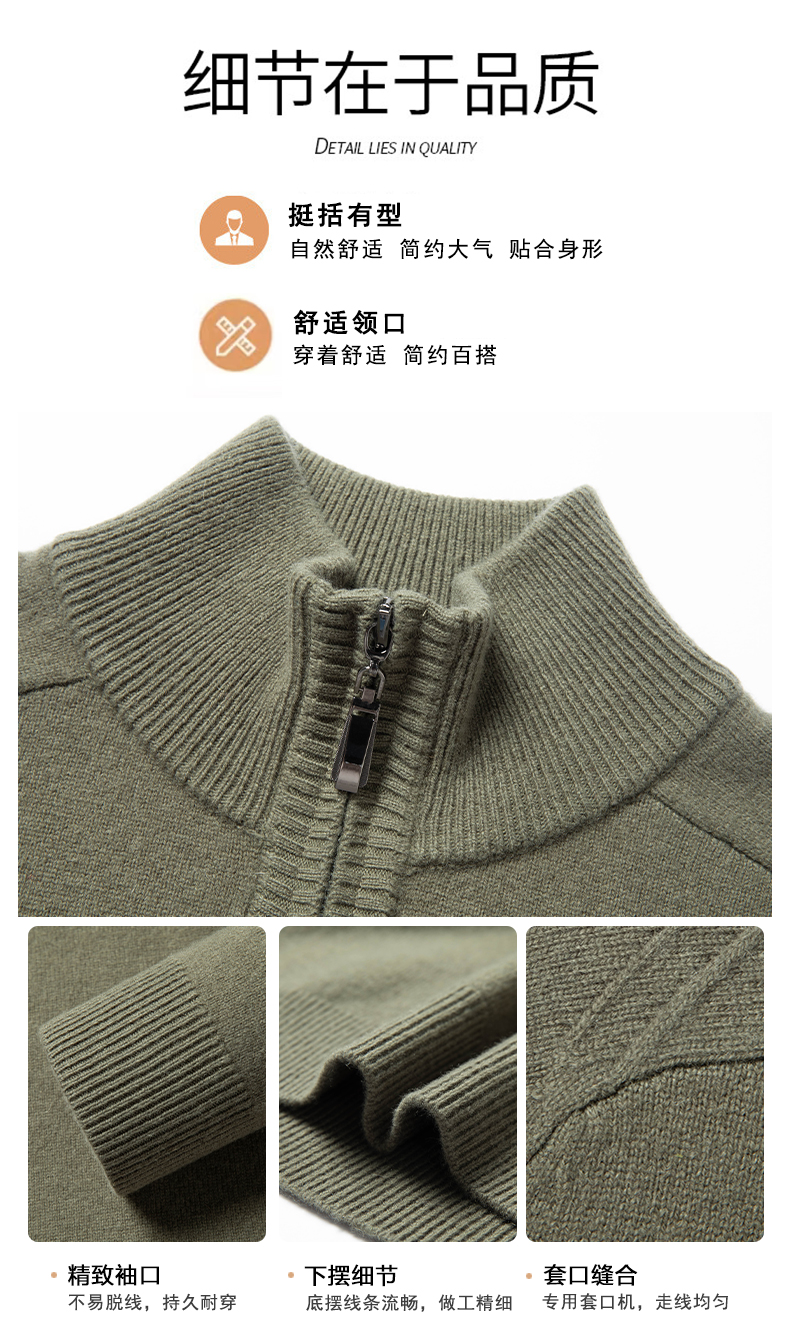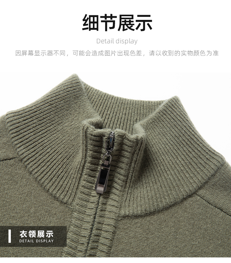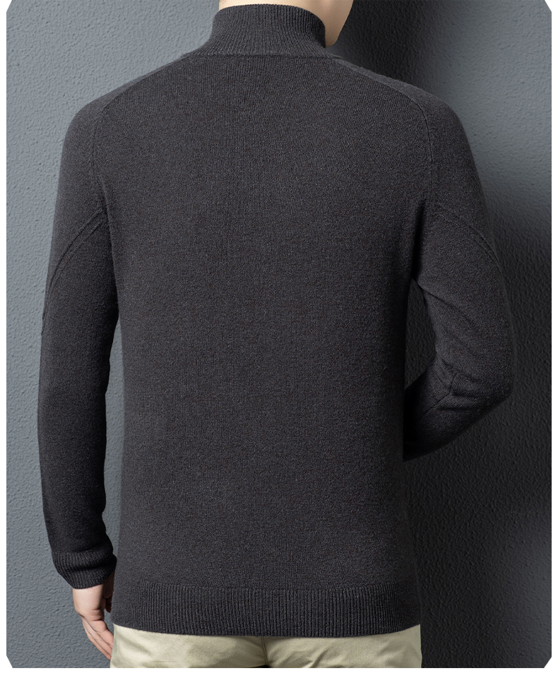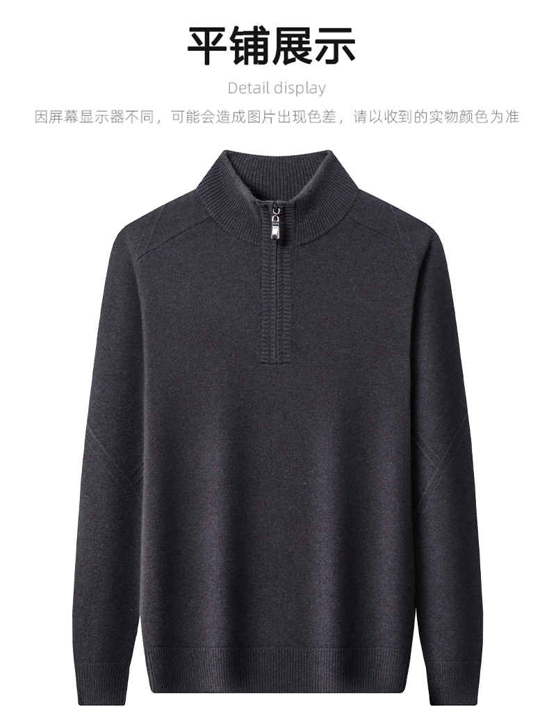 100%纯羊毛男士半高拉链领秋冬季新款纯色商务休闲套头针织衫