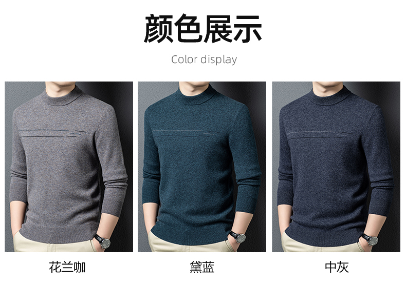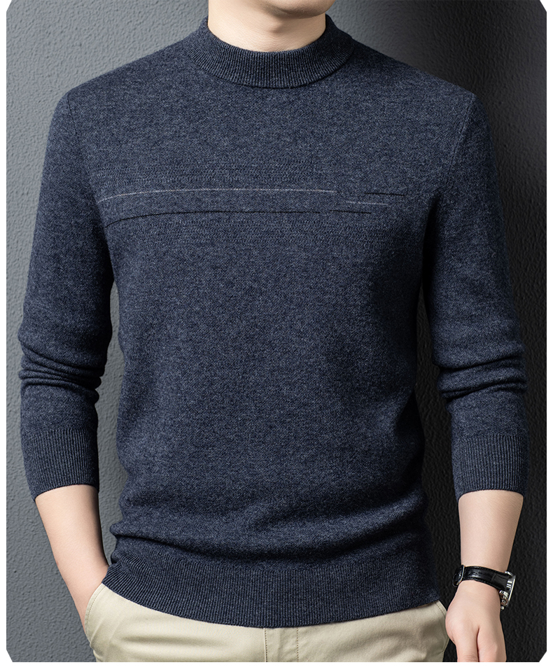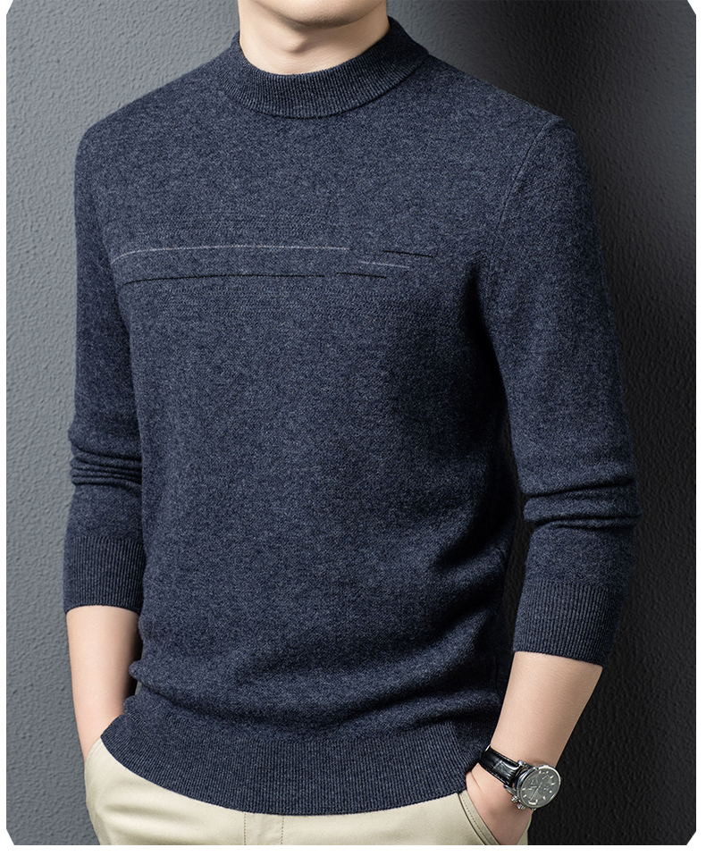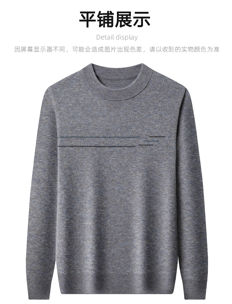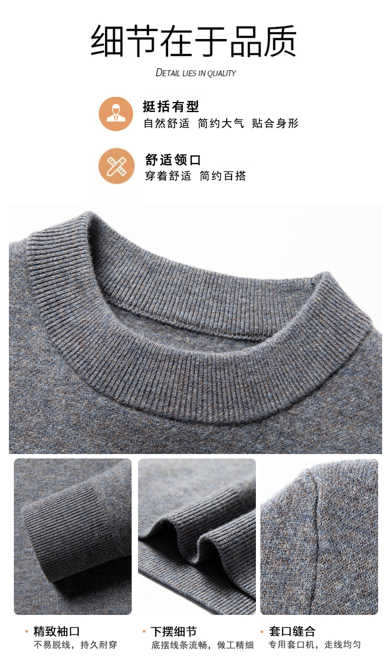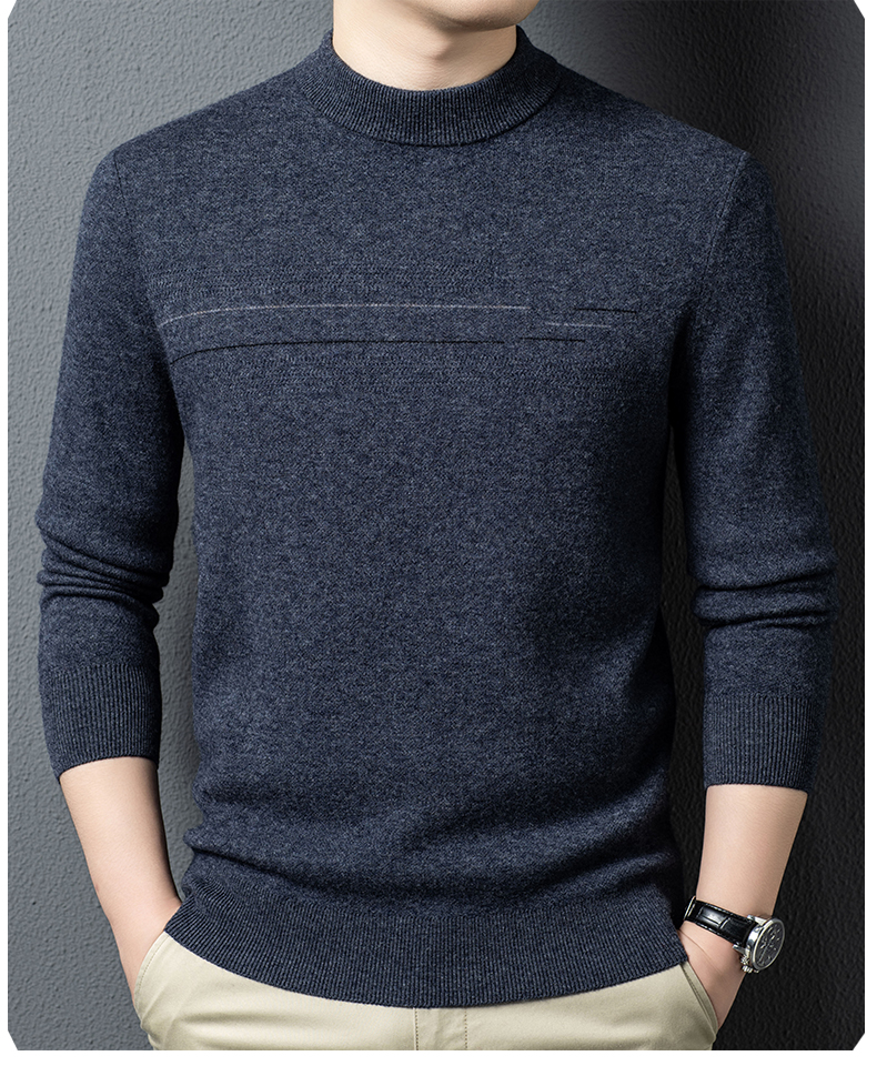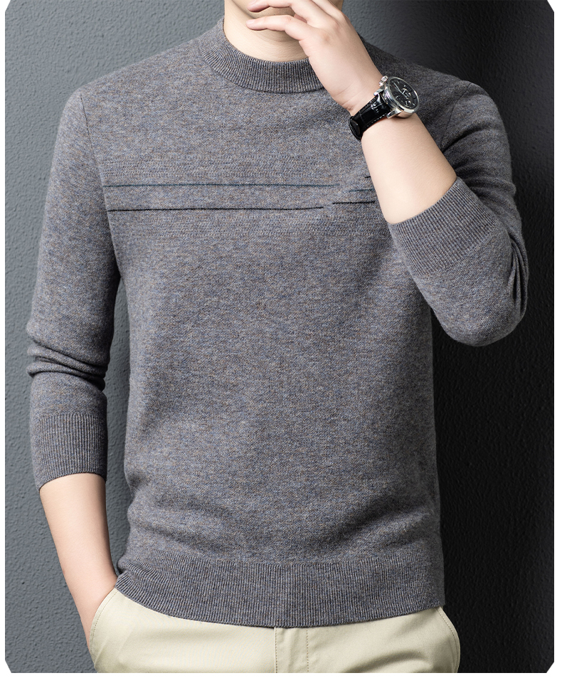 100%纯羊毛男士圆领毛衣秋冬纯色商务休闲套头针织