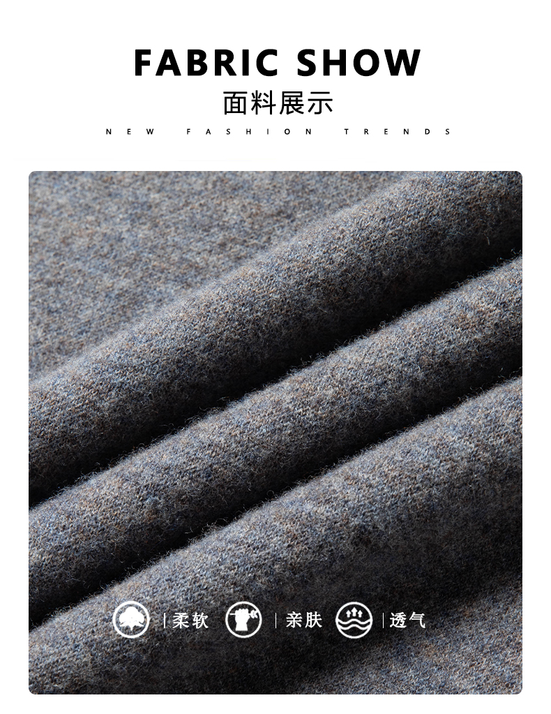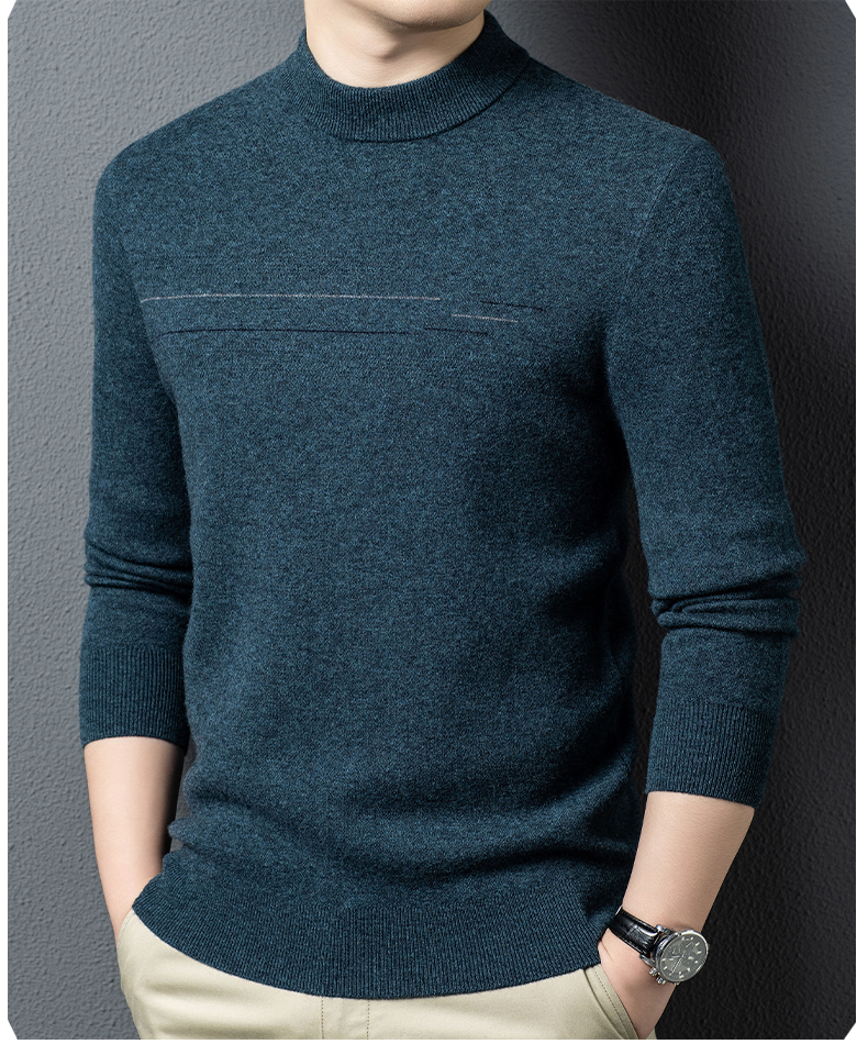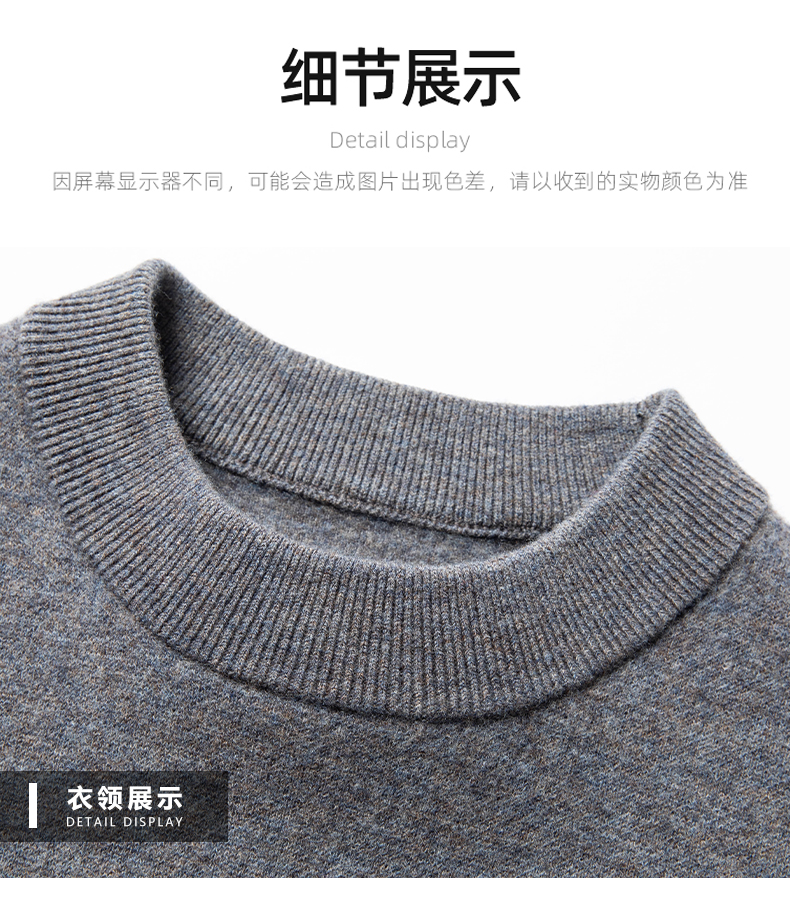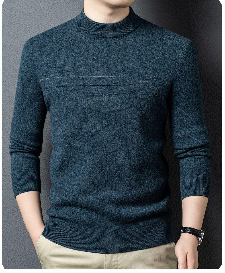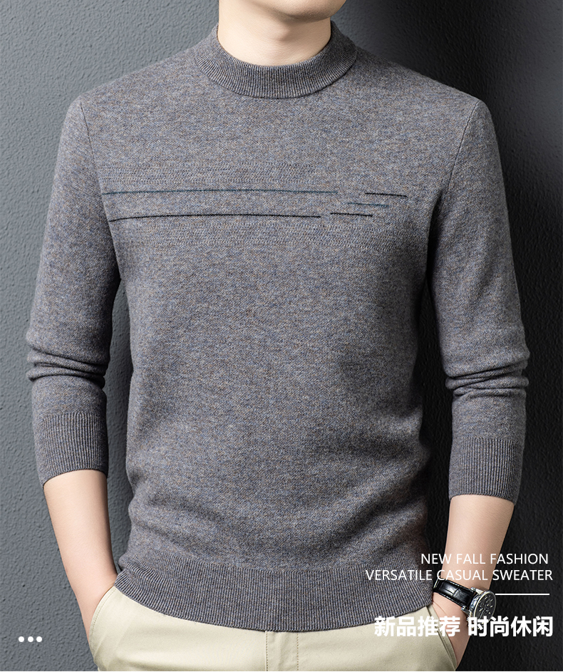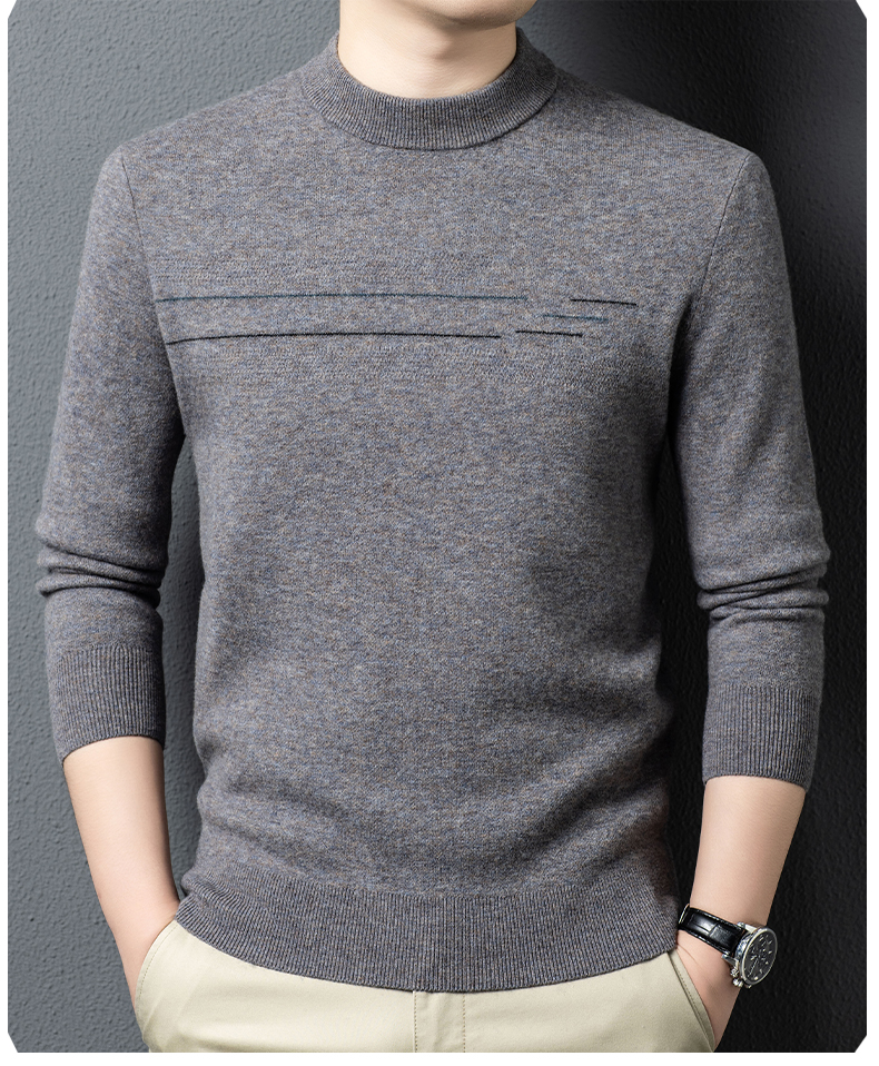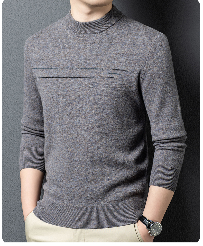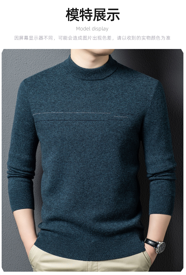 100%纯羊毛男士圆领毛衣秋冬纯色商务休闲套头针织
