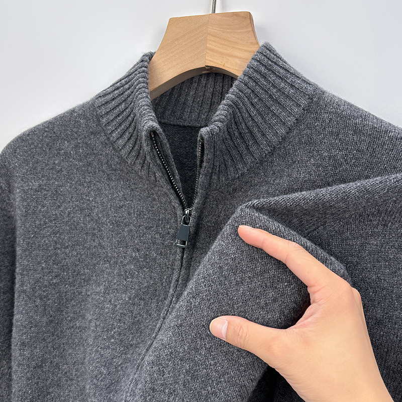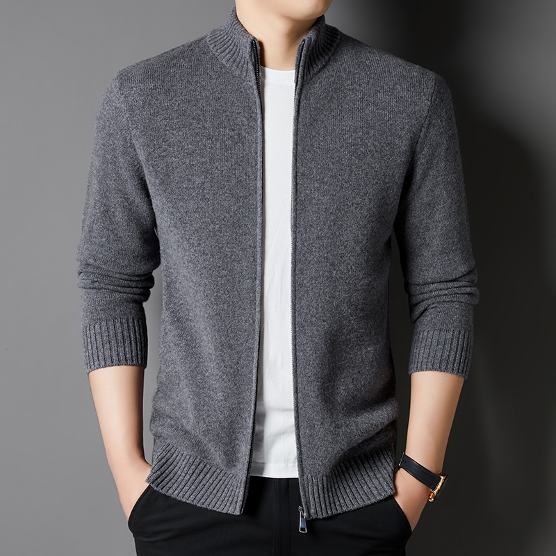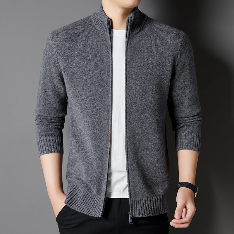 男士秋冬季针织100%纯羊毛开衫休闲立领中青年拉链毛衣