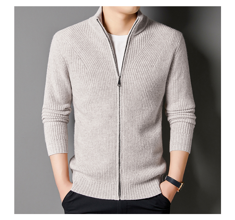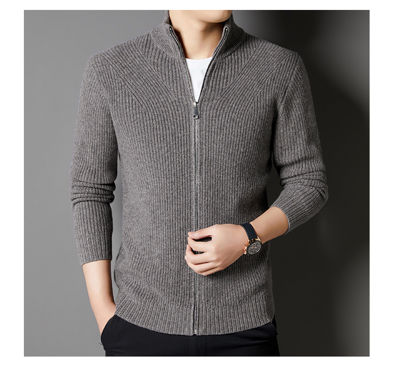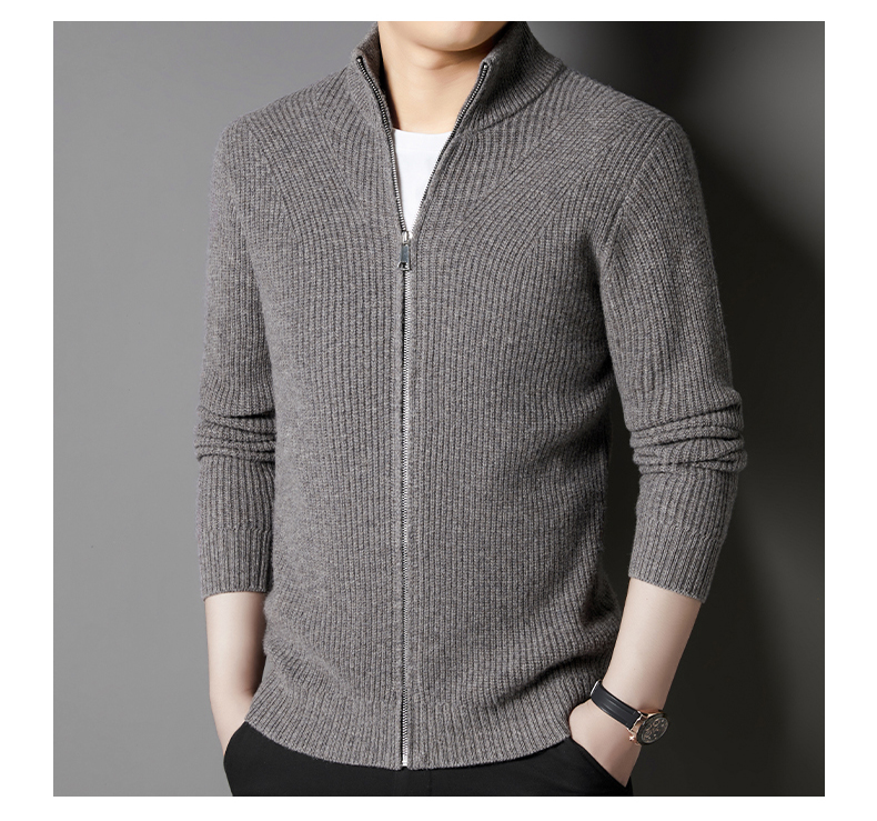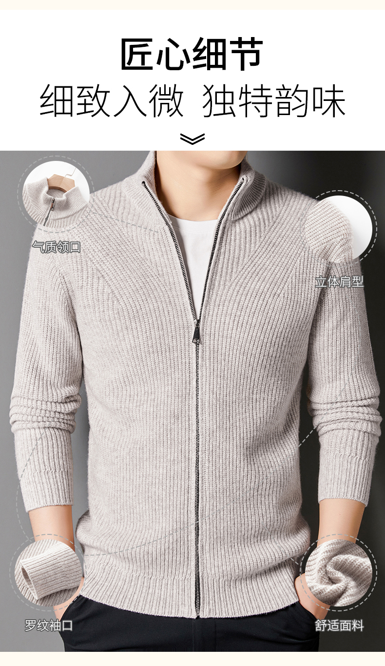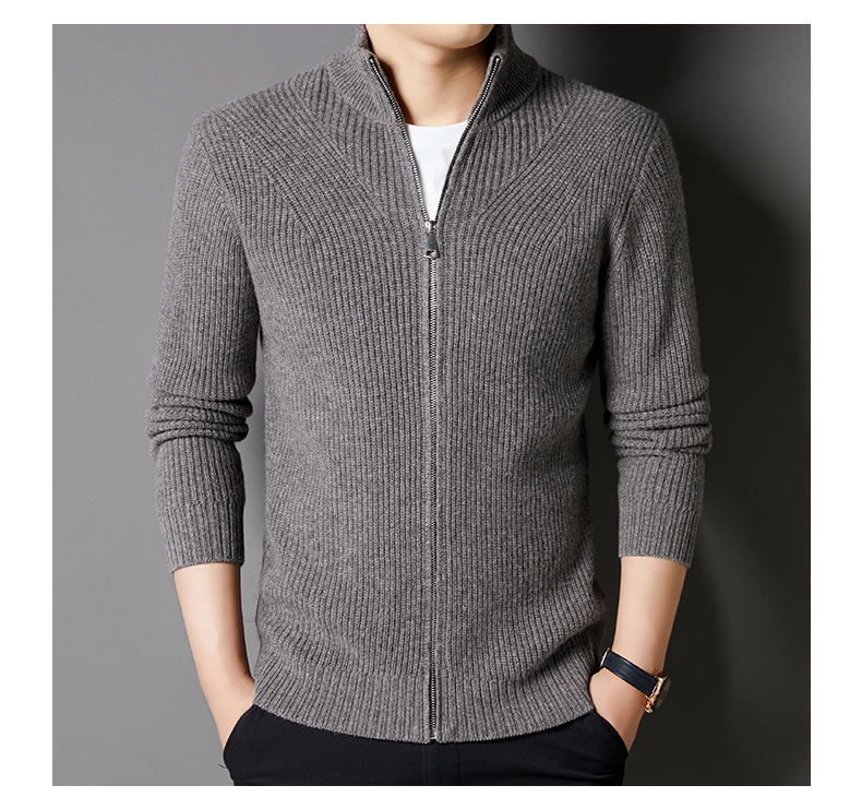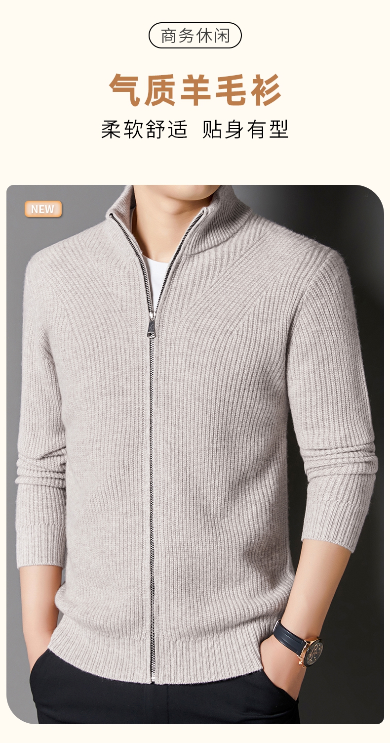 秋冬季100%纯羊毛纯色拉链开衫保暖针织毛衣外套