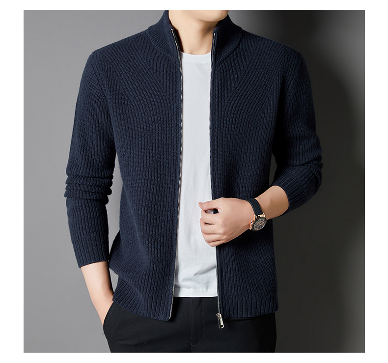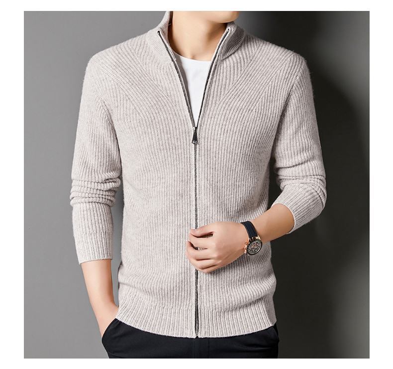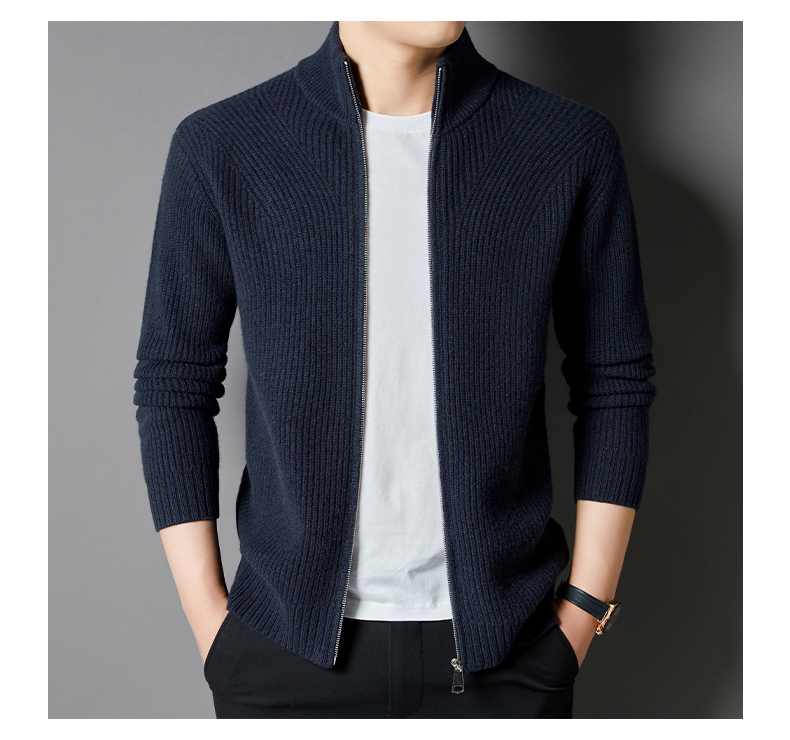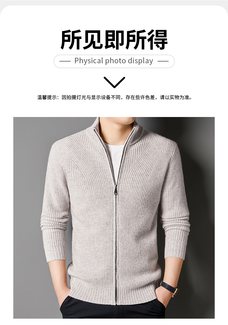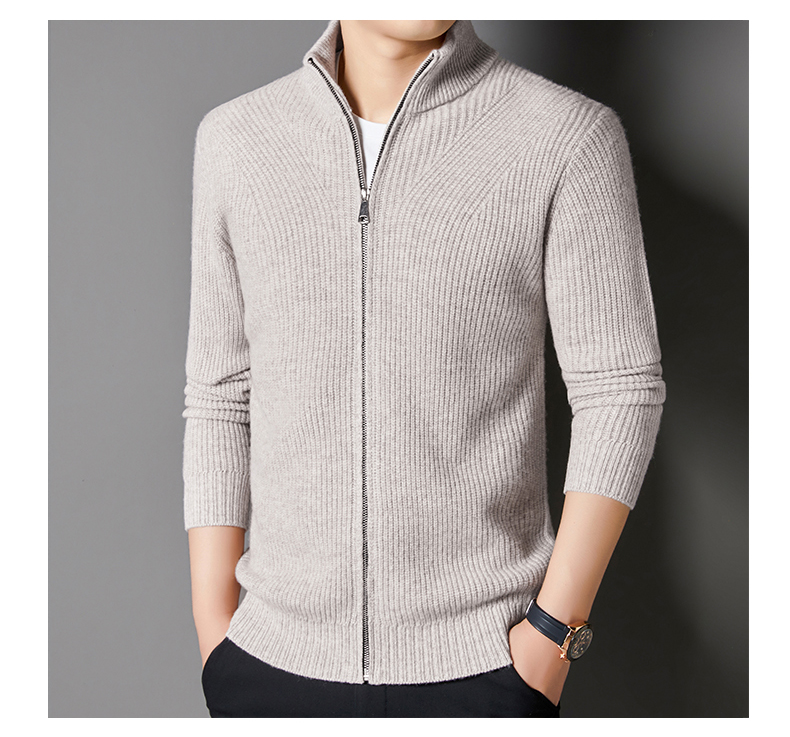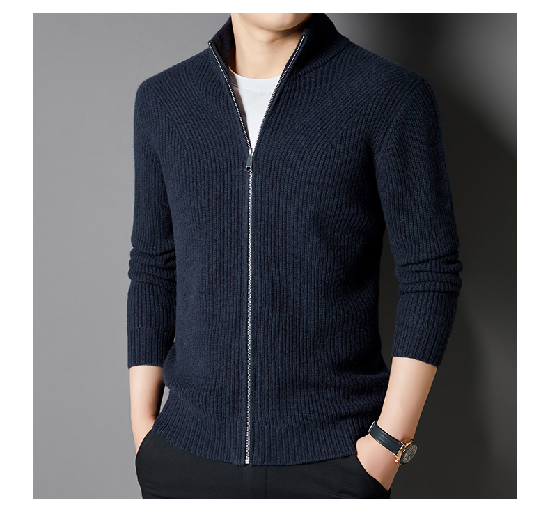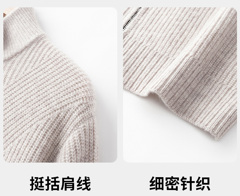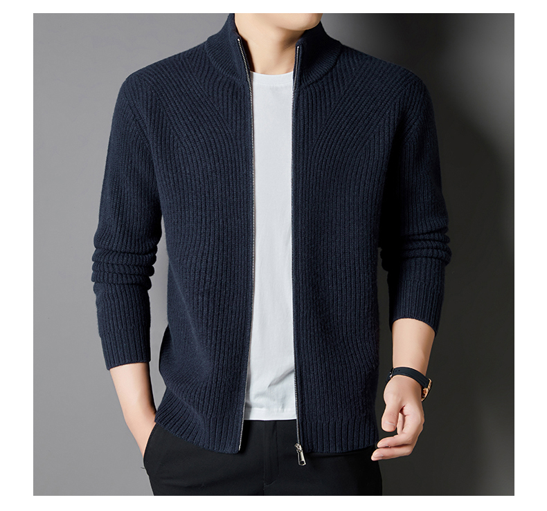秋冬季100%纯羊毛纯色拉链开衫保暖针织毛衣外套