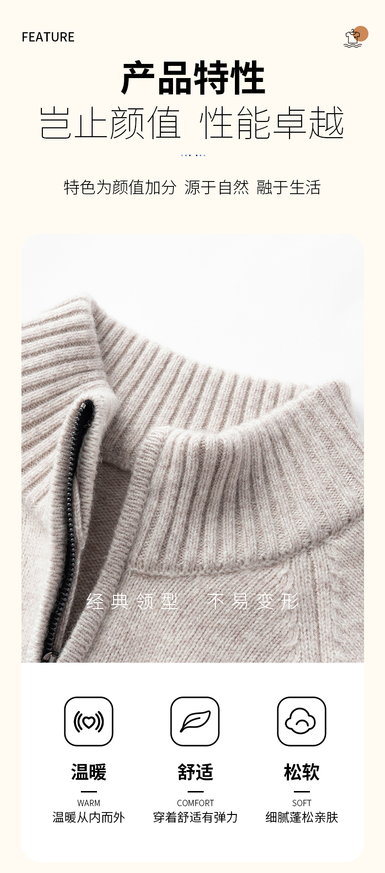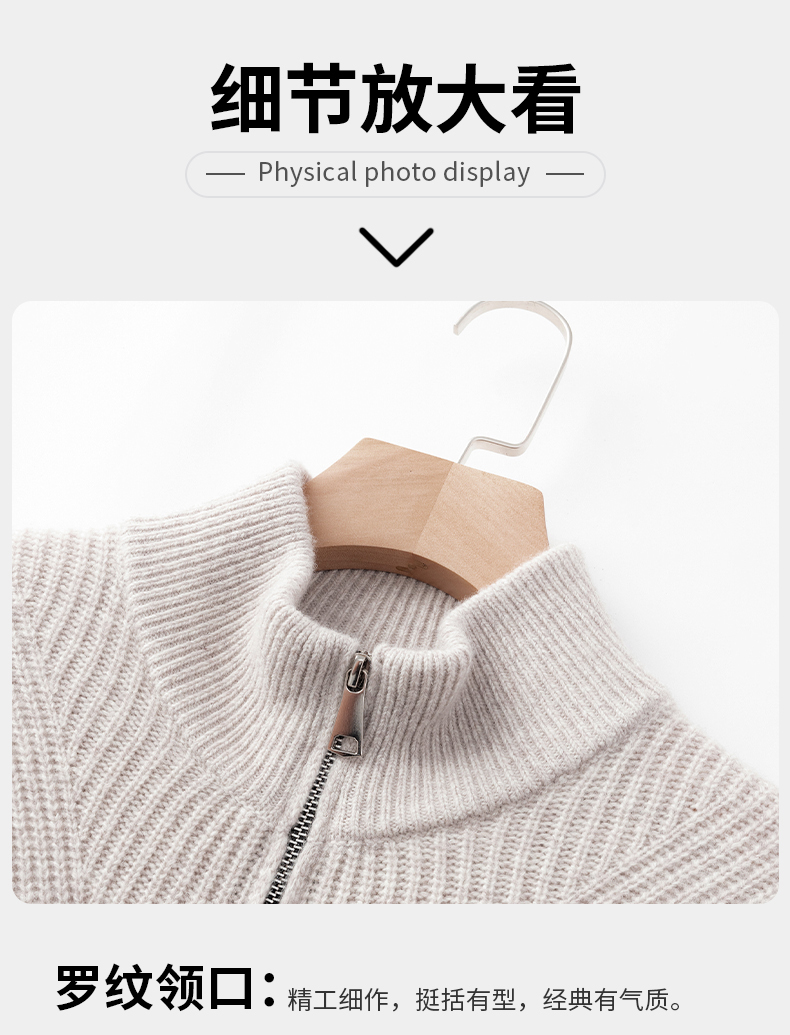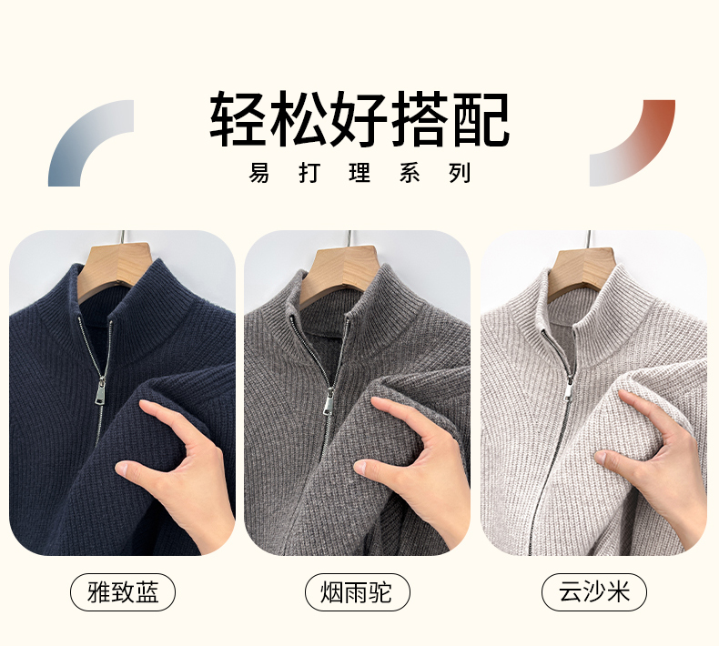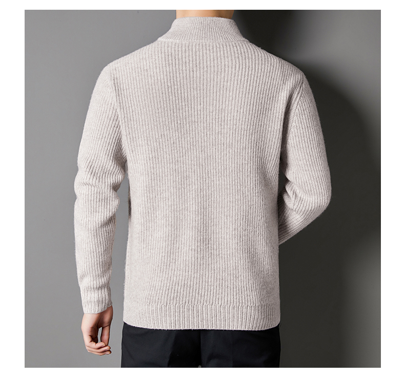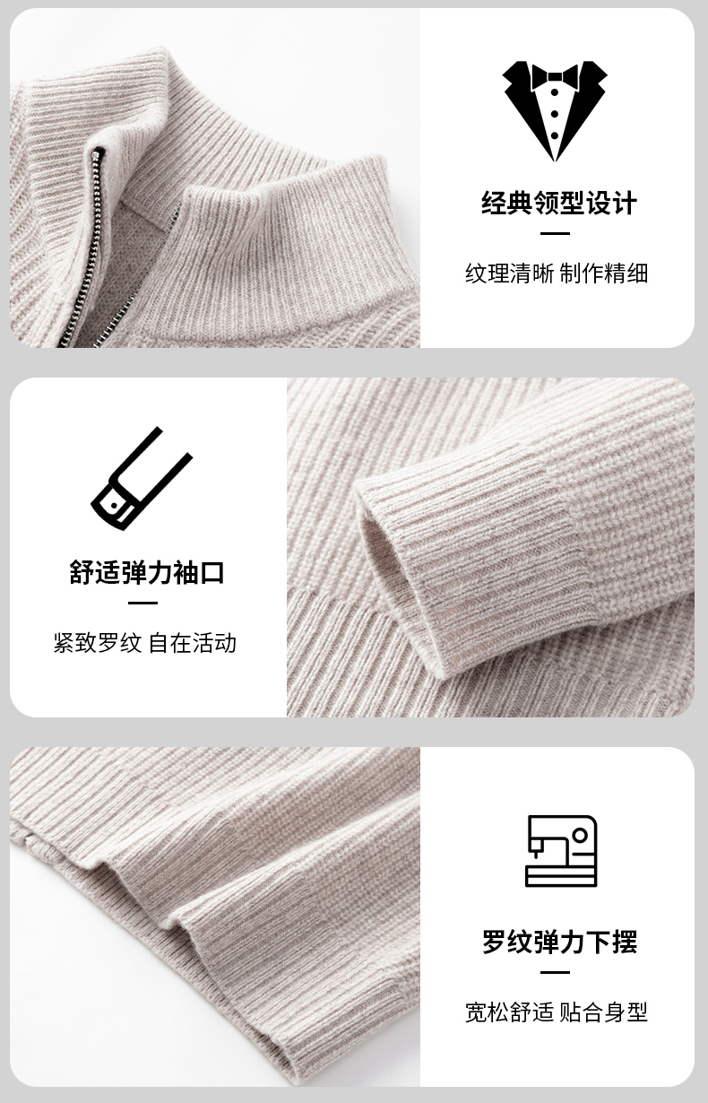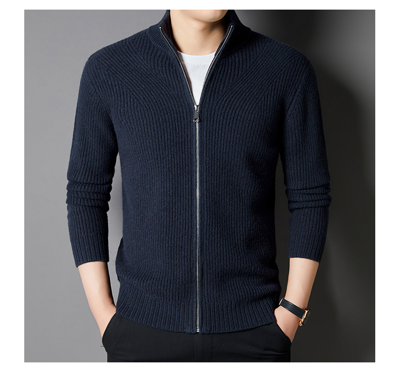 秋冬季100%纯羊毛纯色拉链开衫保暖针织毛衣外套