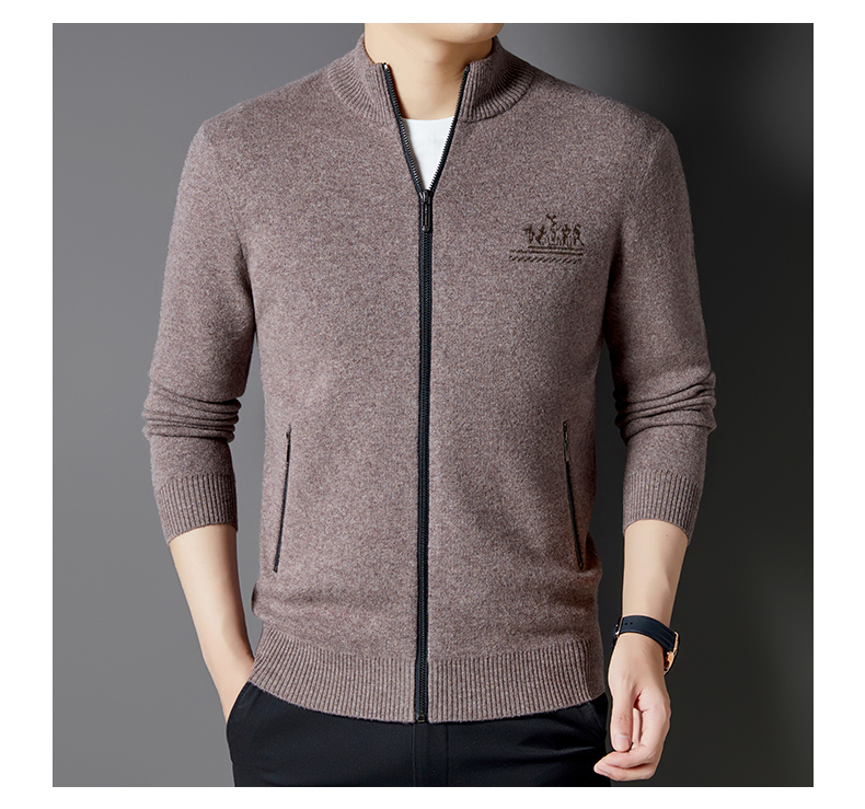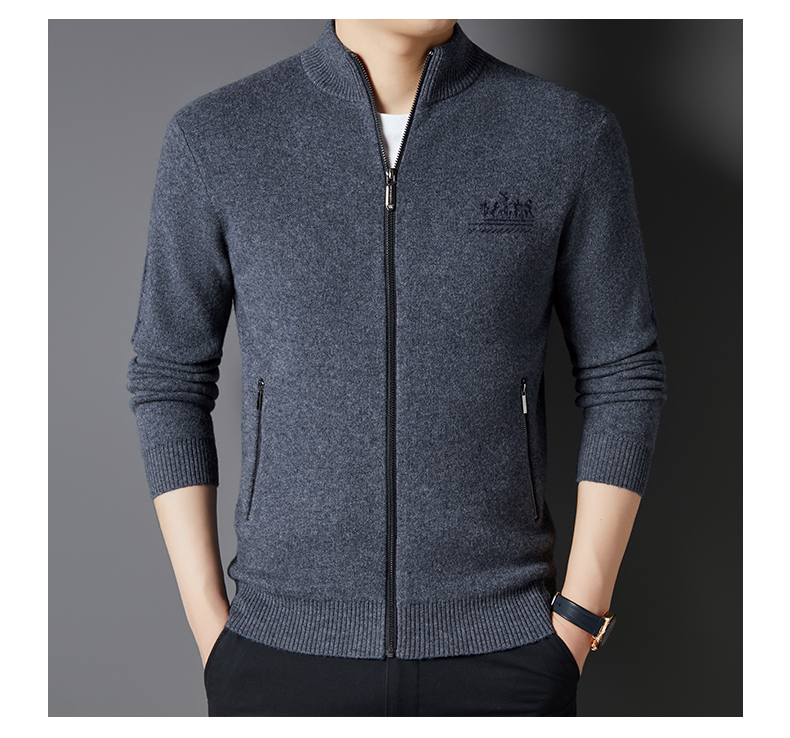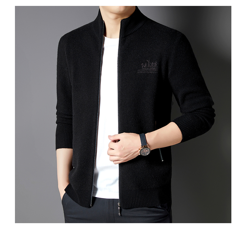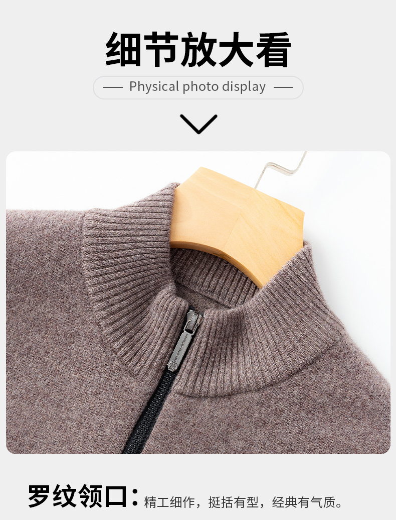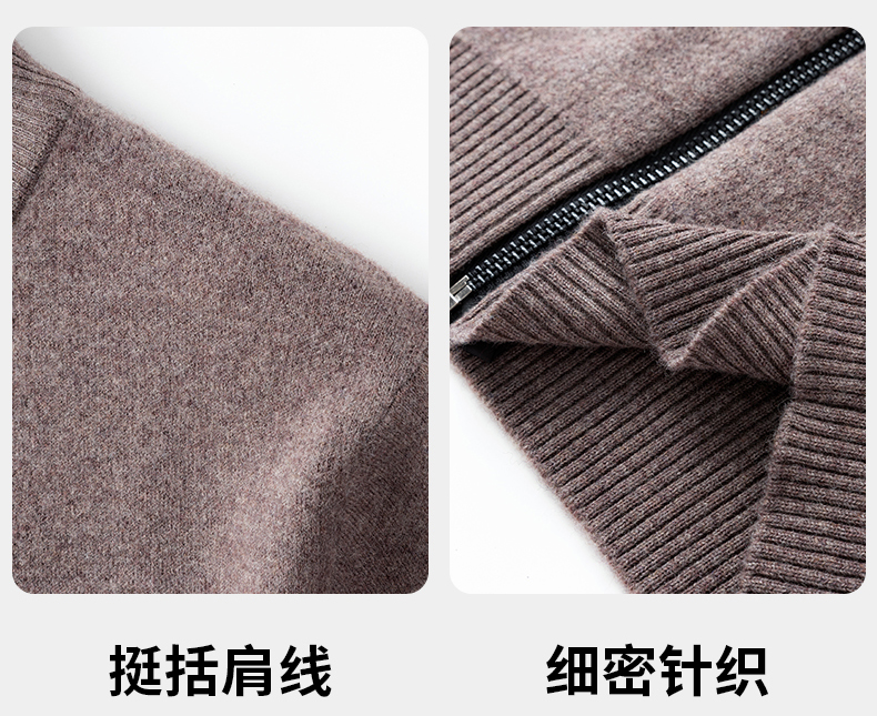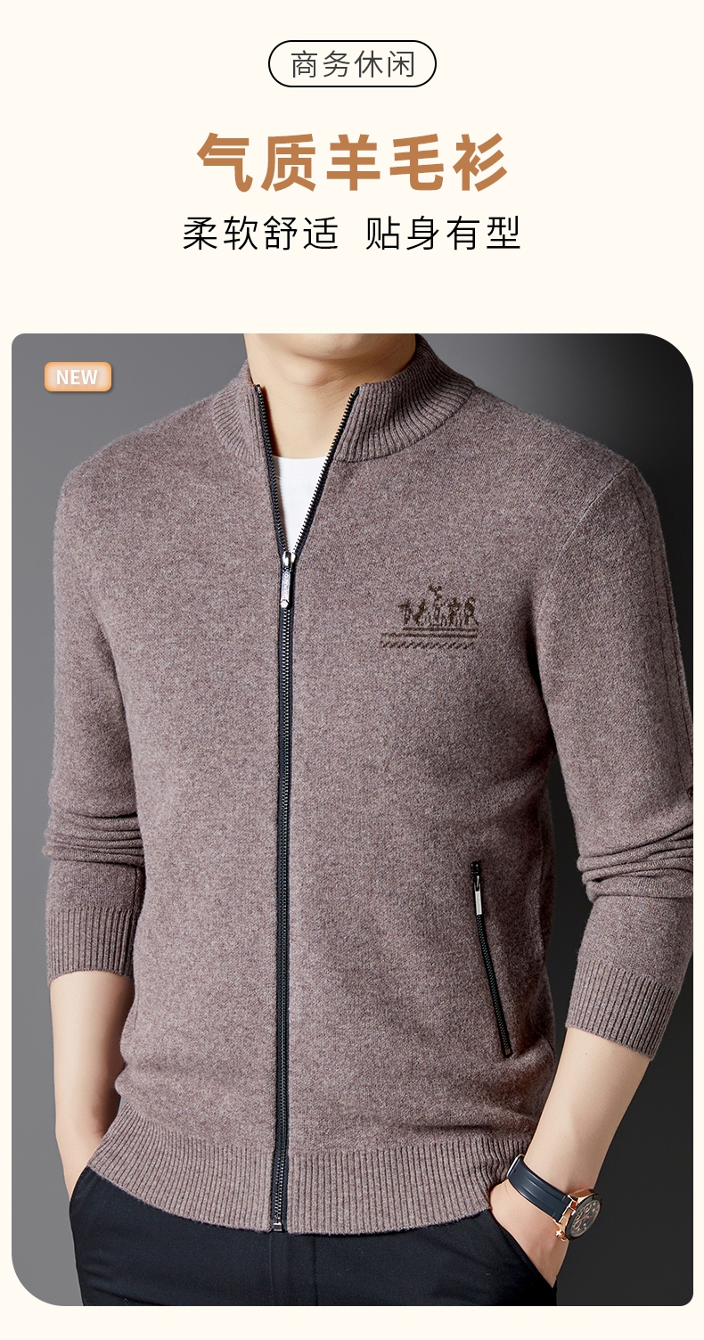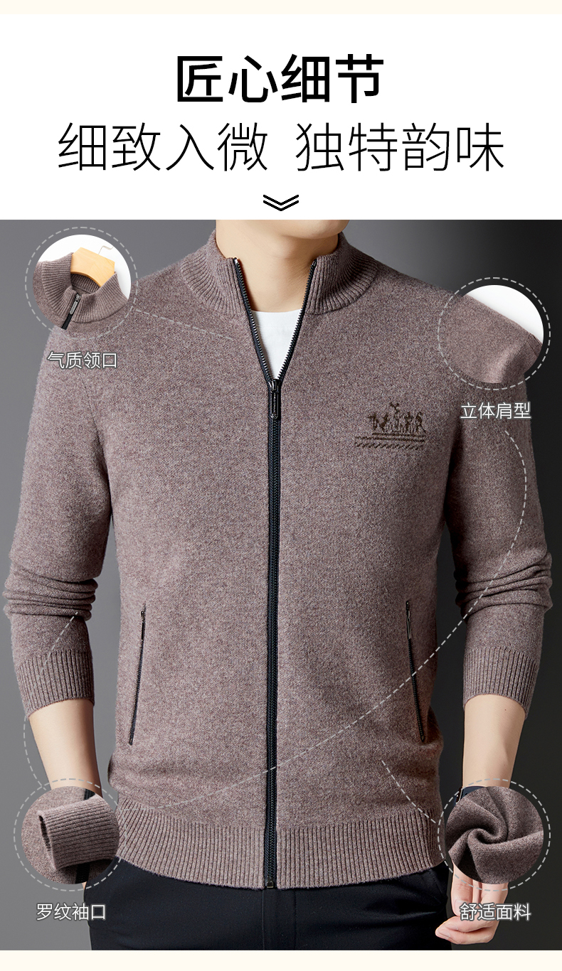 100%纯羊毛男士开衫拉链加厚秋冬季立领保暖针织外套