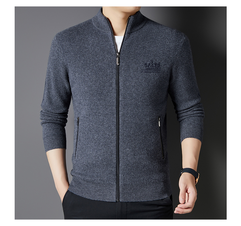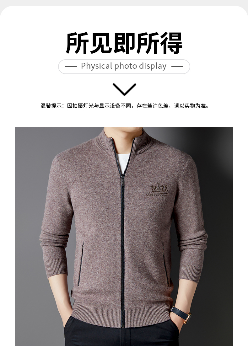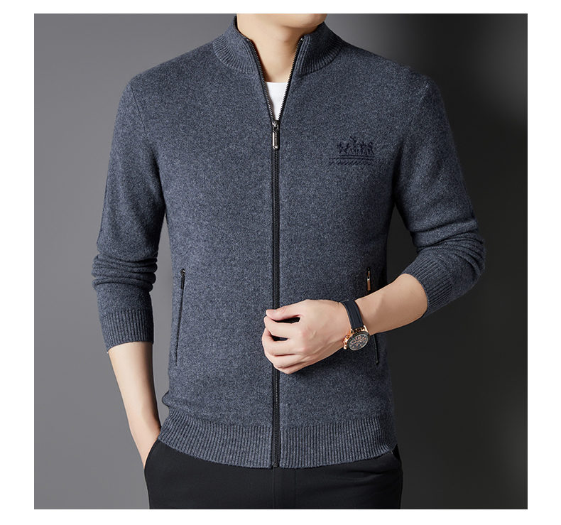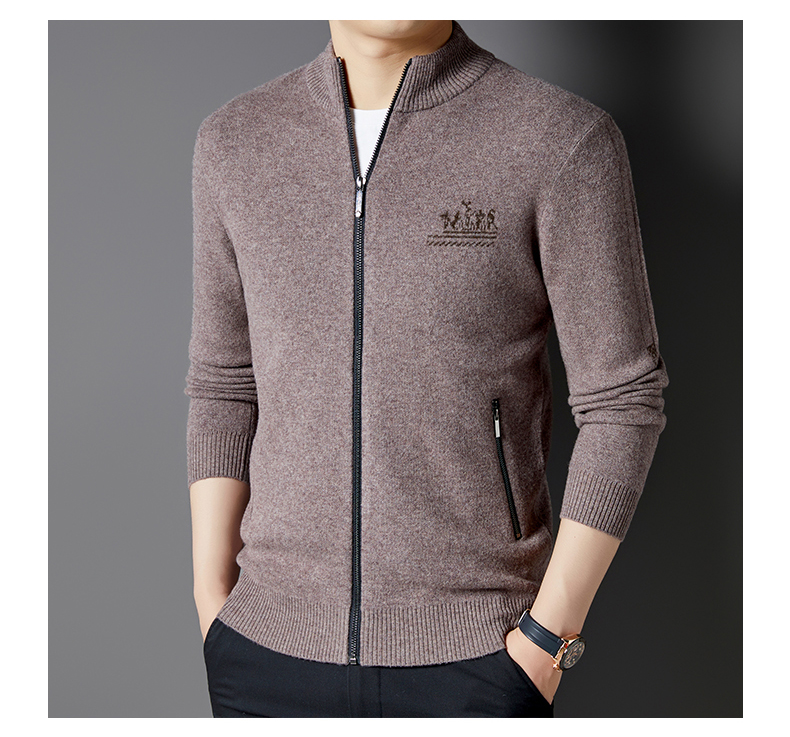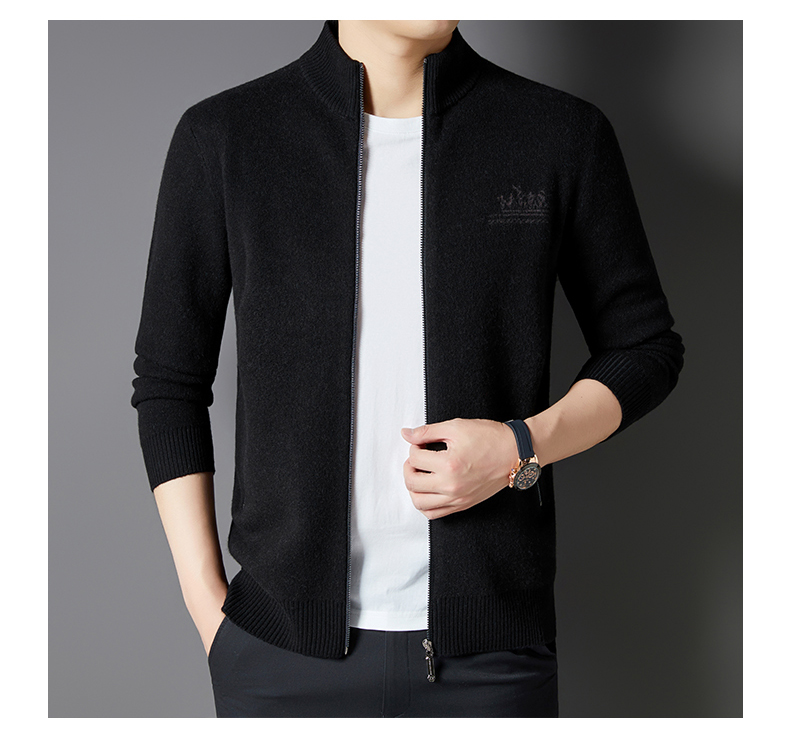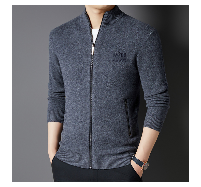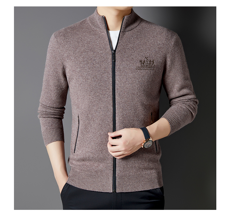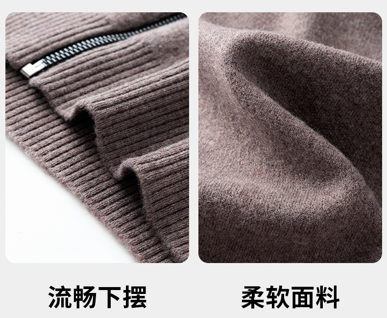 100%纯羊毛男士开衫拉链加厚秋冬季立领保暖针织外套