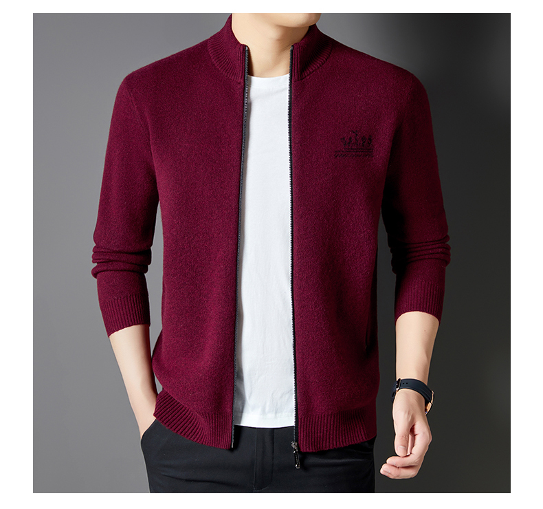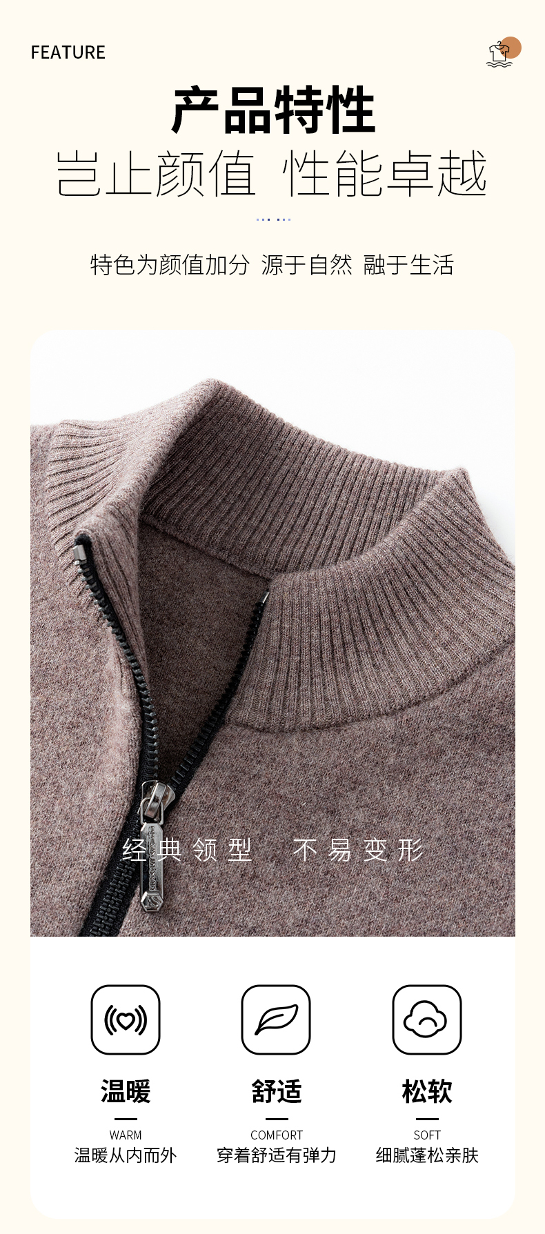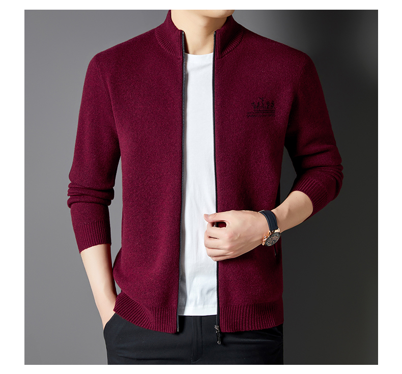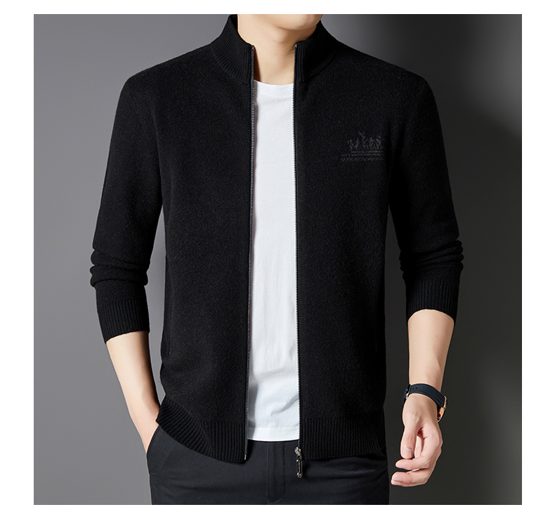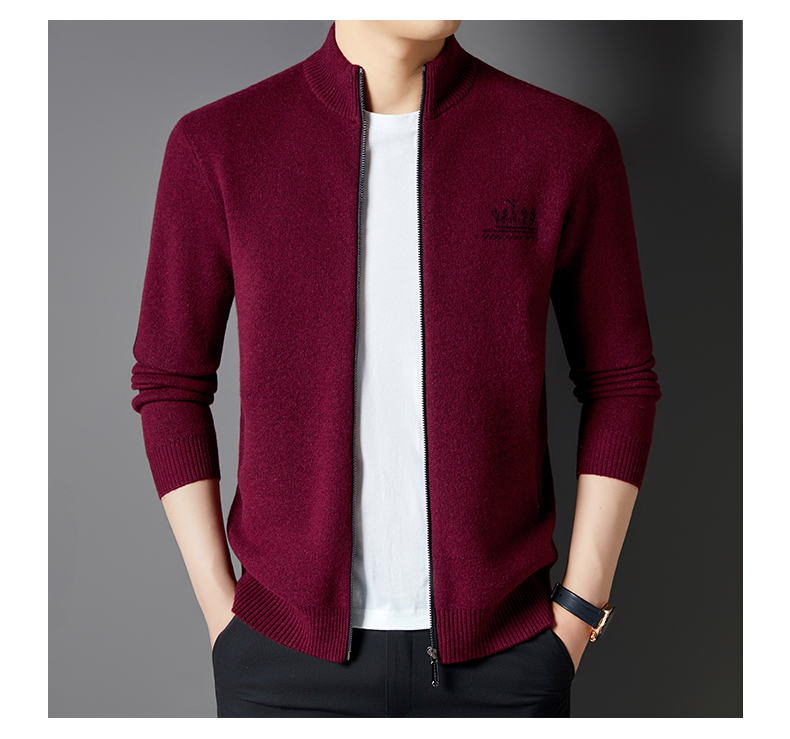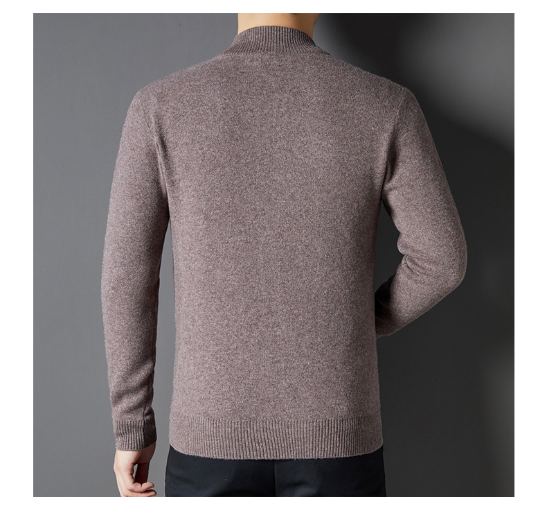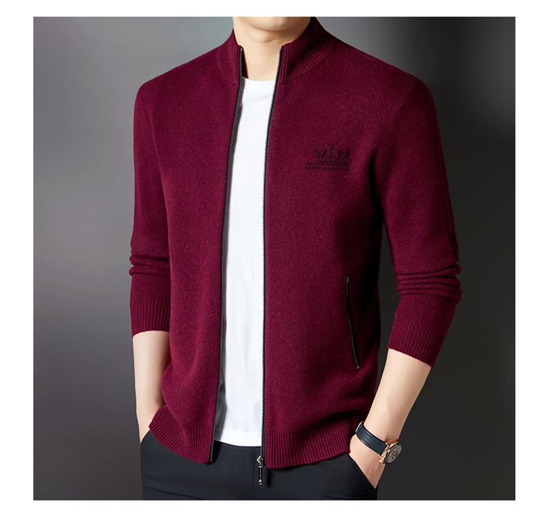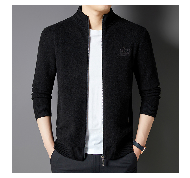 100%纯羊毛男士开衫拉链加厚秋冬季立领保暖针织外套