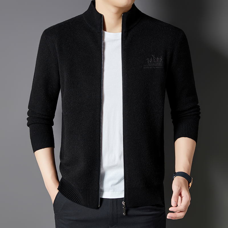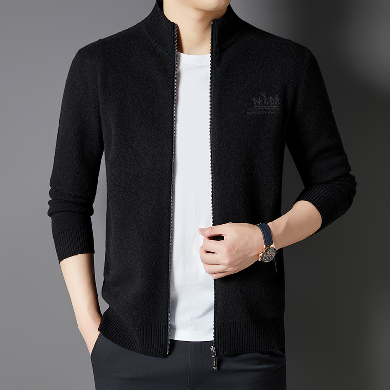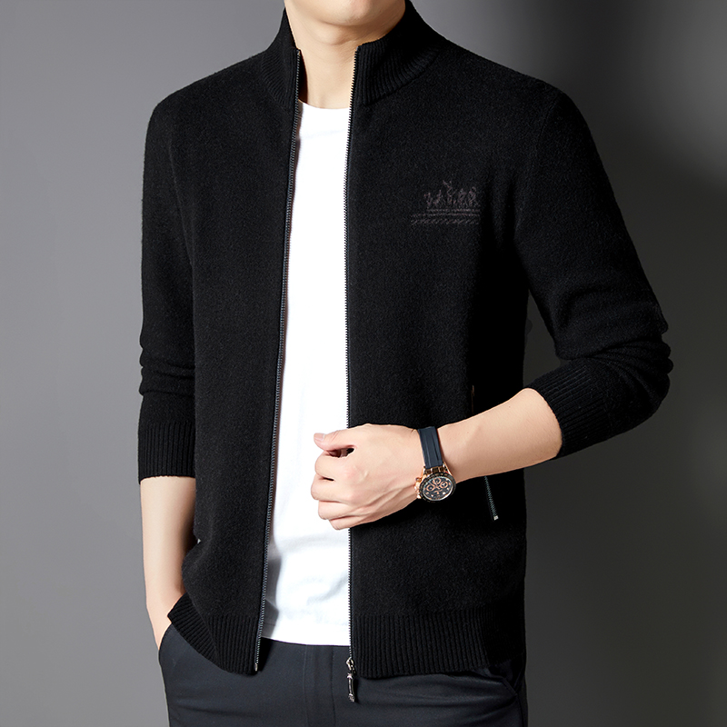 100%纯羊毛男士开衫拉链加厚秋冬季立领保暖针织外套