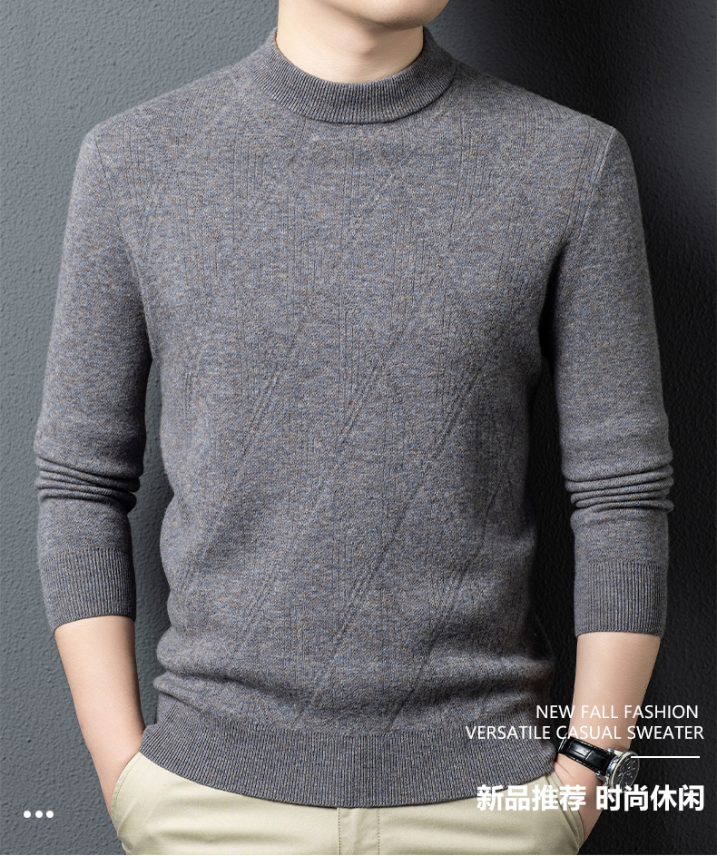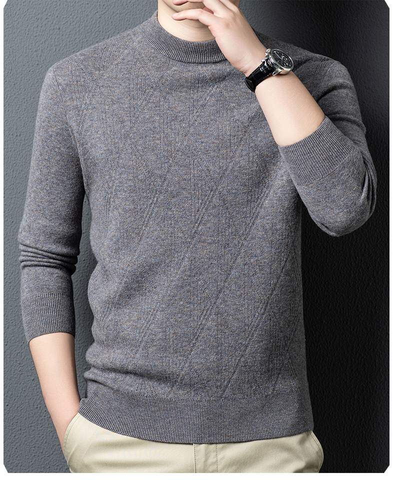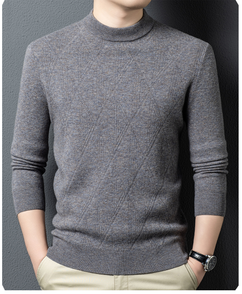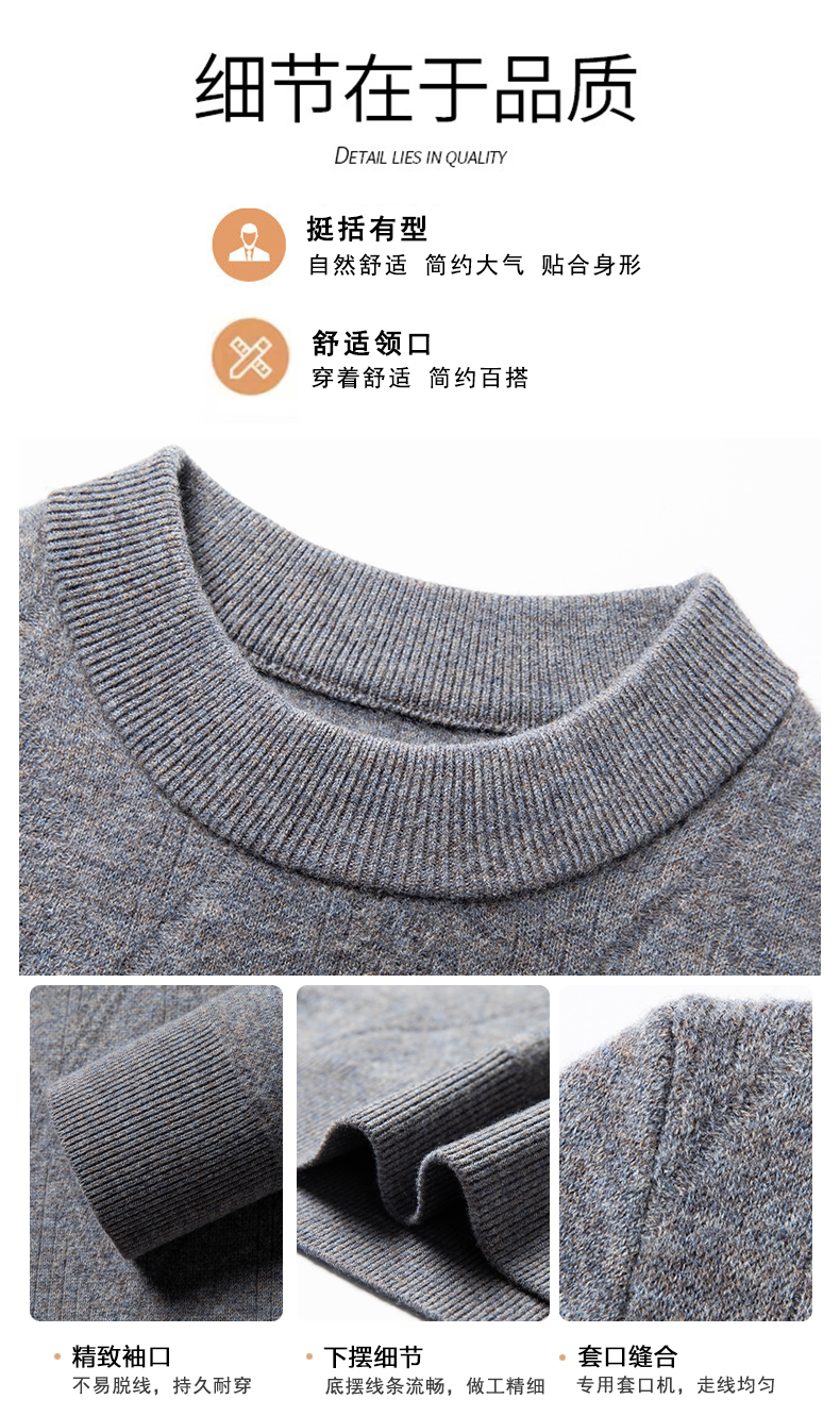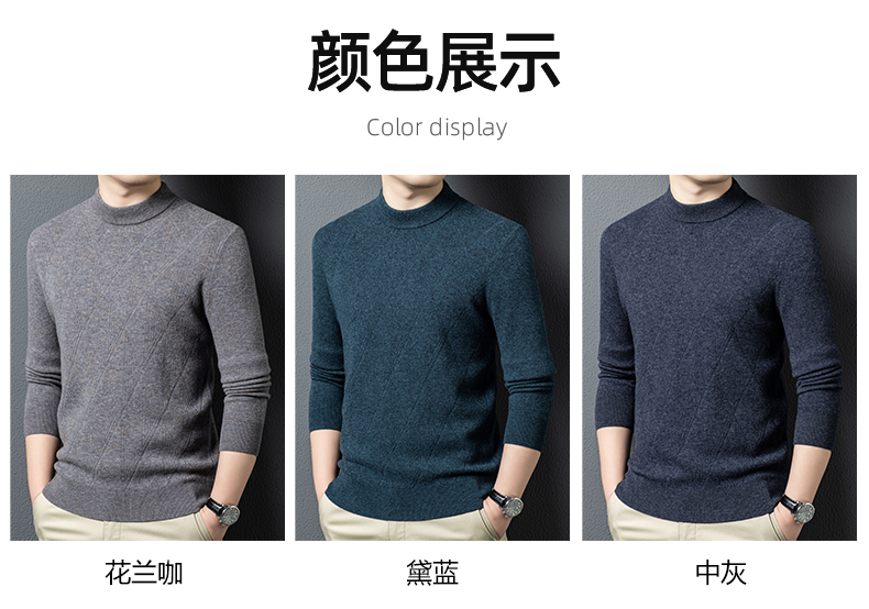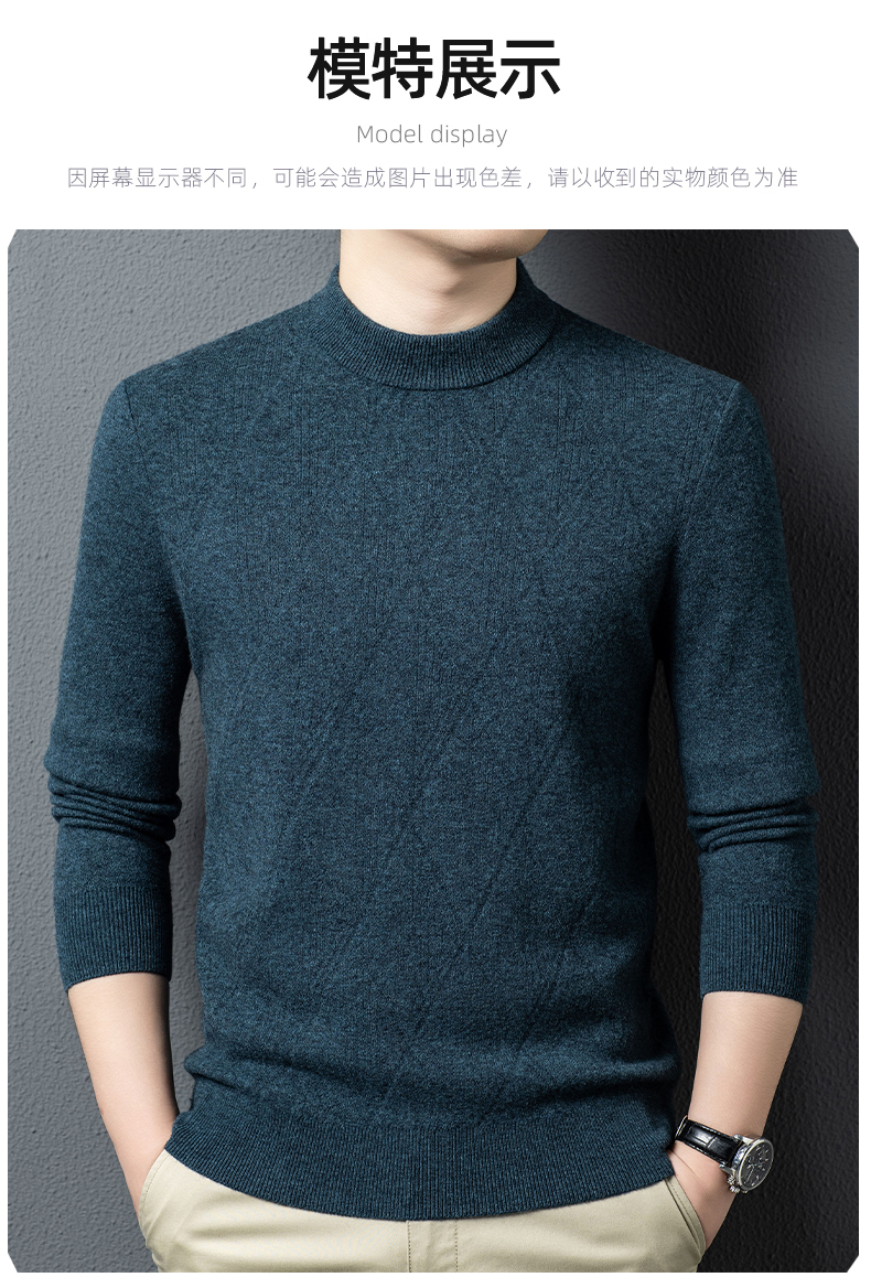 高端男士100%纯羊毛秋冬季保暖简约休闲百搭针织打底衫