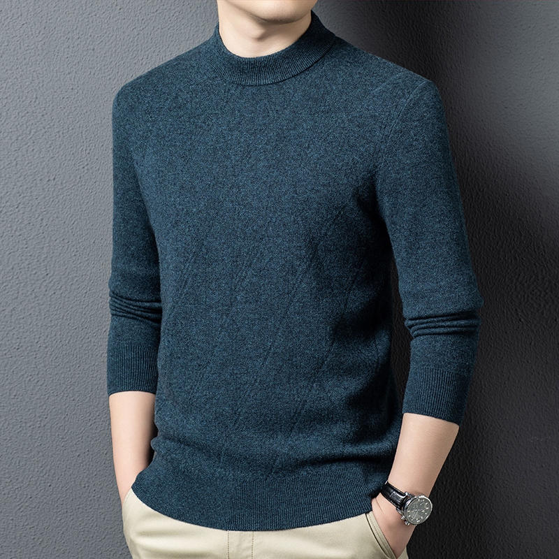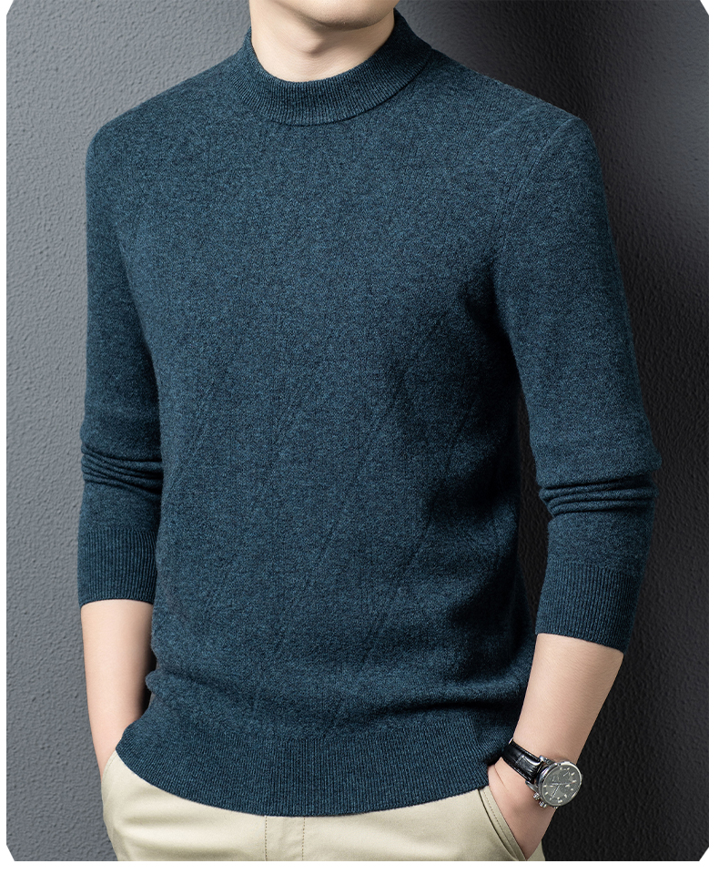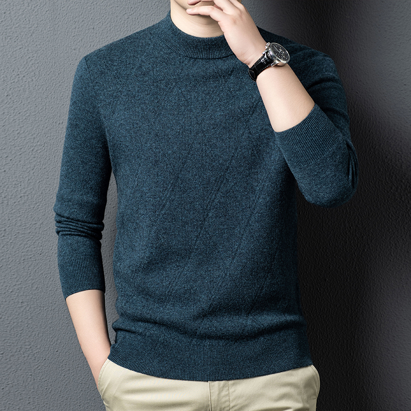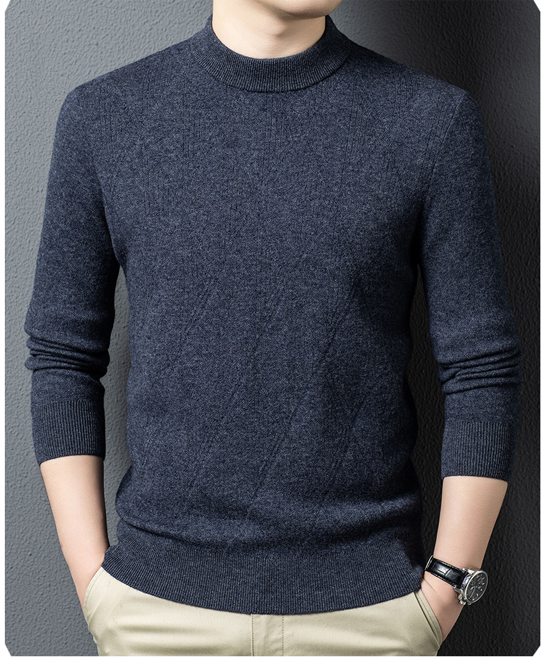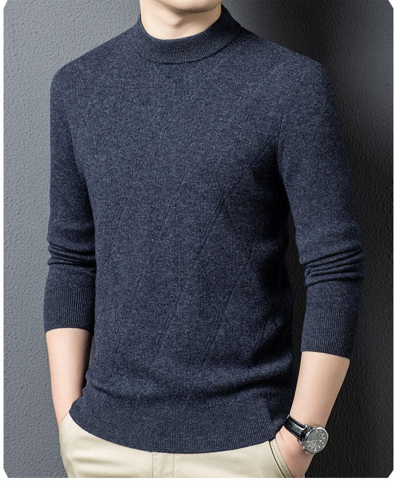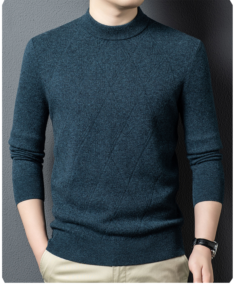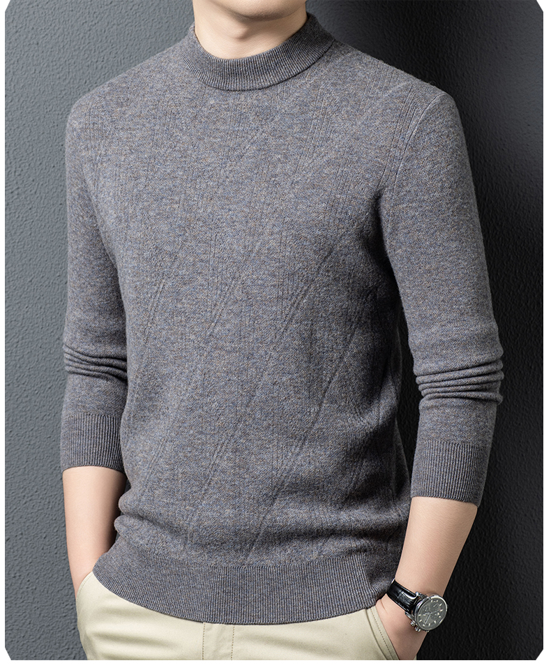 高端男士100%纯羊毛秋冬季保暖简约休闲百搭针织打底衫