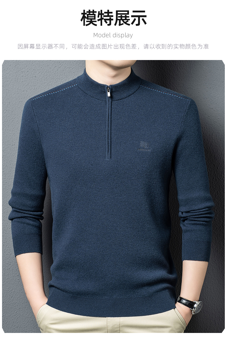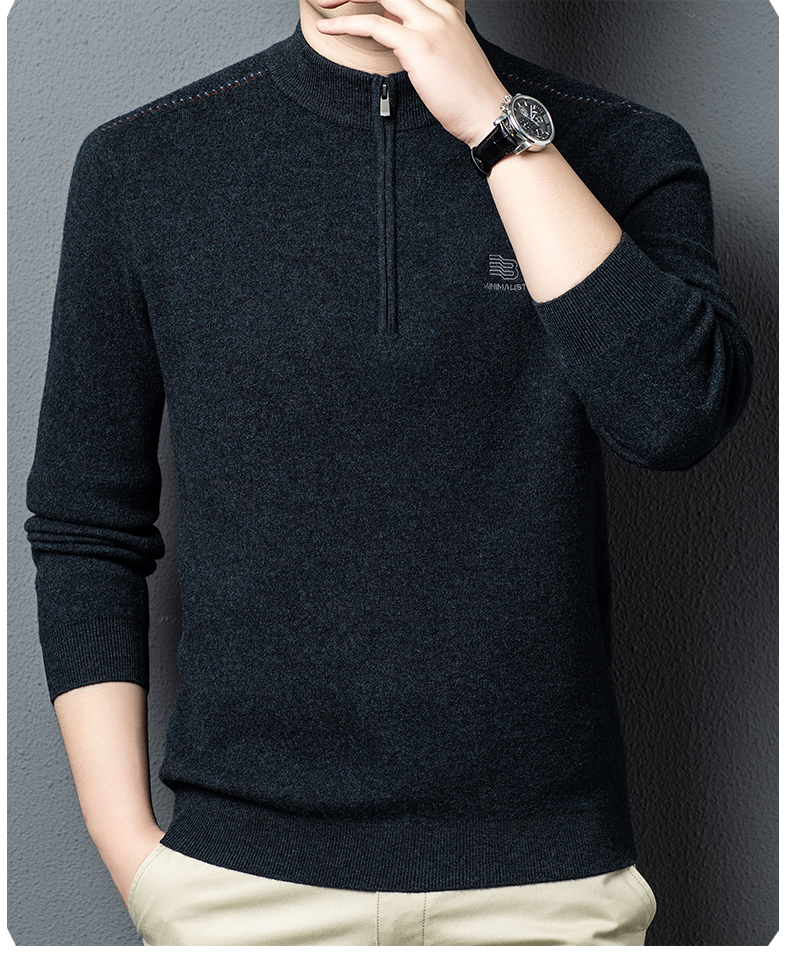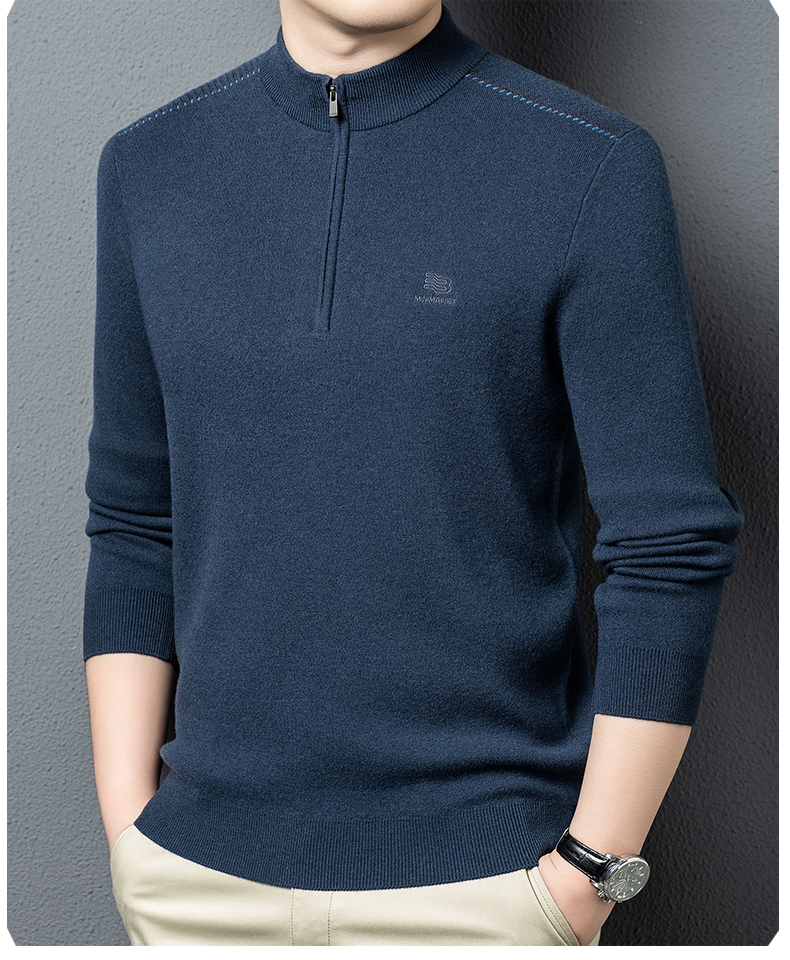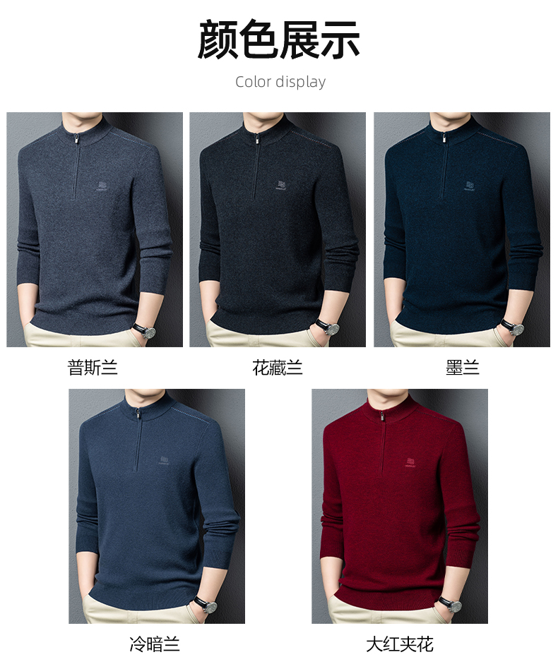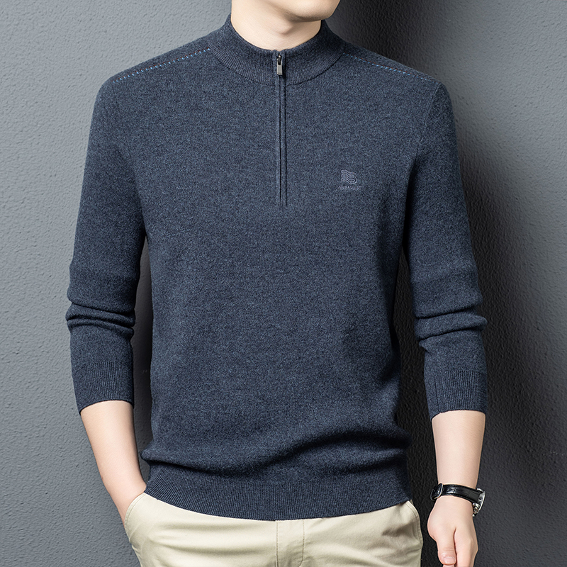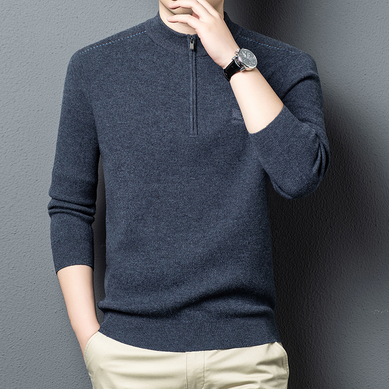 秋冬高端男士毛衣加厚半高拉链领100%纯羊毛打底衫