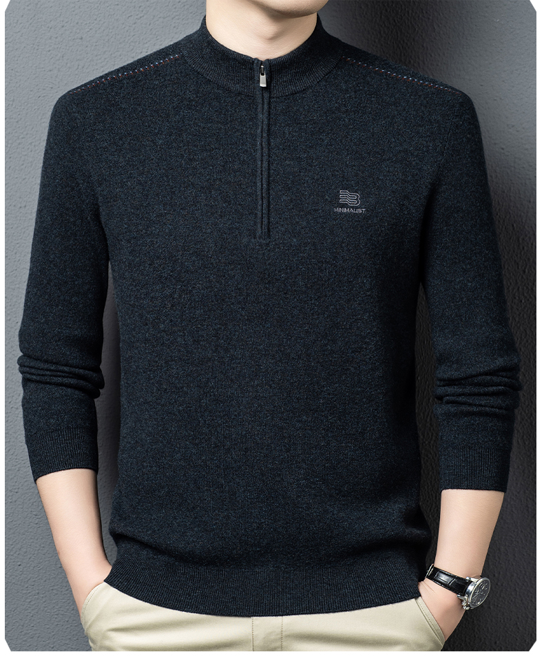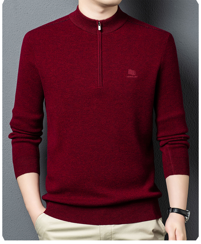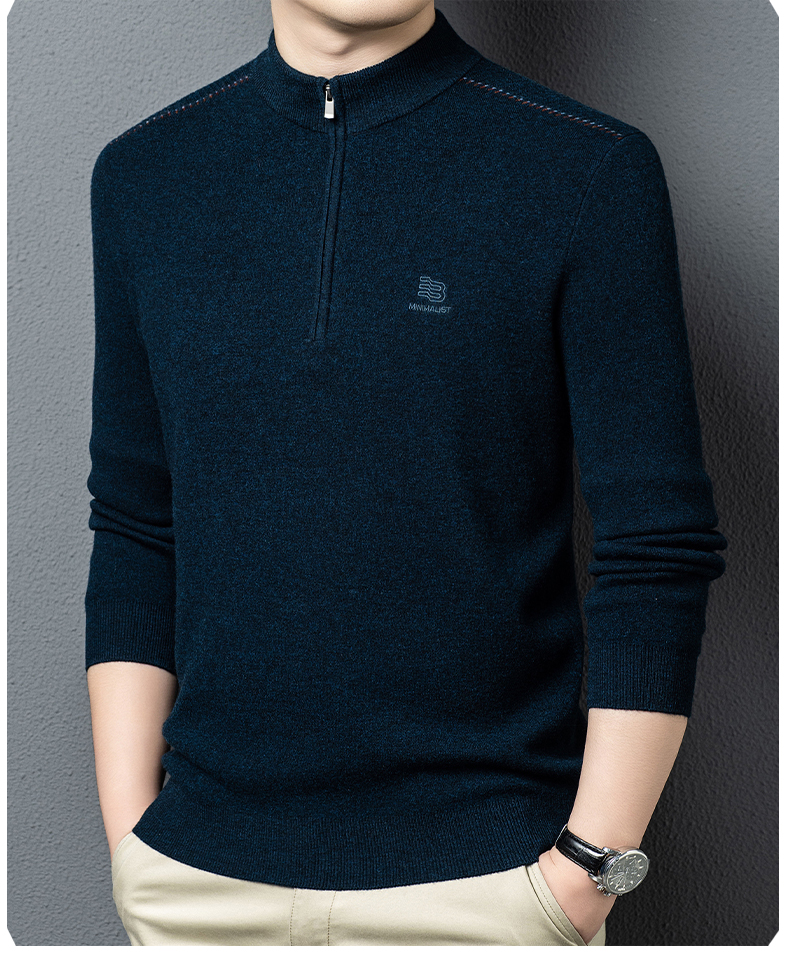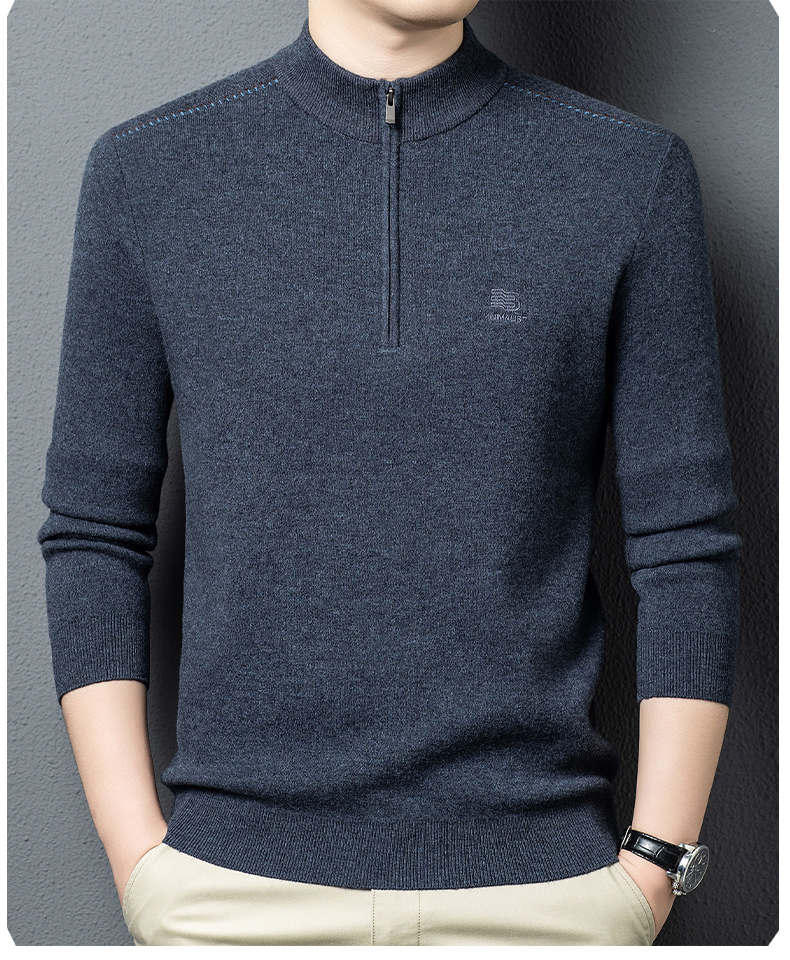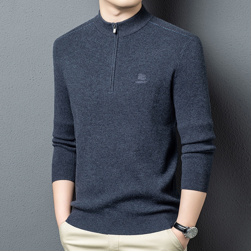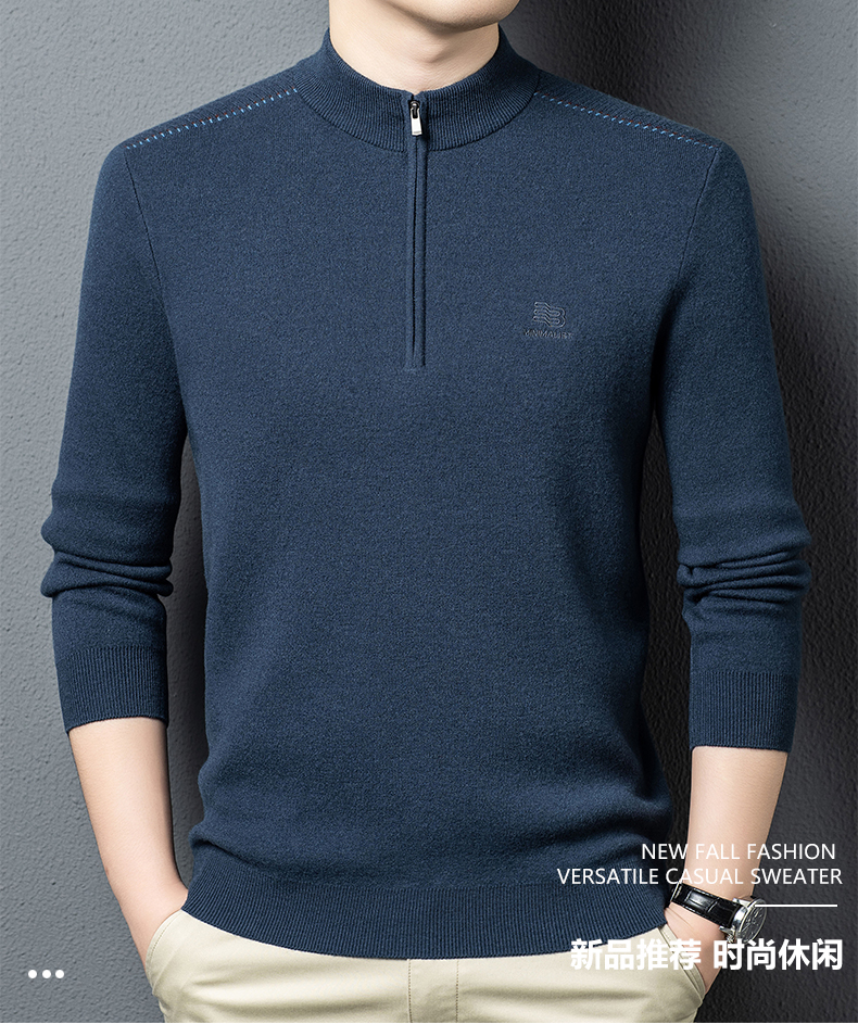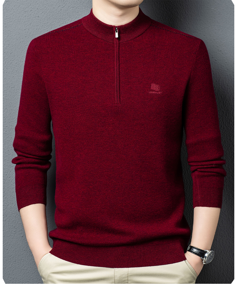 秋冬高端男士毛衣加厚半高拉链领100%纯羊毛打底衫