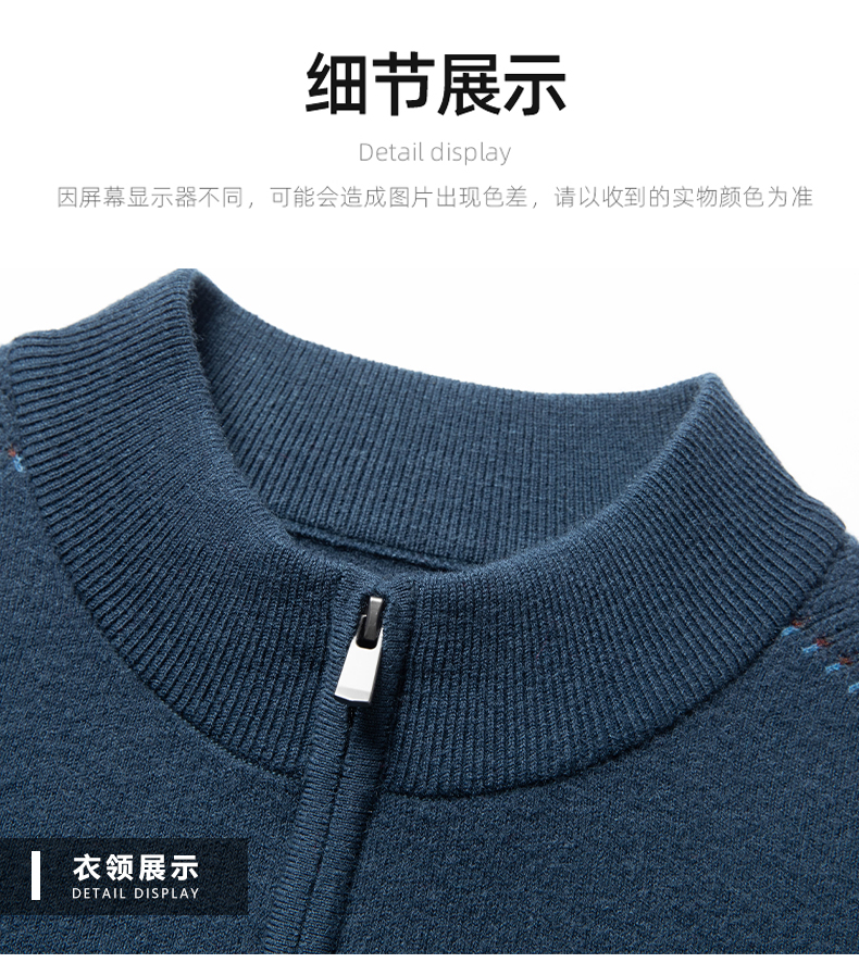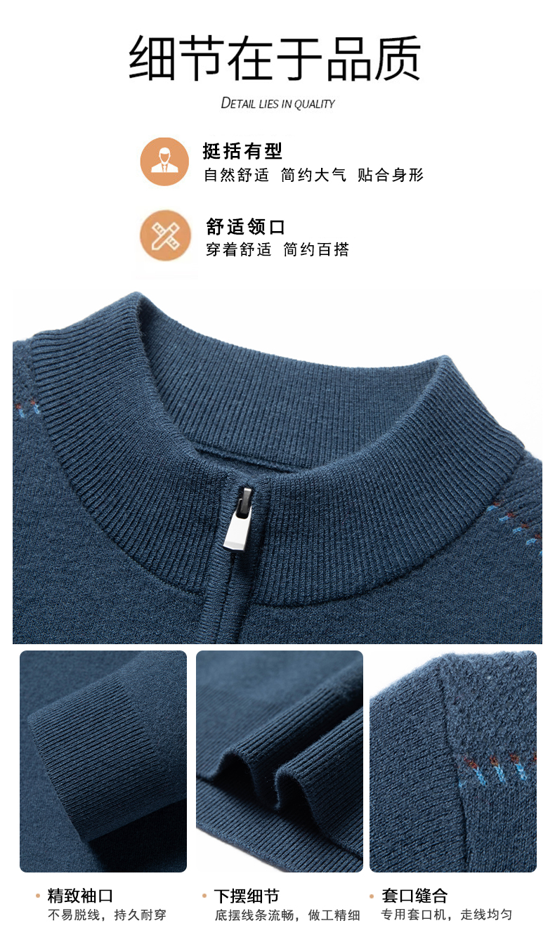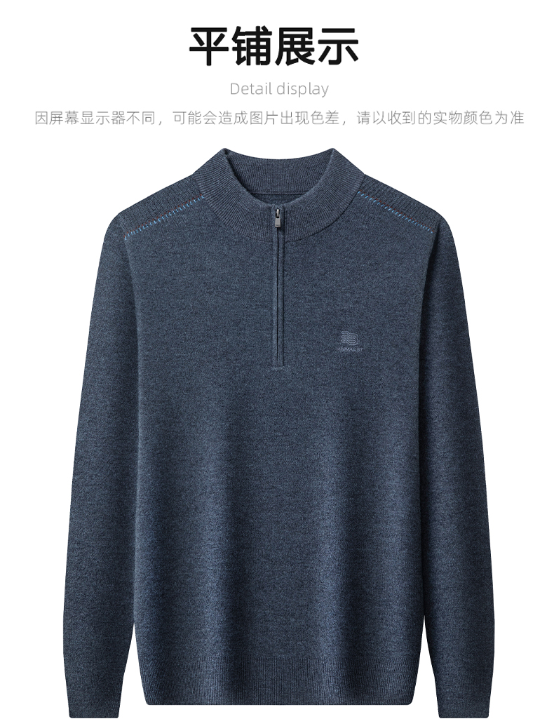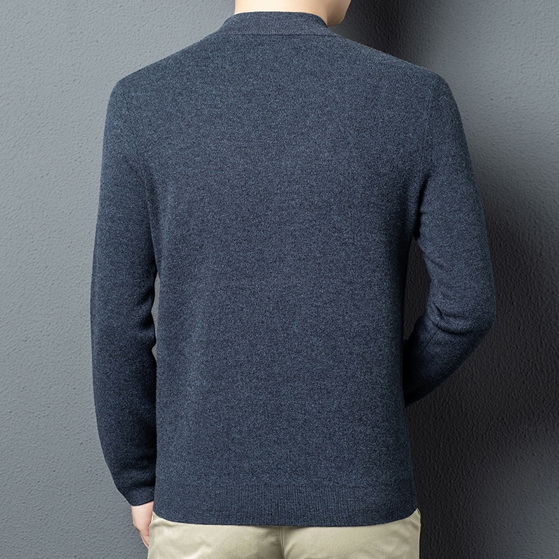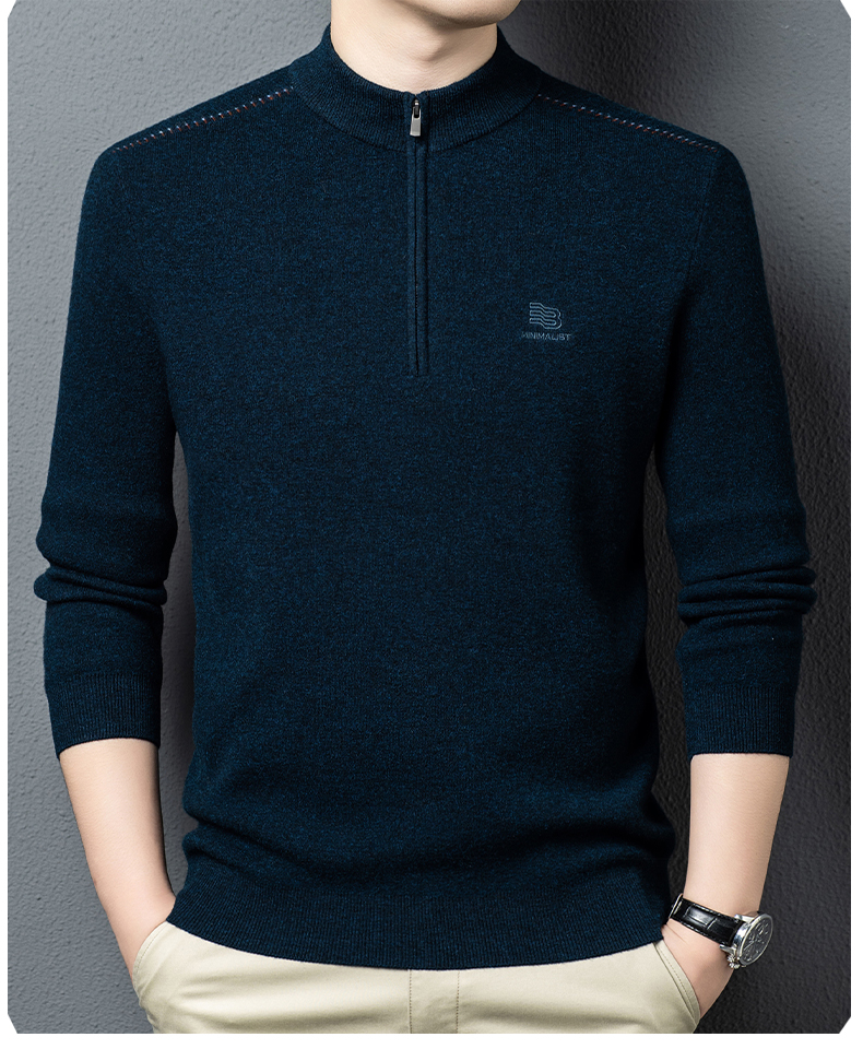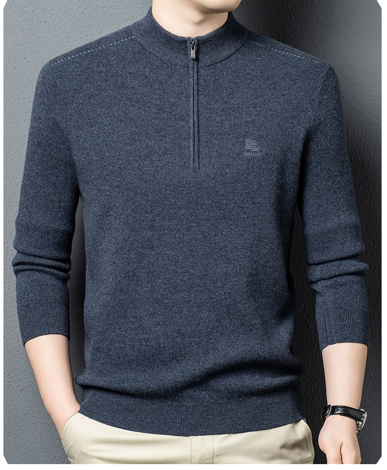 秋冬高端男士毛衣加厚半高拉链领100%纯羊毛打底衫