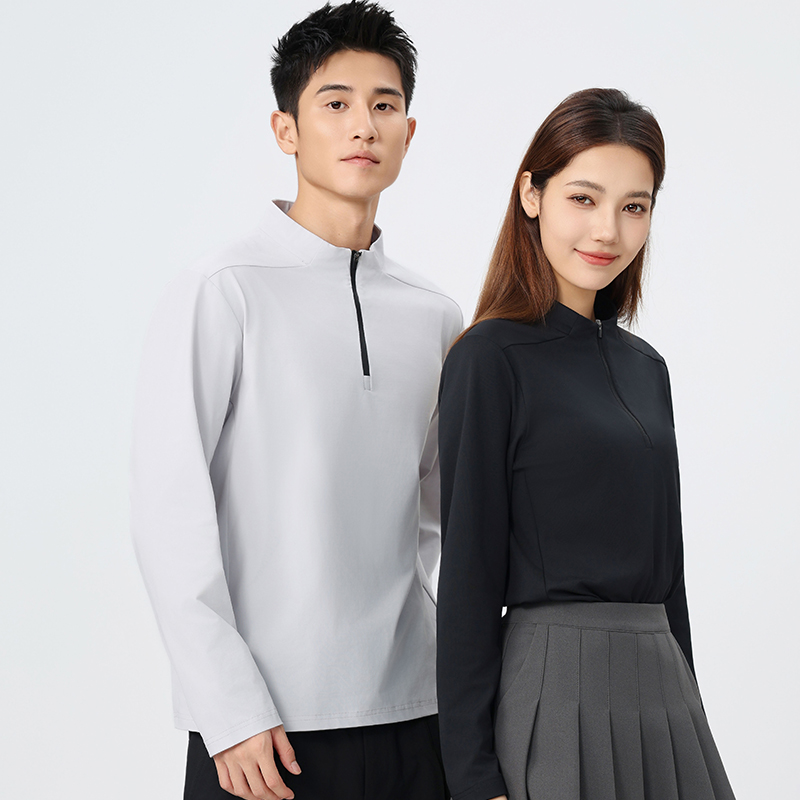 迪桑特同款半开衫立领针织长袖T恤情侣款上衣