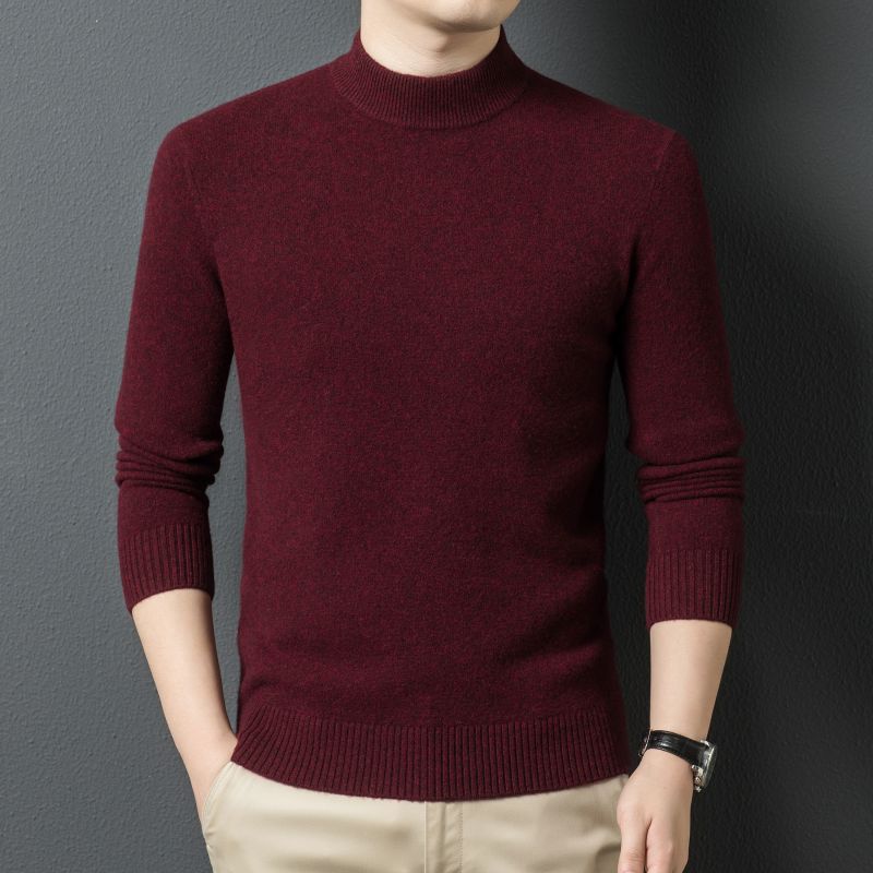 100%纯羊毛男士秋冬季半高领纯色休闲针织衫