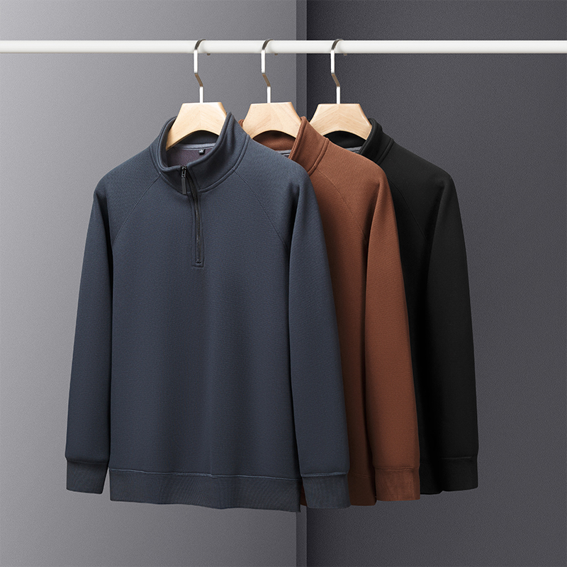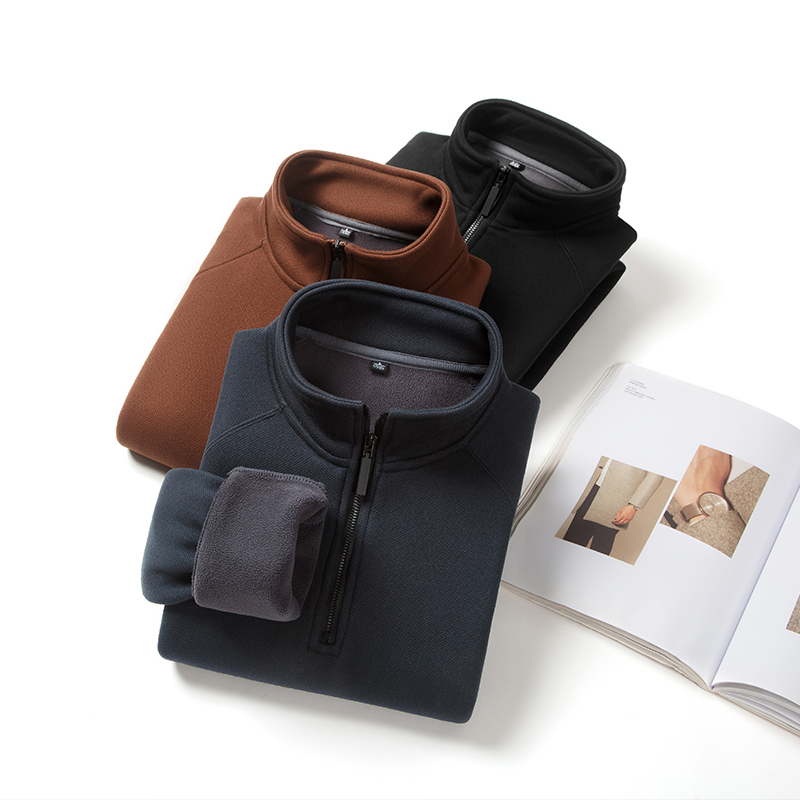 秋冬季加绒卫衣男士立领半拉链保暖打底衫加厚上衣