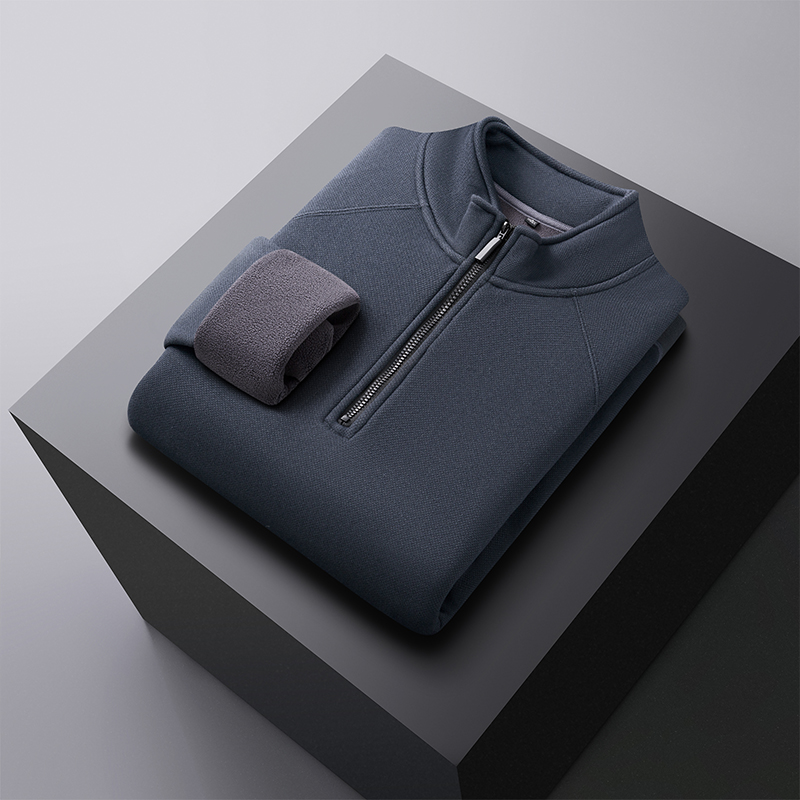 丰讯 秋冬季加绒卫衣男士立领半拉链保暖打底衫加厚上衣(单位:件 ) 蓝灰 M