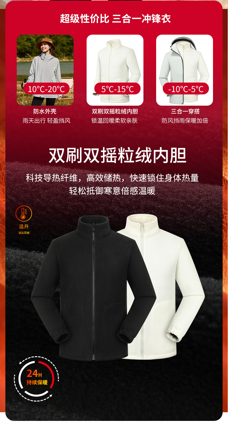秋冬三合一摇粒绒可脱卸内胆工作服外套男女加绒外套