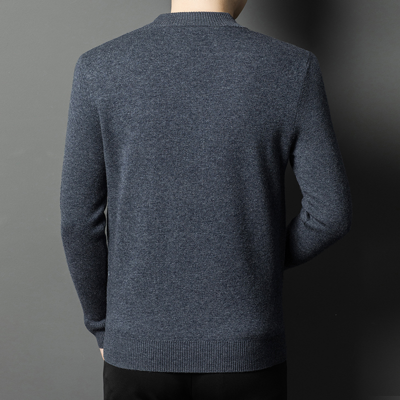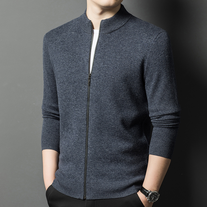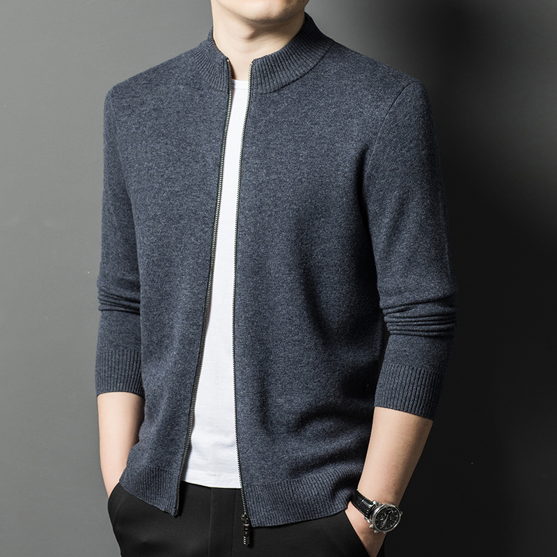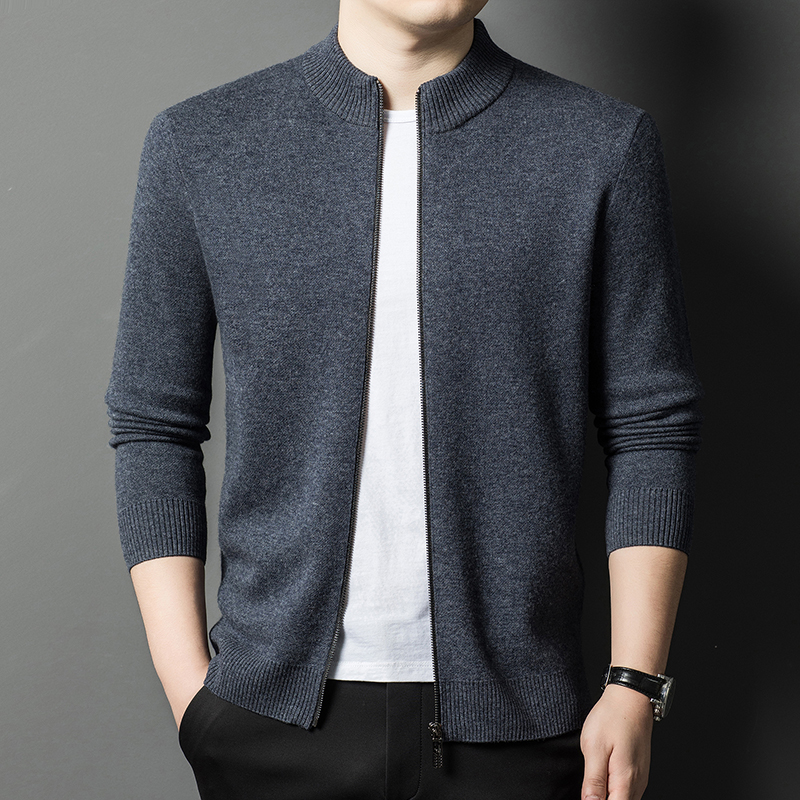秋冬季100%纯羊毛开衫男士拉链立领针织衫外套上衣