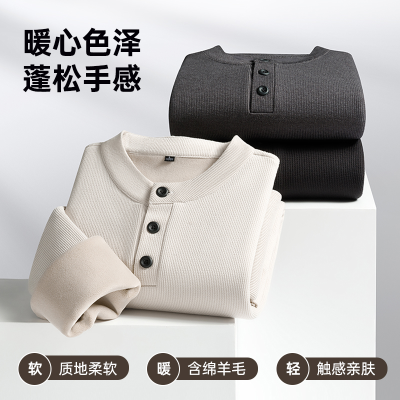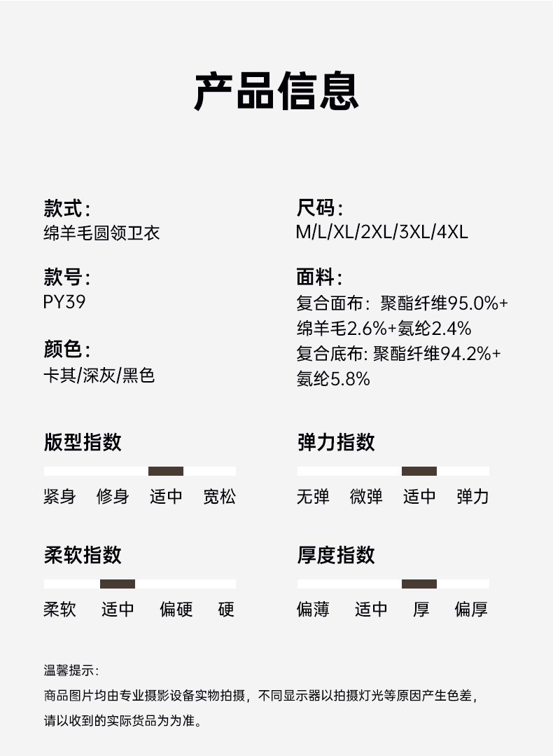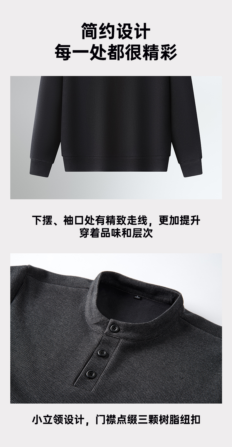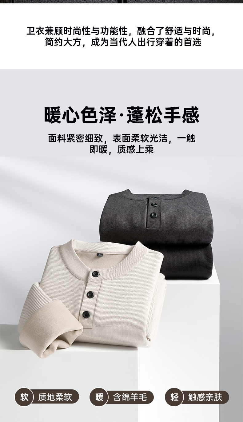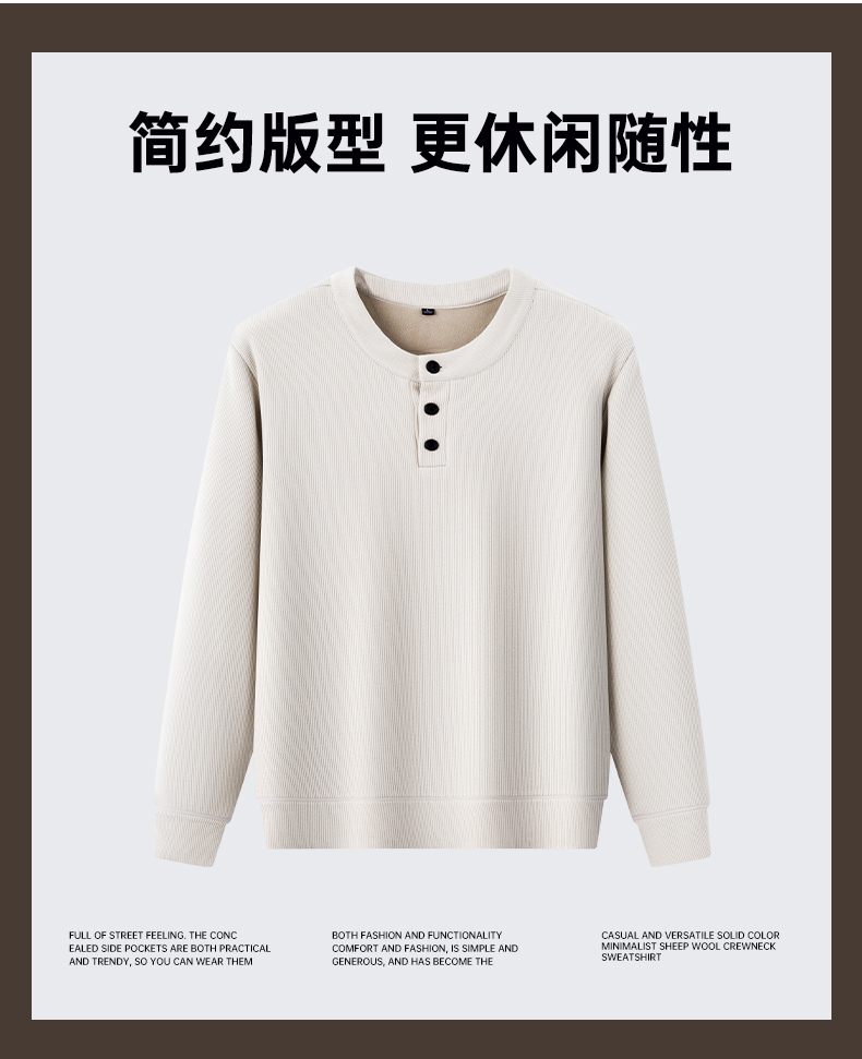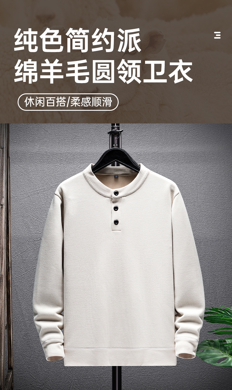 高端男士秋冬季加厚绵羊毛圆领卫衣简约宽松百搭纯色上衣
