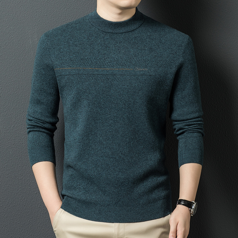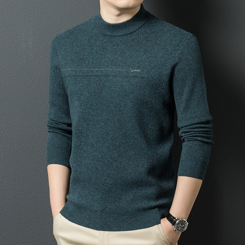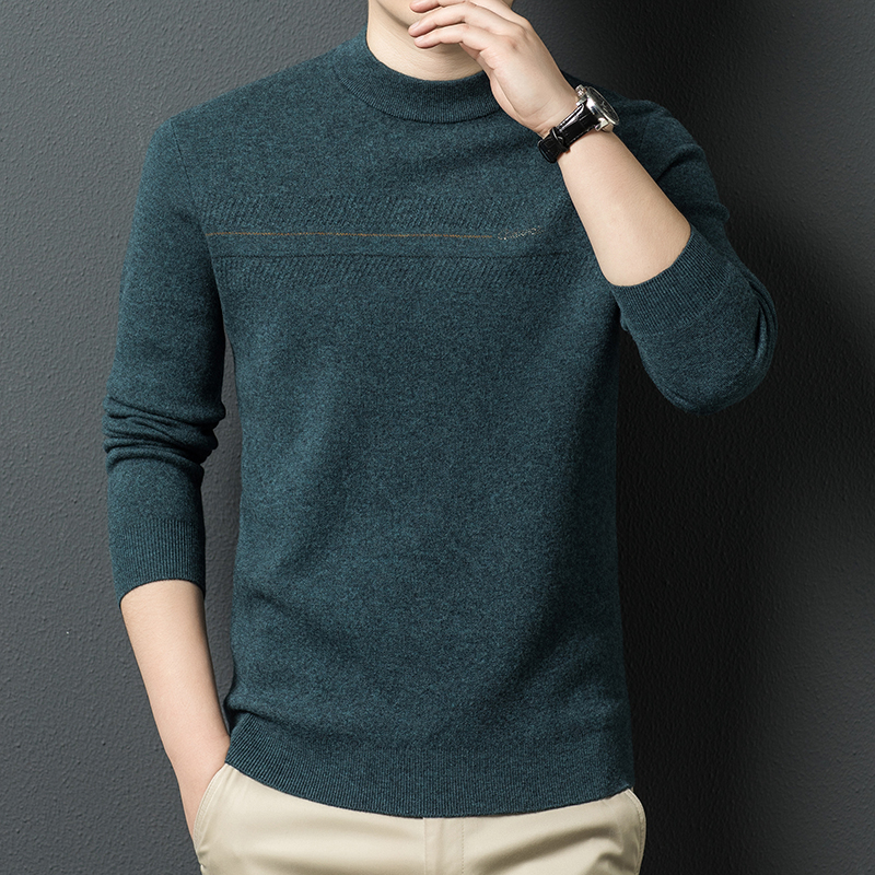 100%羊毛半高领男士简约线条中领保暖打底衫上衣