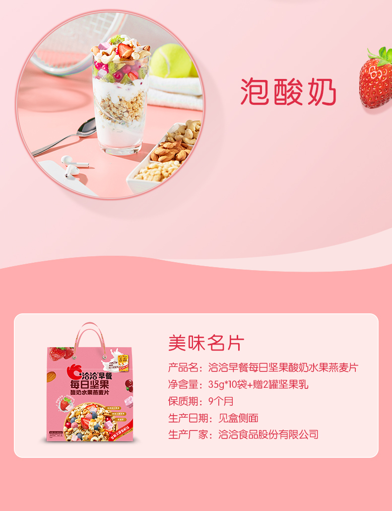 洽洽早餐酸奶水果燕麦片10日装350g+480mL礼盒装