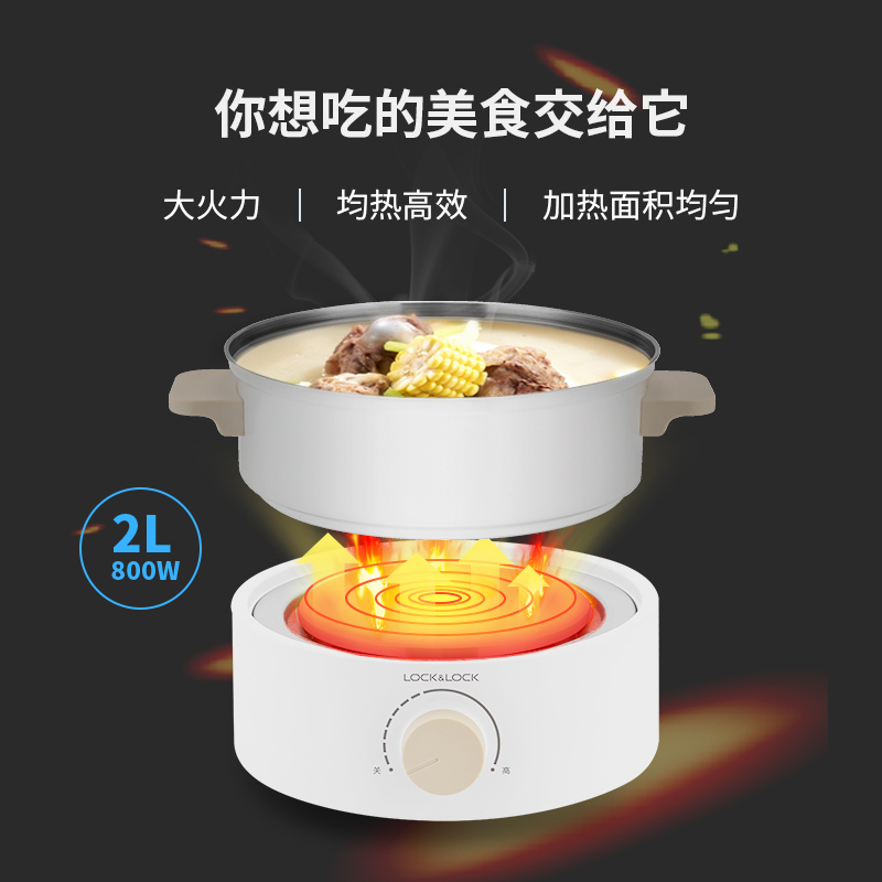 乐扣乐扣 多功能电火锅方锅2L EJP521WHT(单位:个) 白色