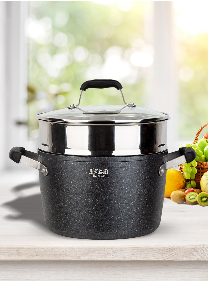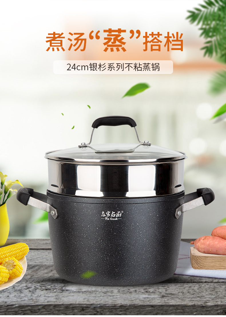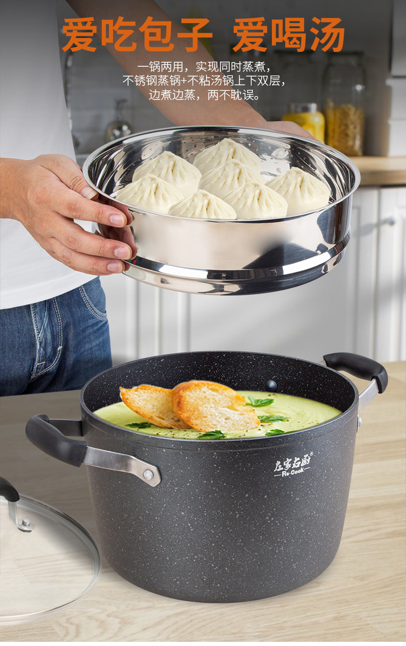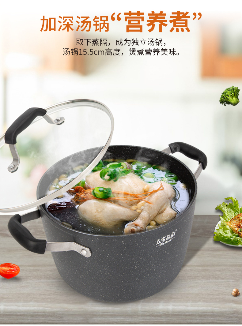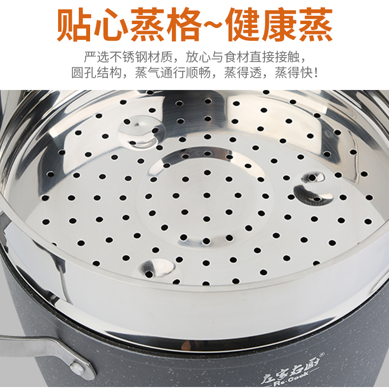 ●内美国华福麦饭石色不粘涂层,不粘性卓越,可降低食物对油脂的依赖,减少用油量,健康有保障。 ●锅身采