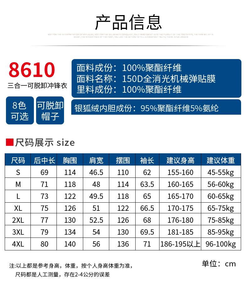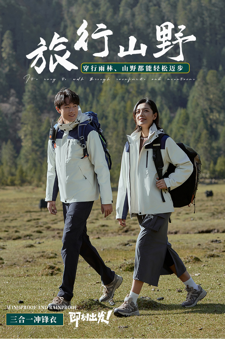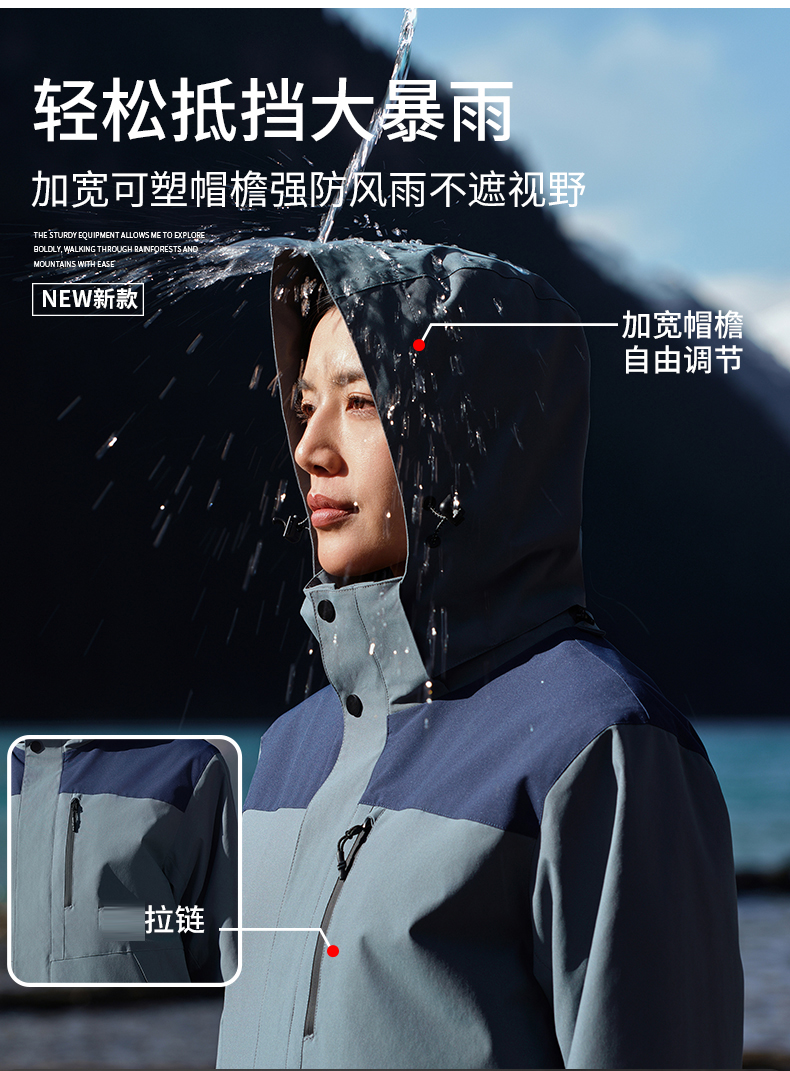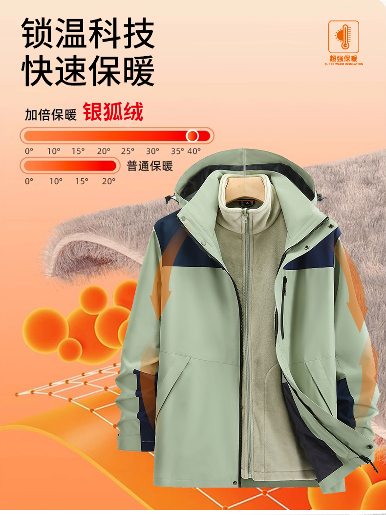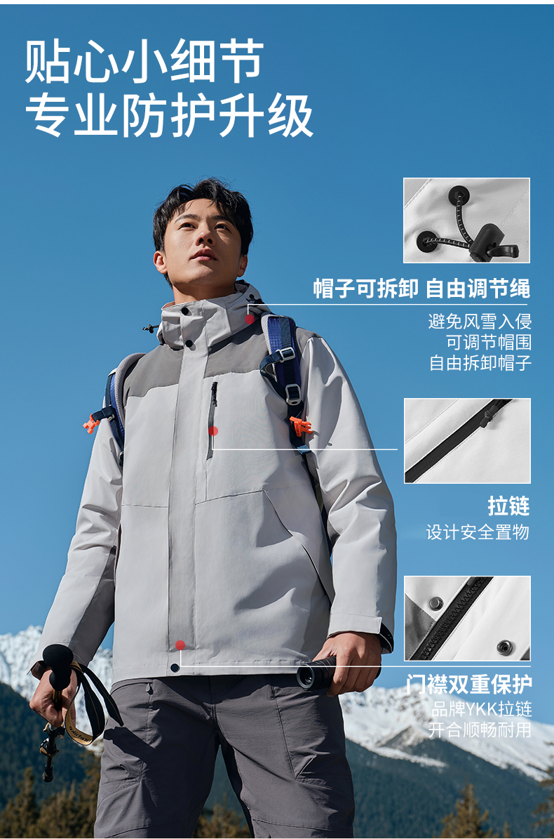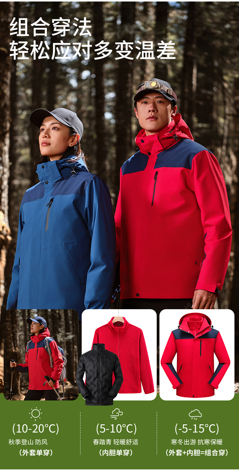 可拆卸三合一冲锋衣