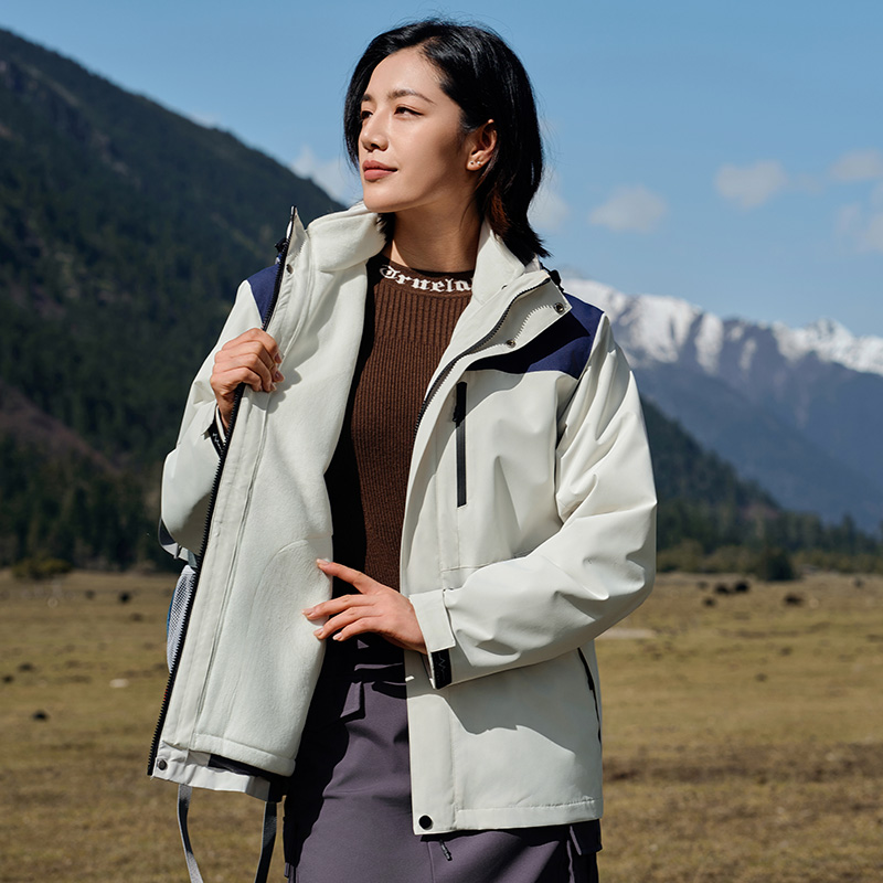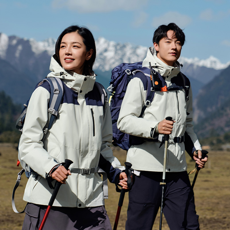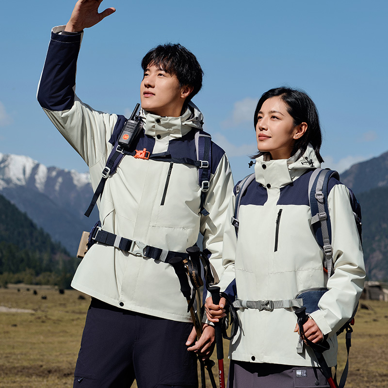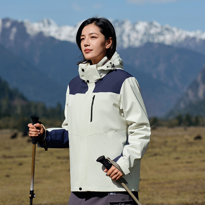丰讯冲锋衣男女户外登山服防风两件套可拆卸三合一冲锋衣外套FXXY8610(单位:件) 米白配藏青 S